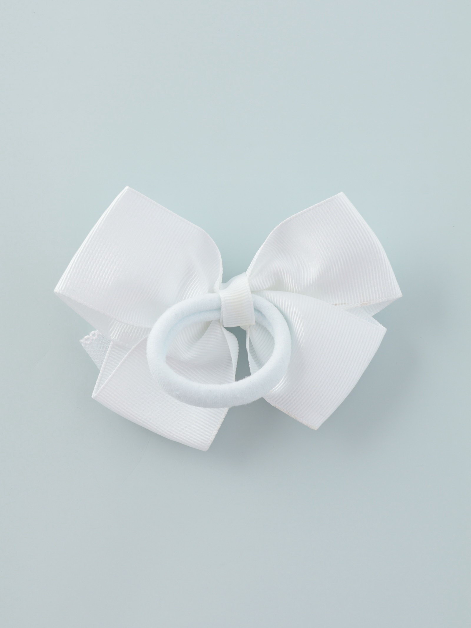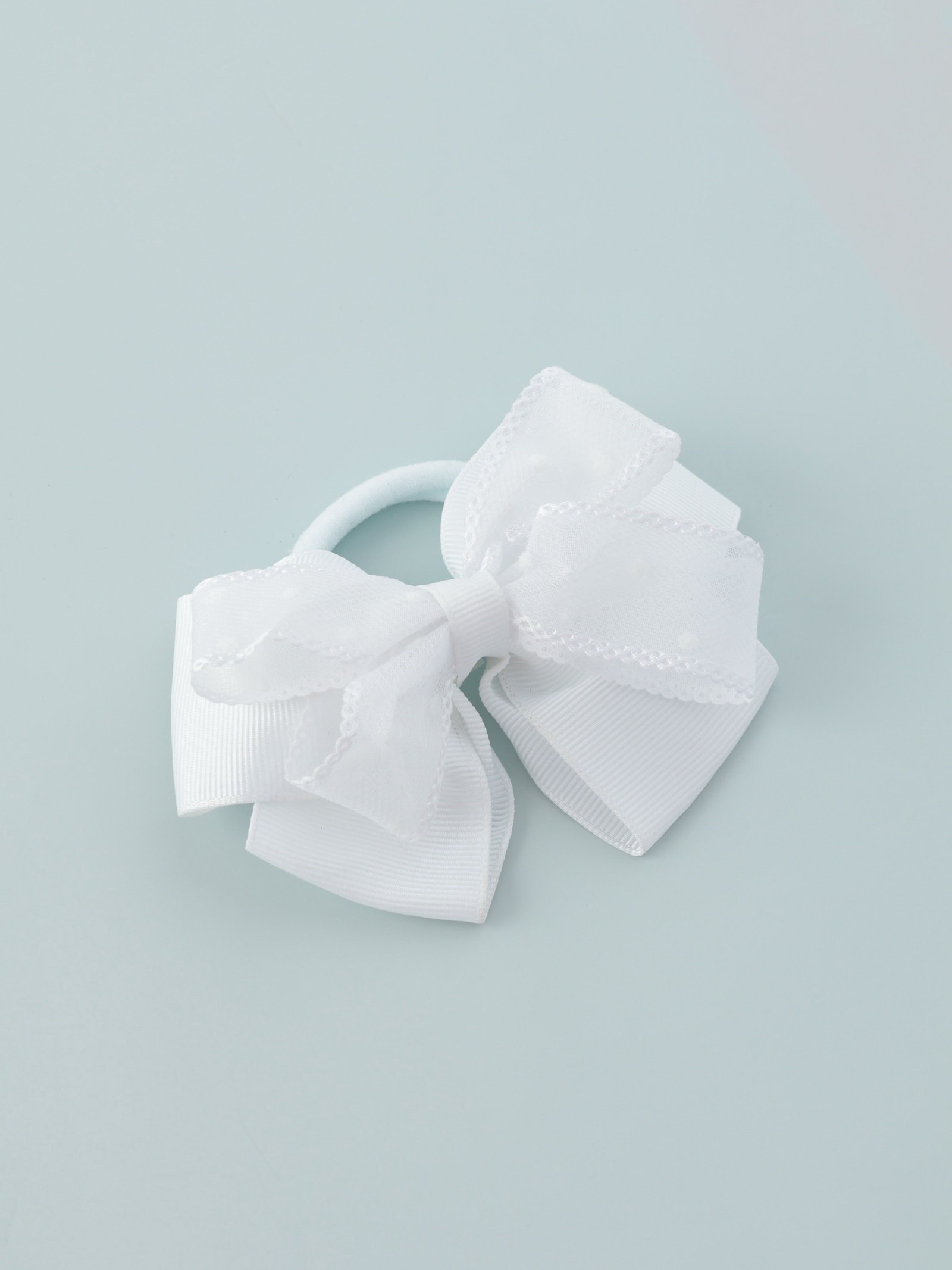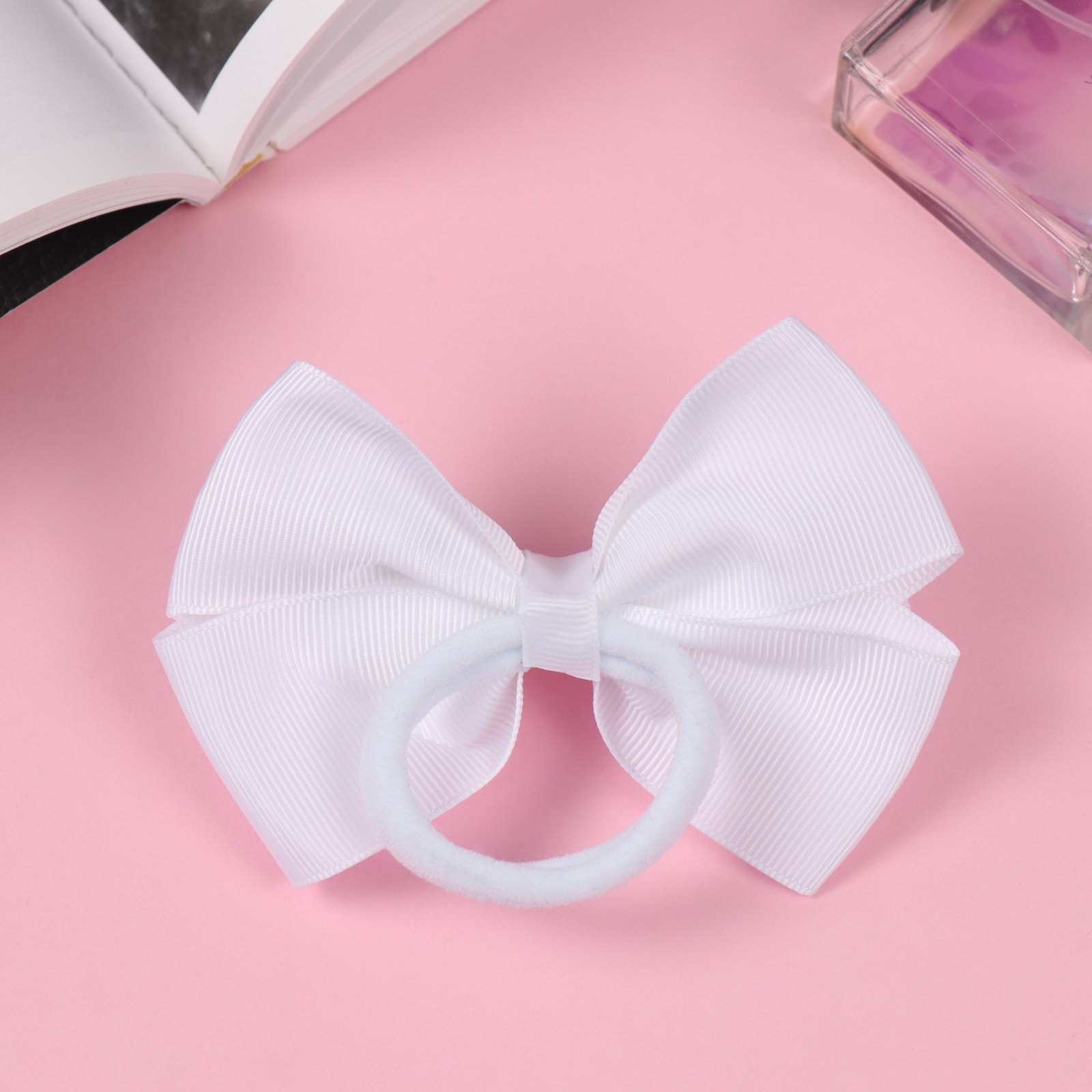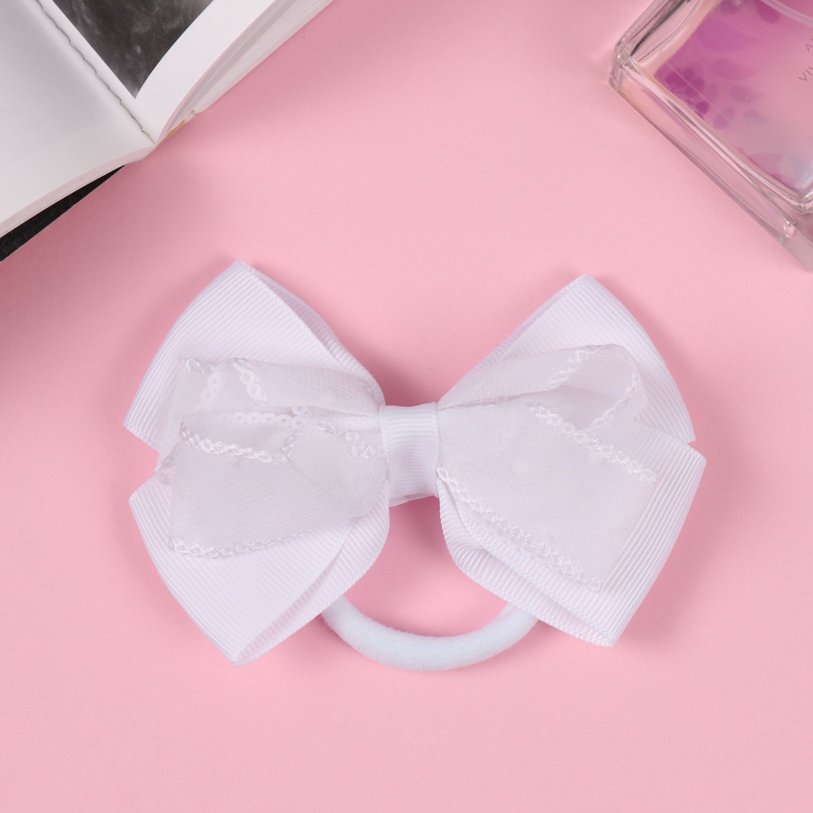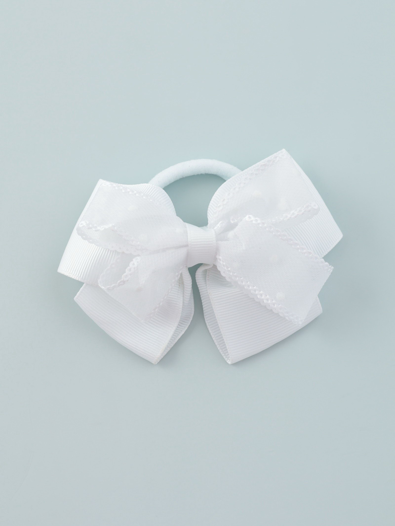 Бант для волос на резинке "Школьница", горох, 9 см, белый, 5 см., Китай