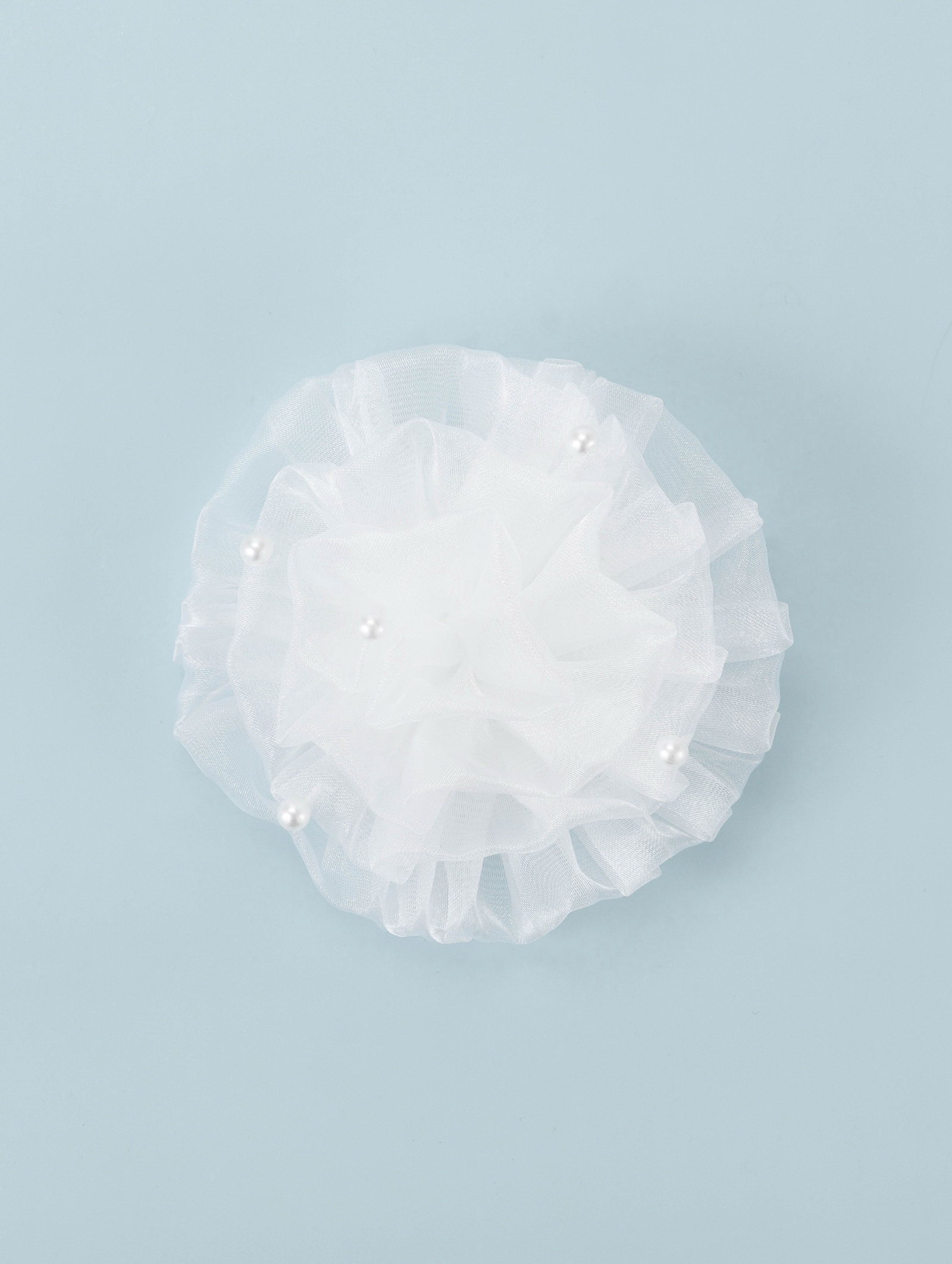 Резинка для волос бант "Школьница", волна жемчуг, d=9 см, белая, 9 см., Китай
