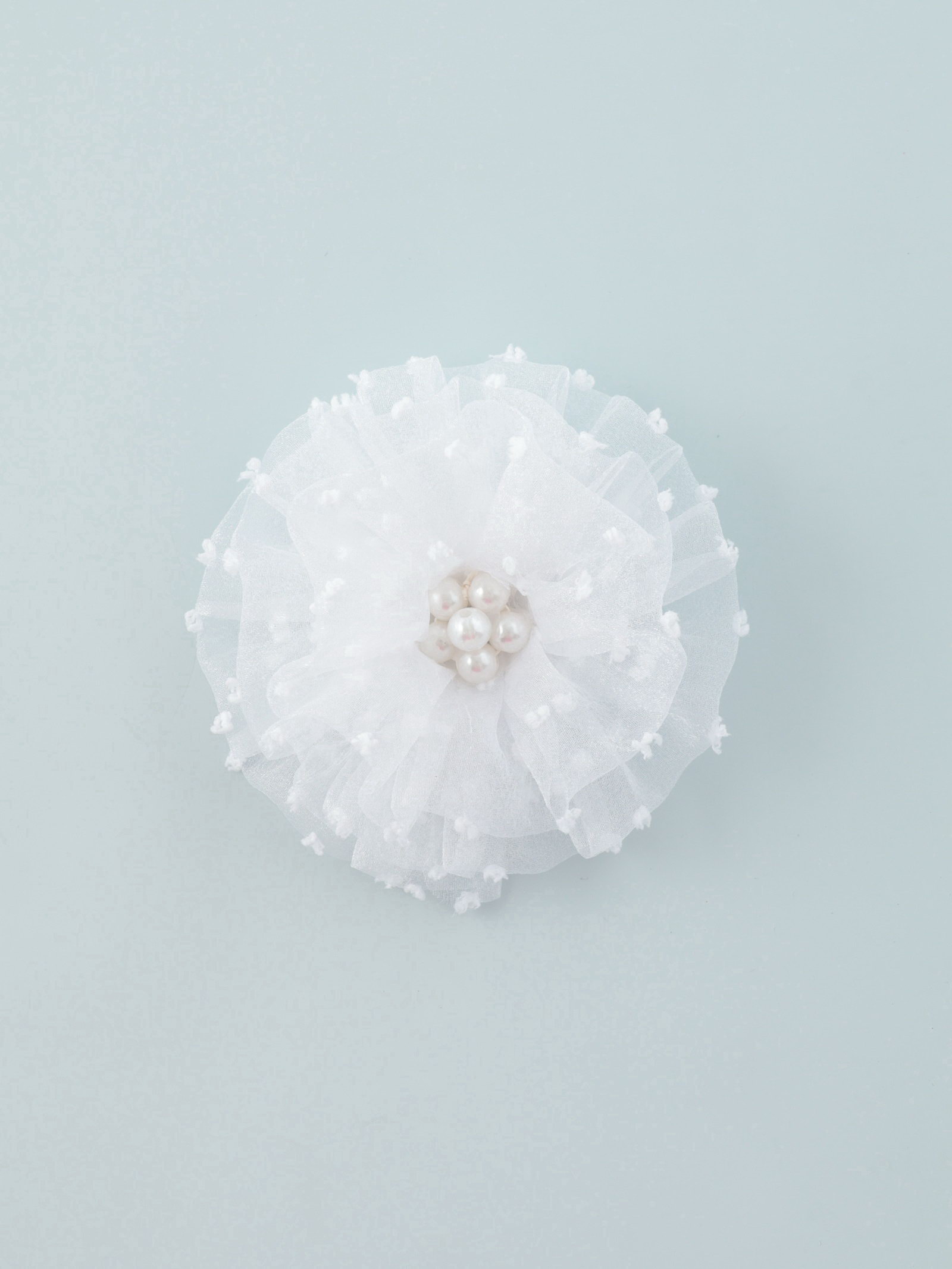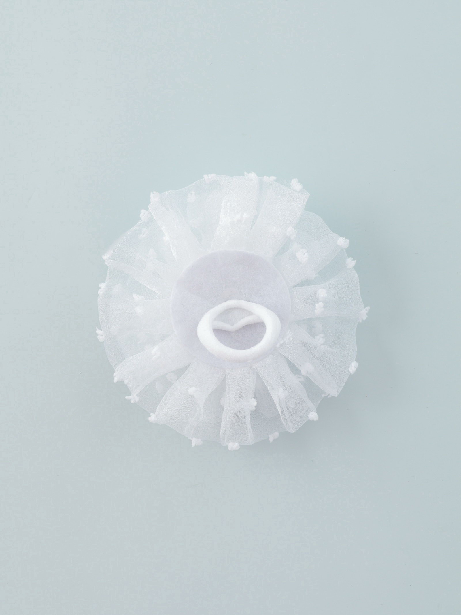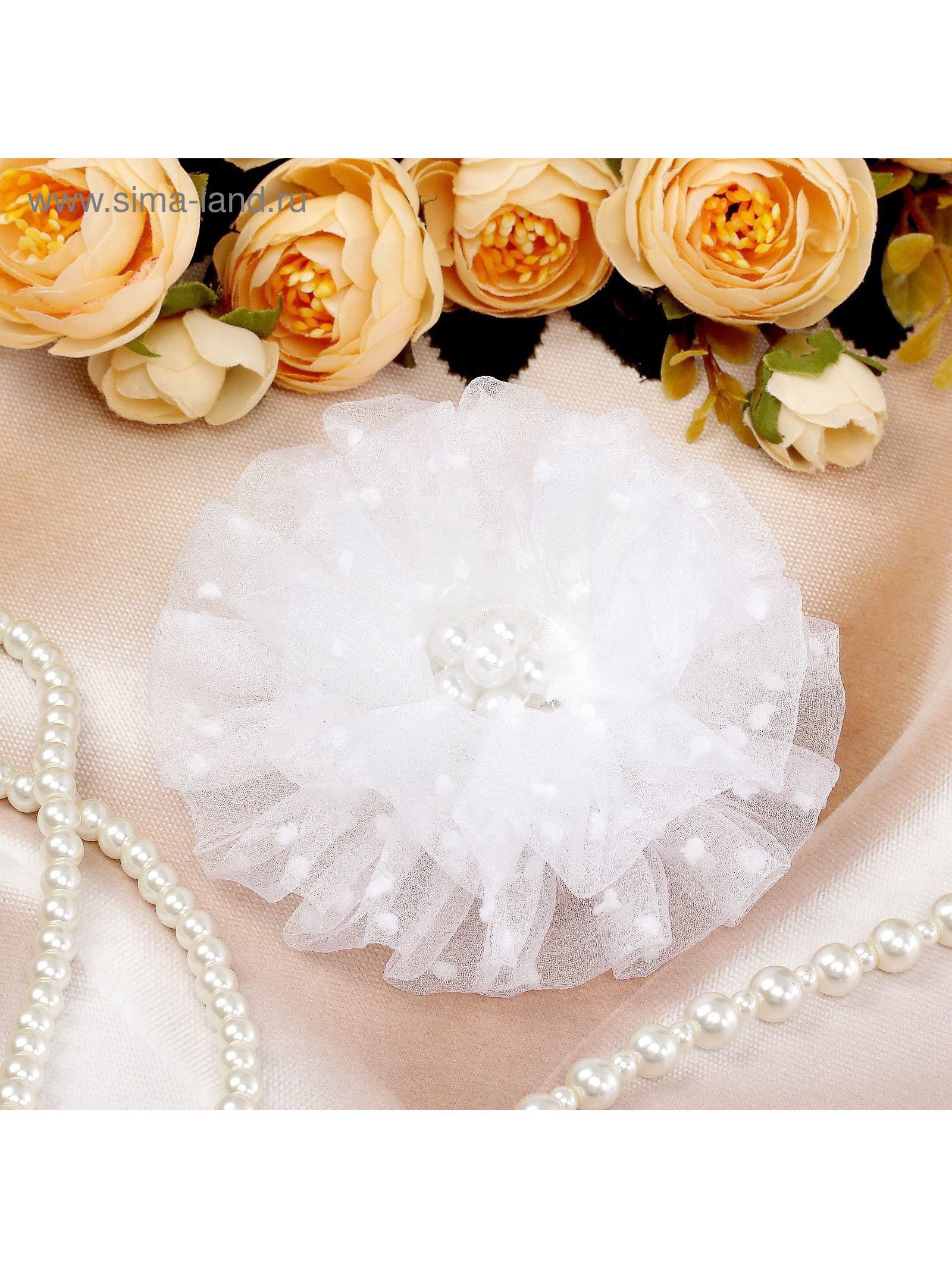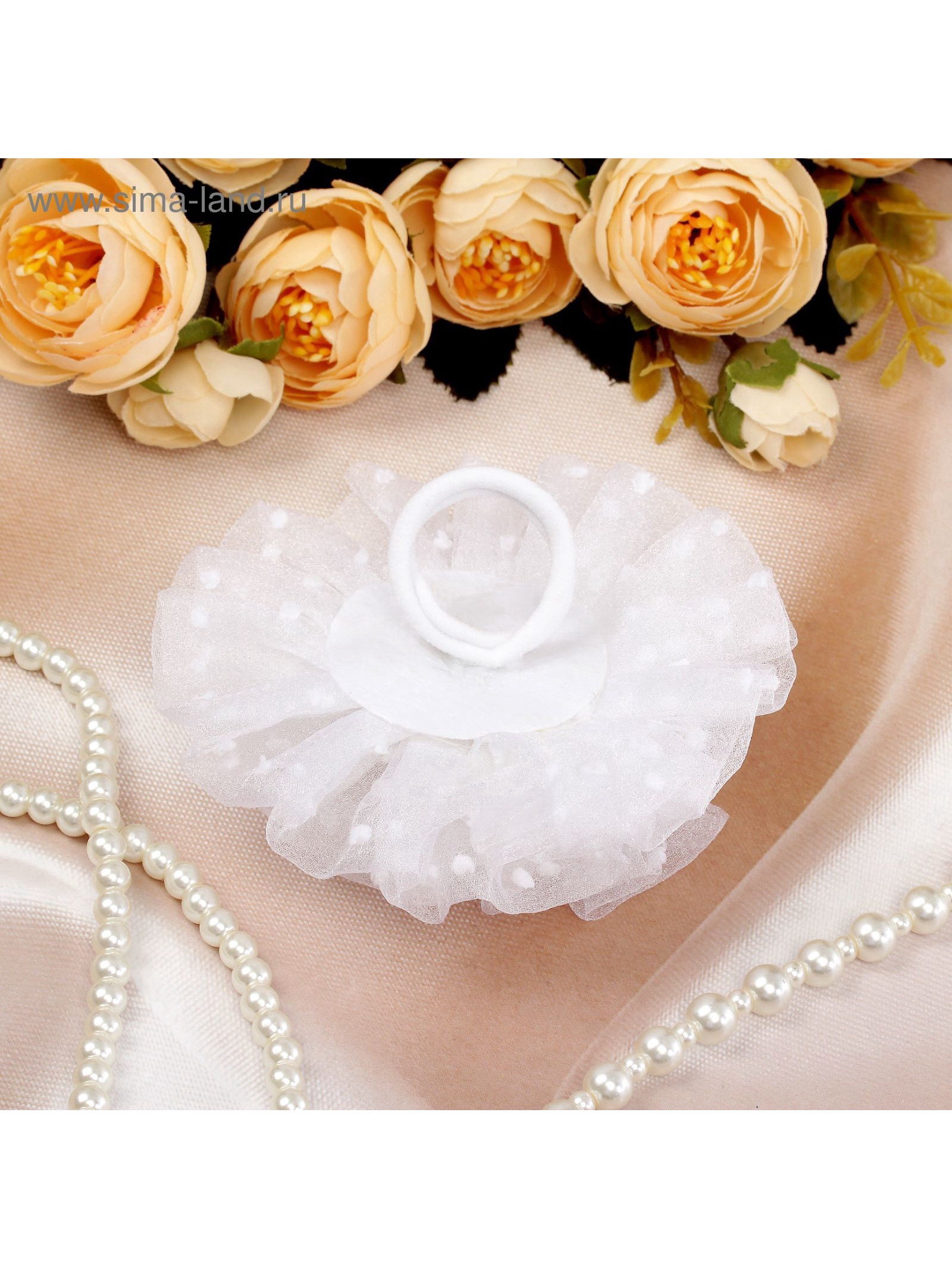 Бант для волос на резинке "Школьница", горох, d=9 см, белый, 9 см., Китай