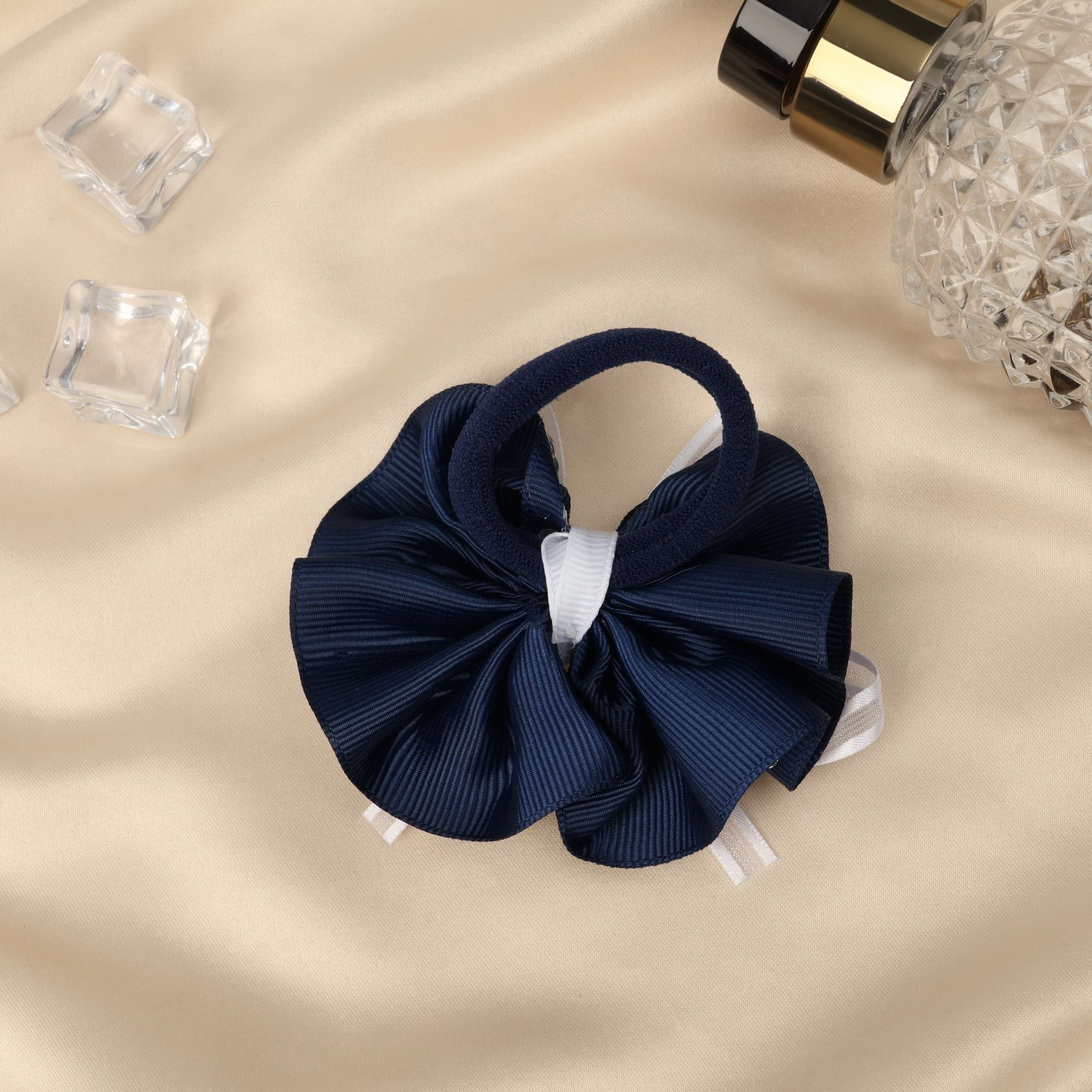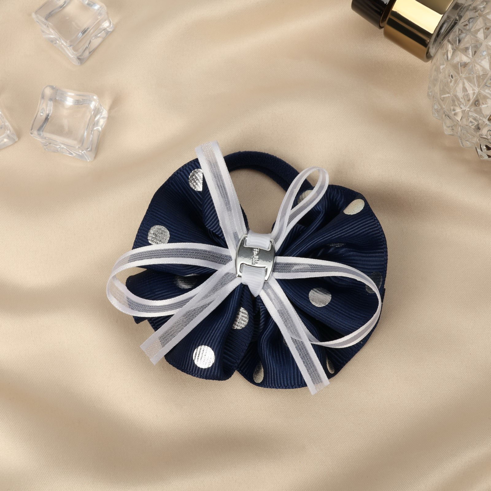 Бант для волос на резинке "Школьница", горошек и прозрачная лента, d=7 см, бело-синий, 7 см., Китай