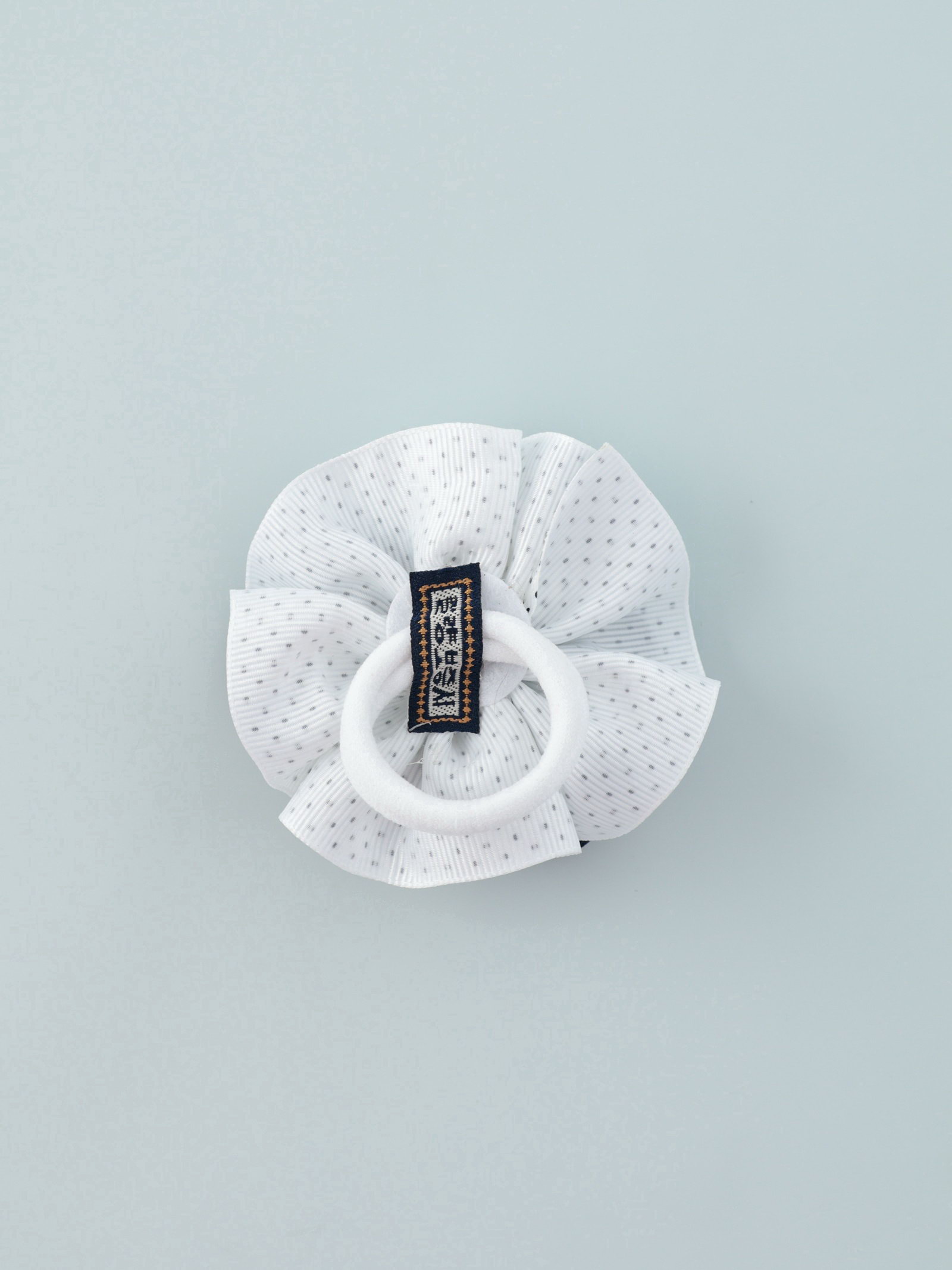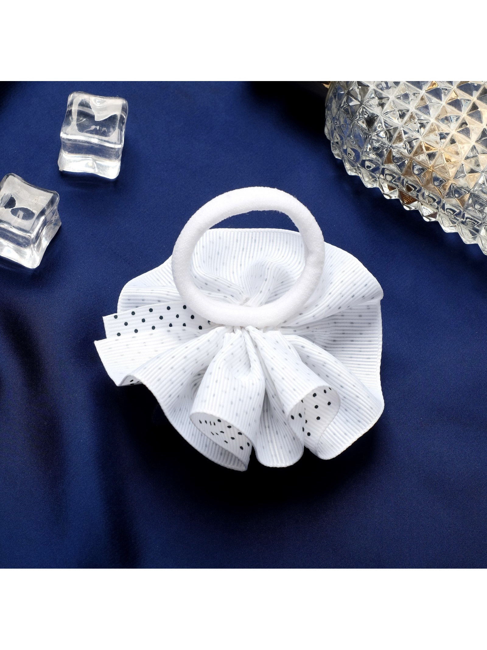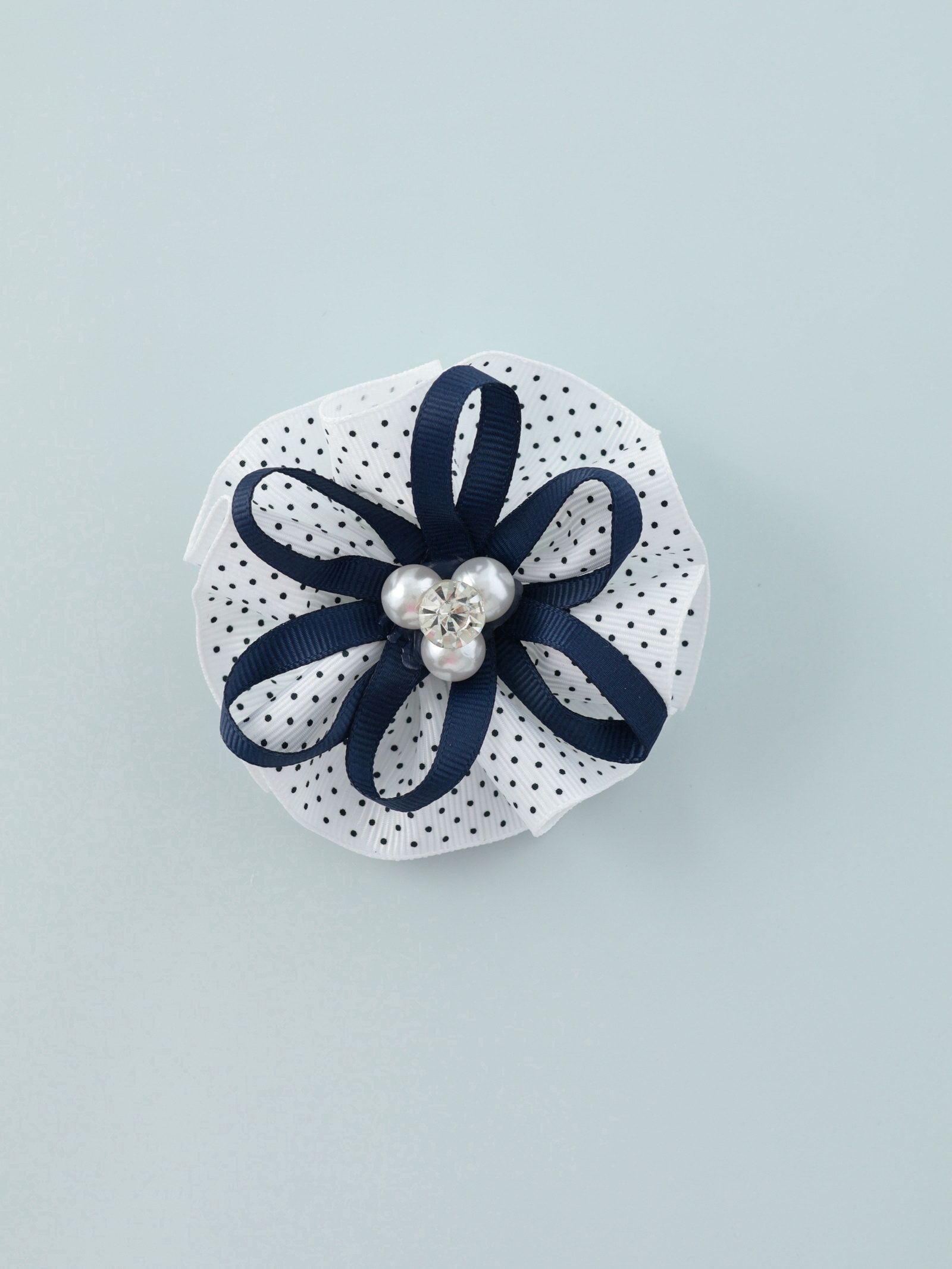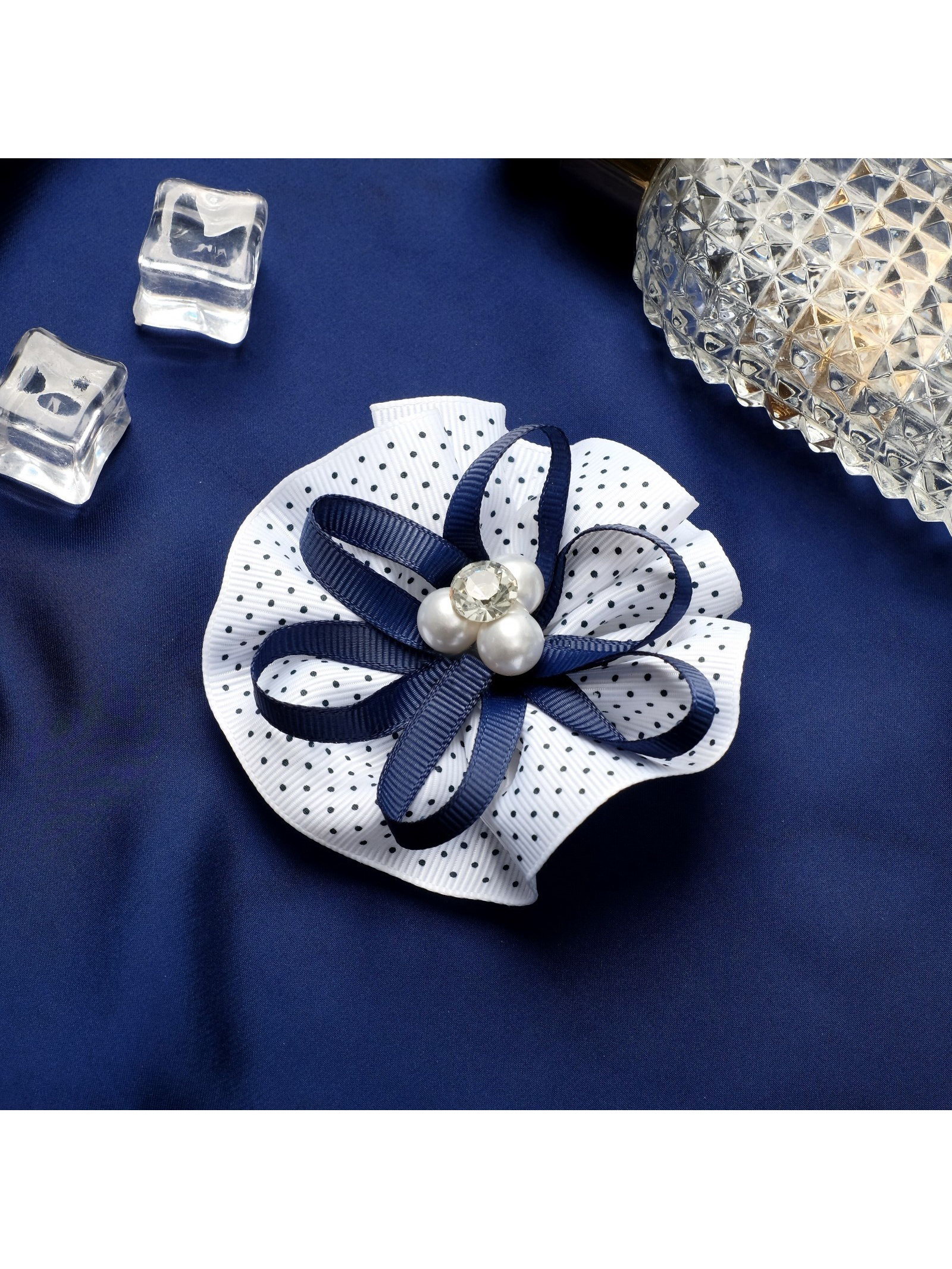 Бант для волос на резинке "Школьница", мелкий горошек и бусинки, d=7.5 см, бело-синий, 7.5 см., Китай