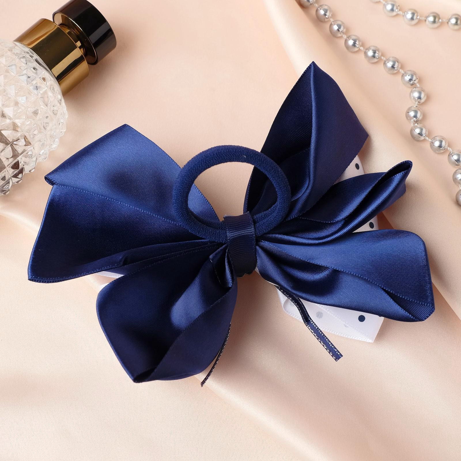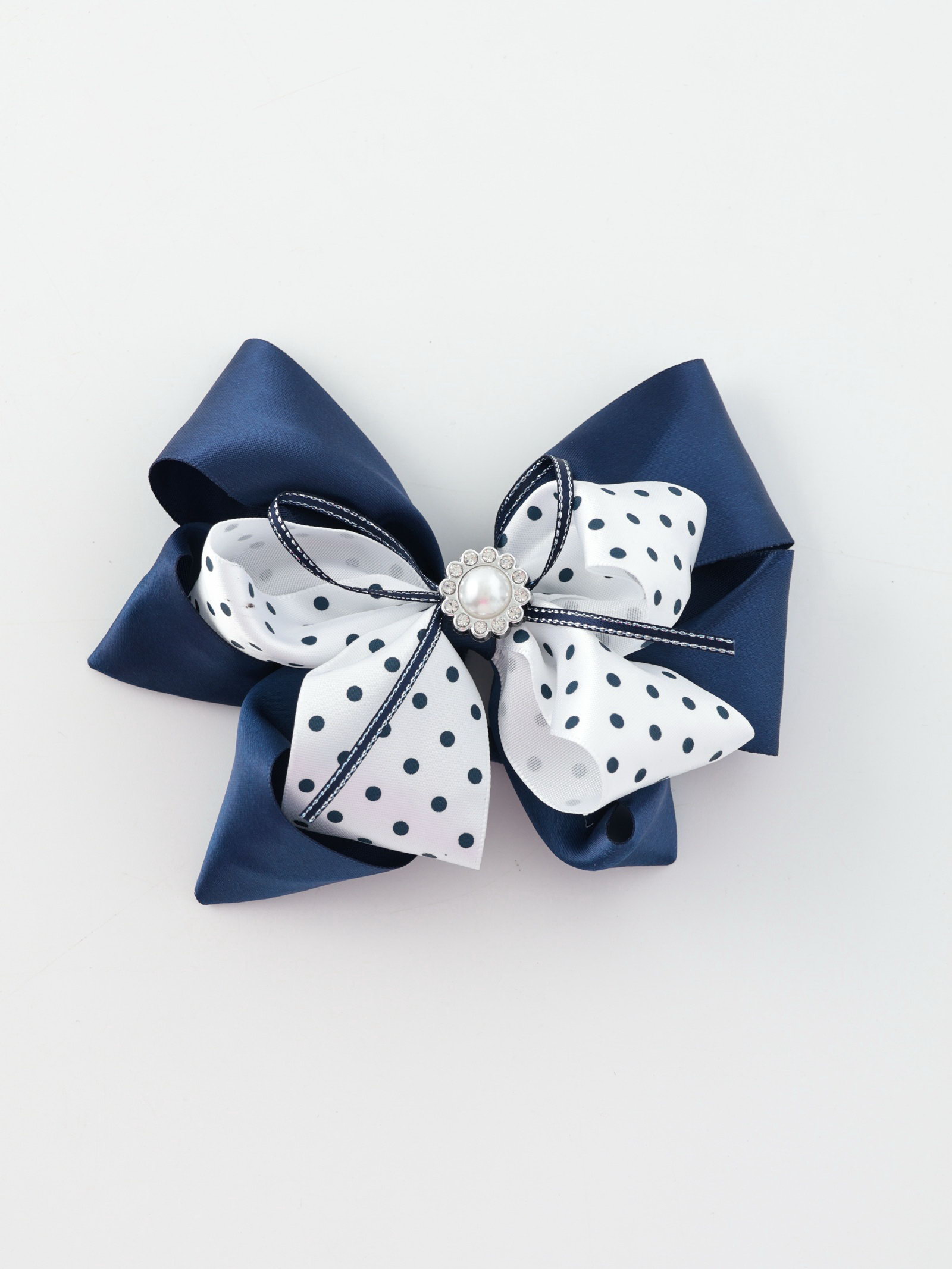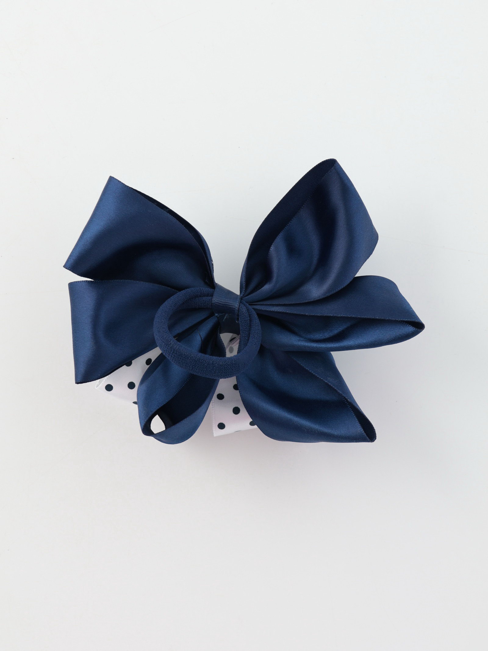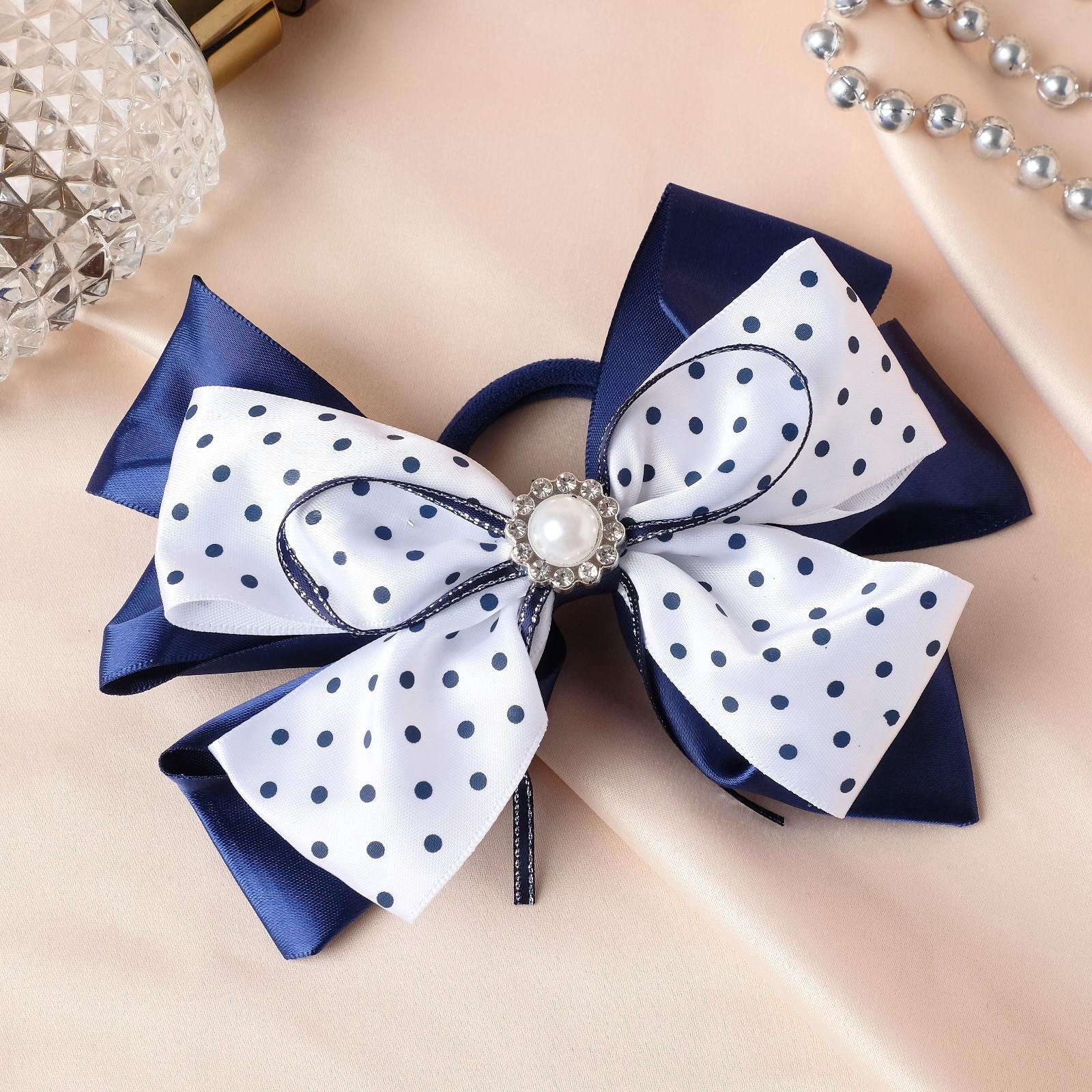 Бант для волос на резинке "Школьница", цветок и горошек, 13 см, сине-белый, 5 см., Китай