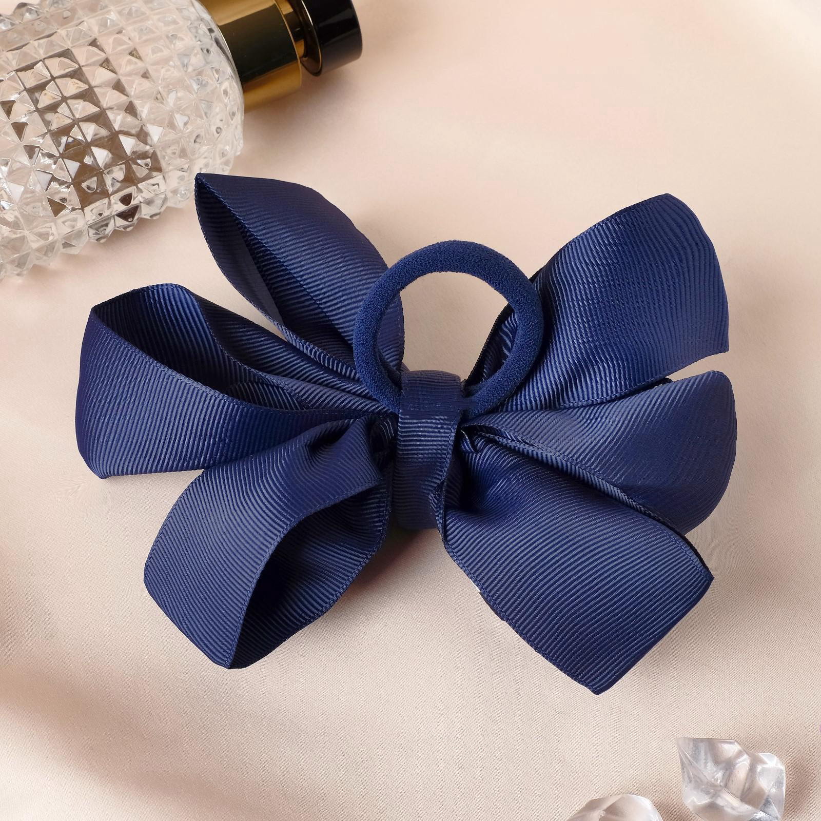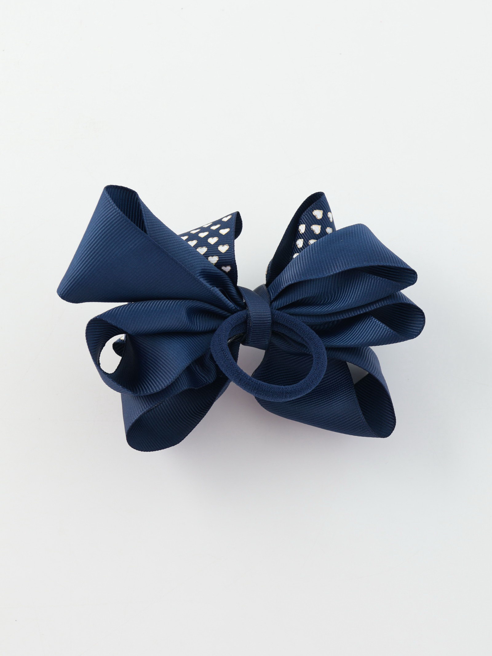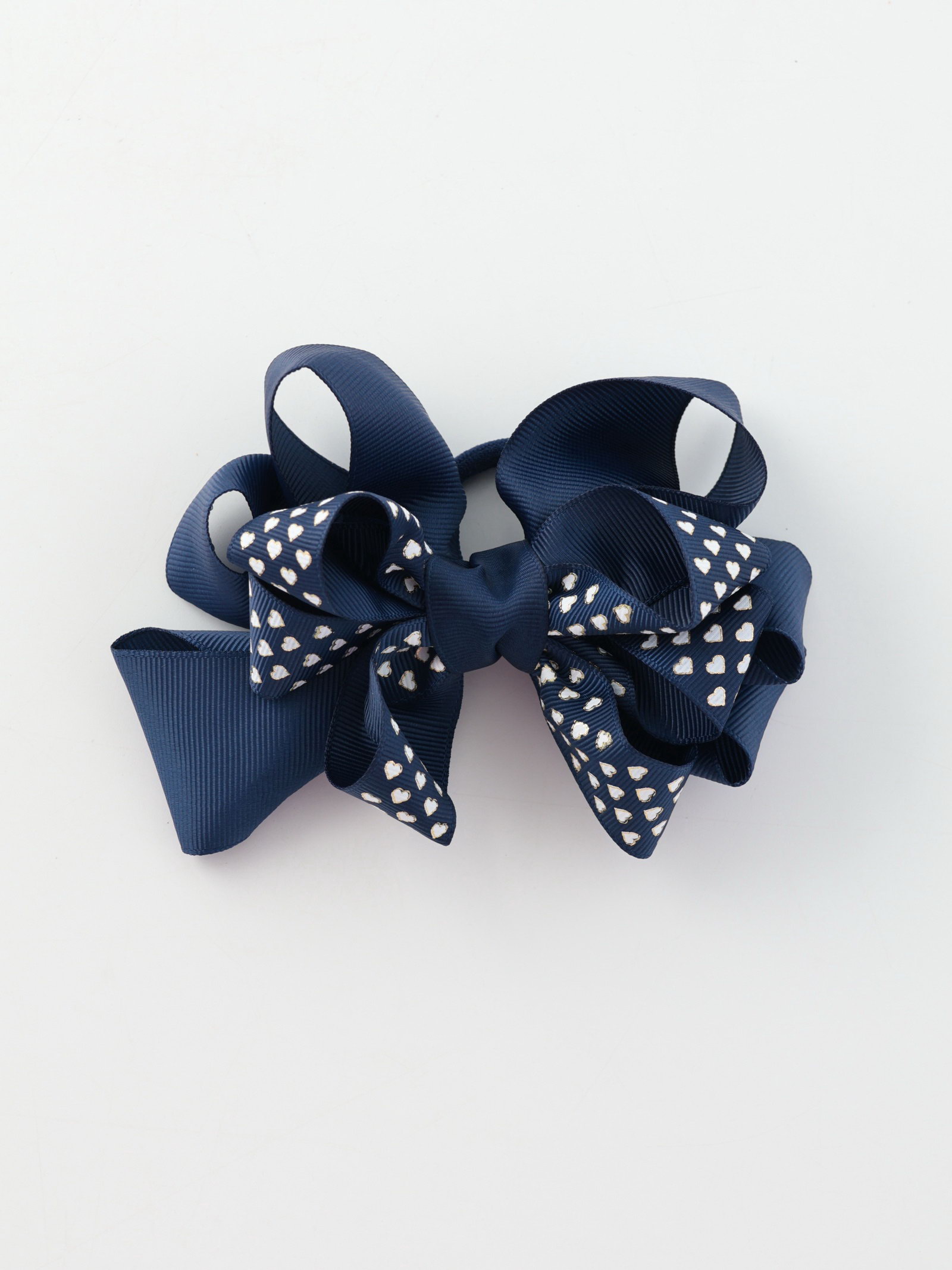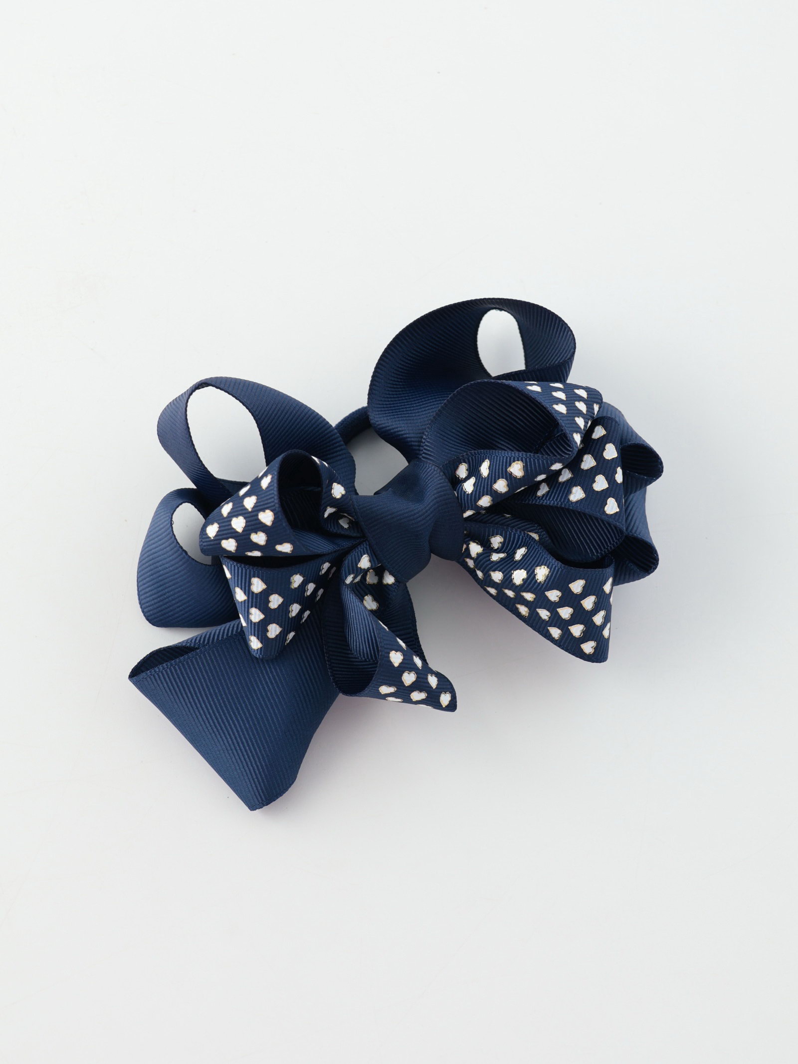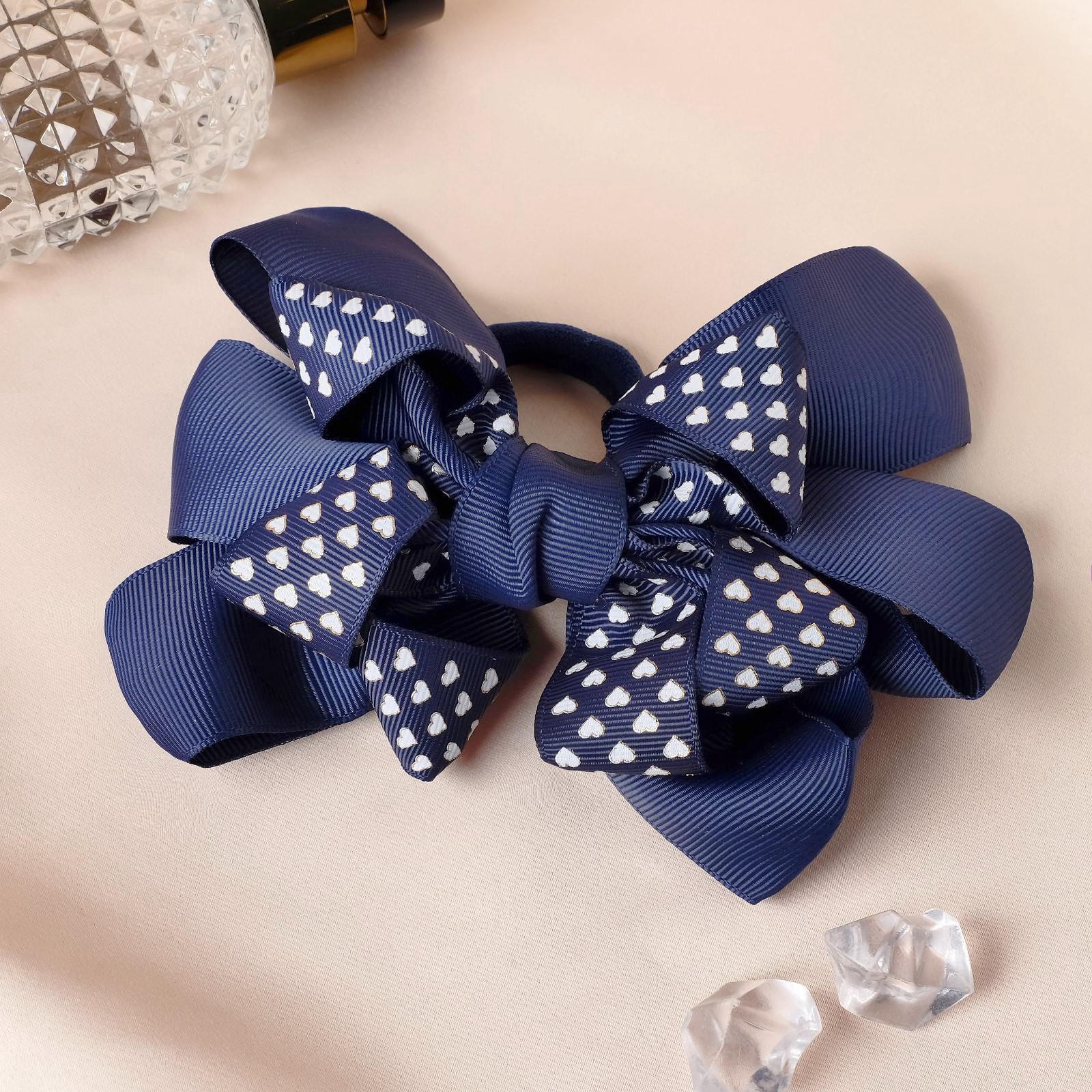 Бант для волос на резинке "Школьница", сердечки, 12 см, синий, 5 см., Китай