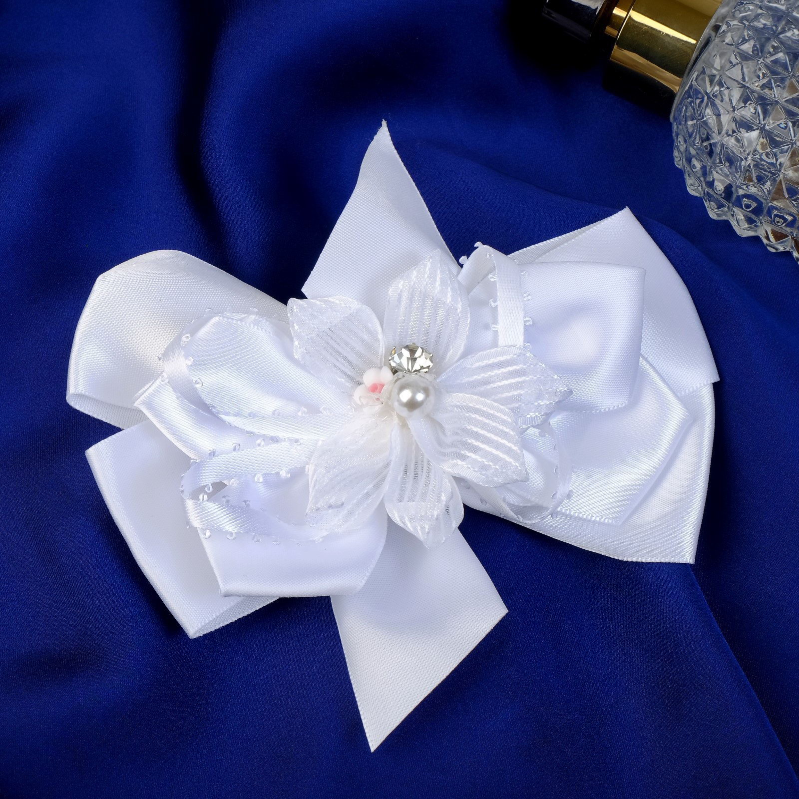 Бант для волос на резинке "Школьница", цветок бусина полосы, 12x8 см, белый, 12x8 см., Китай