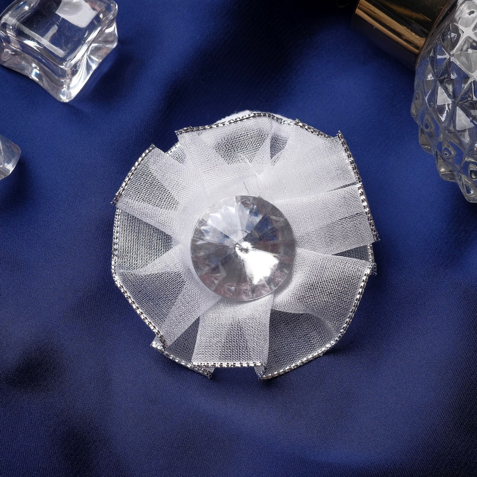 Бант для волос на резинке "Школьница", серединка блеск, d=6 см, белый, 6 см., Китай