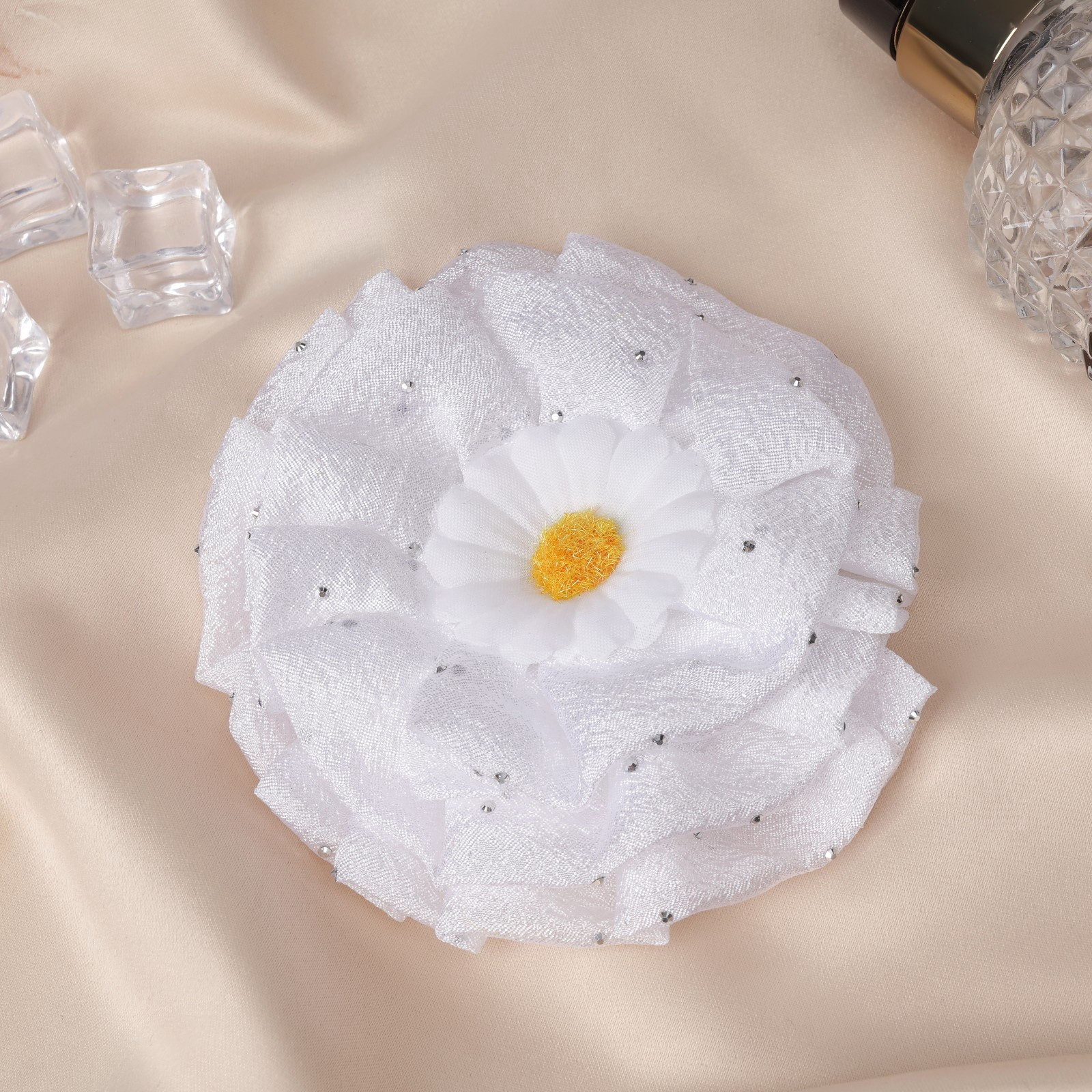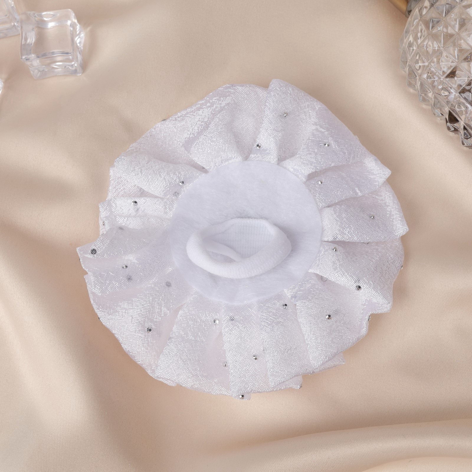 Бант для волос на резинке "Школьница", ромашка капельки, d=11 см, белый, 11 см., Китай