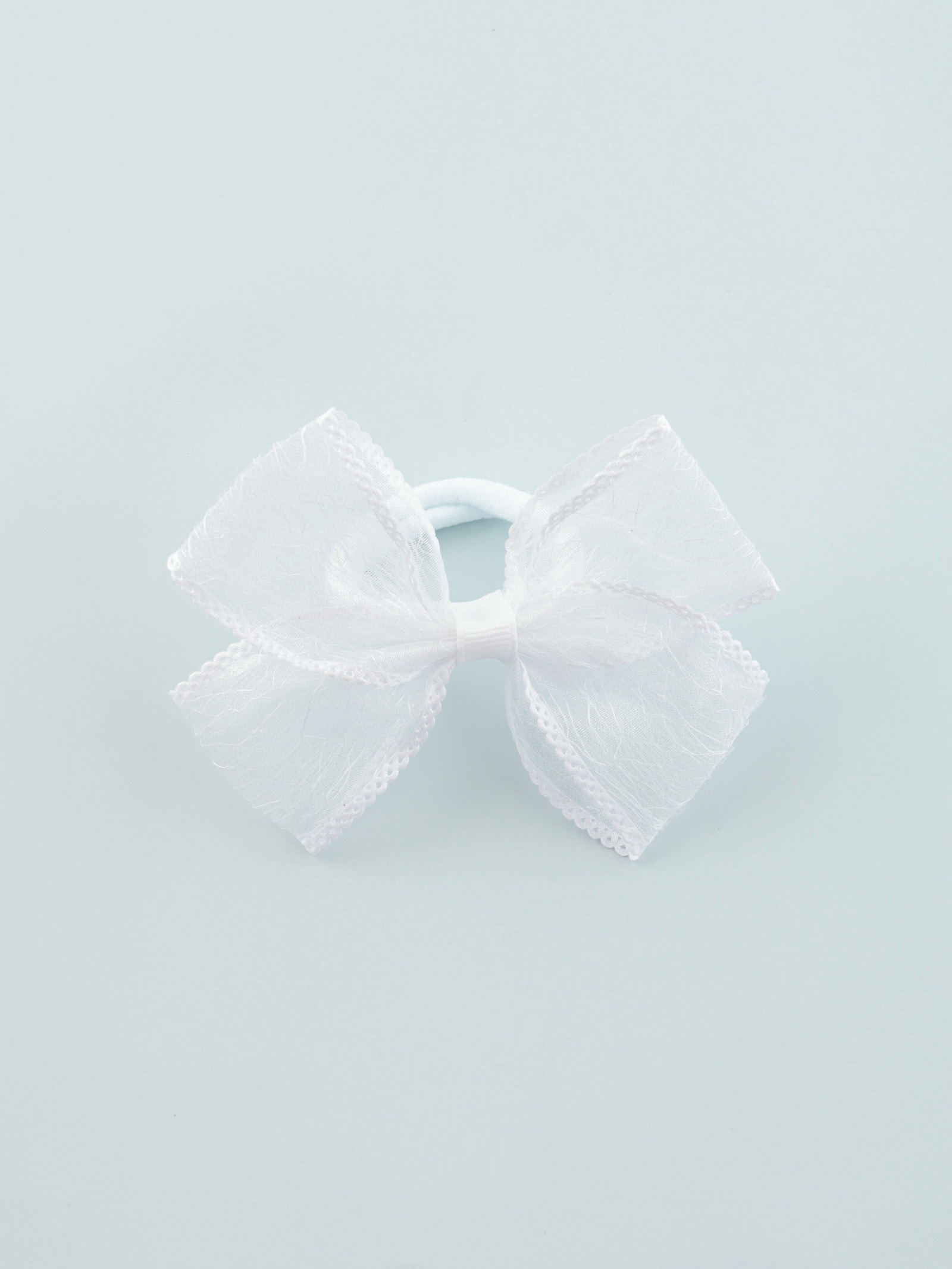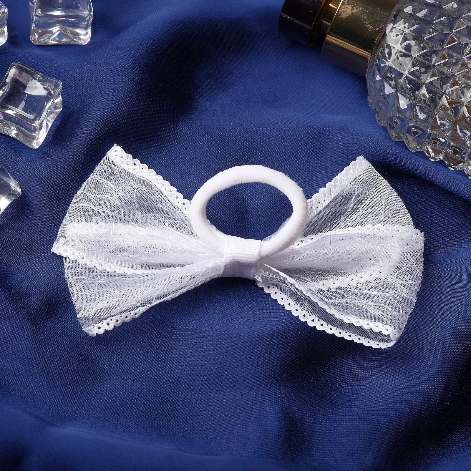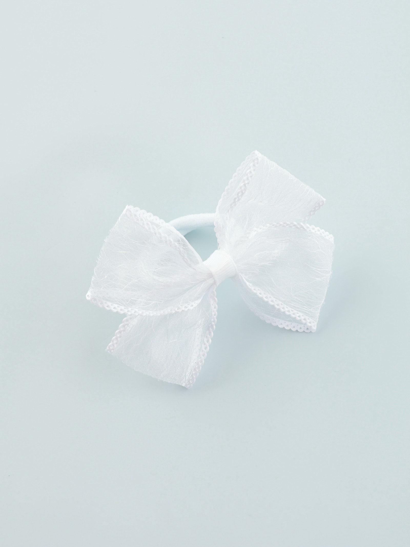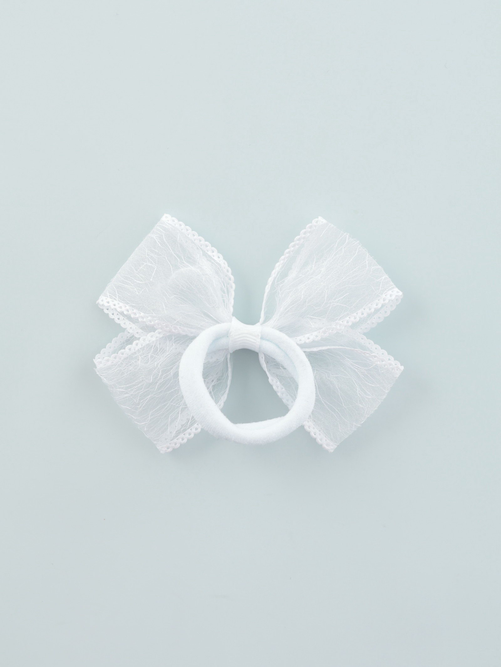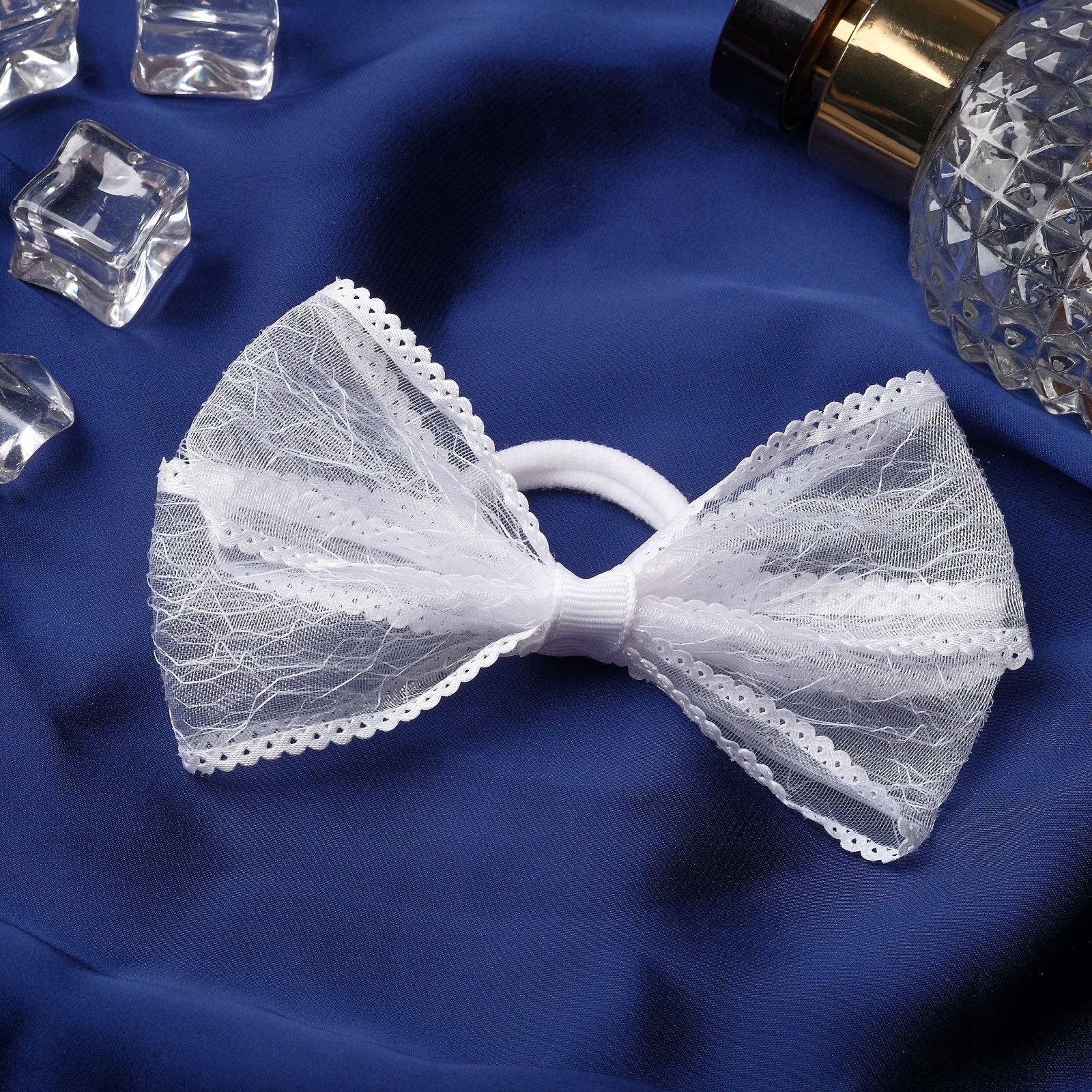 Бант для волос на резинке "Бантик", кружевной край полоски, 9 см, белый, 5 см., Китай