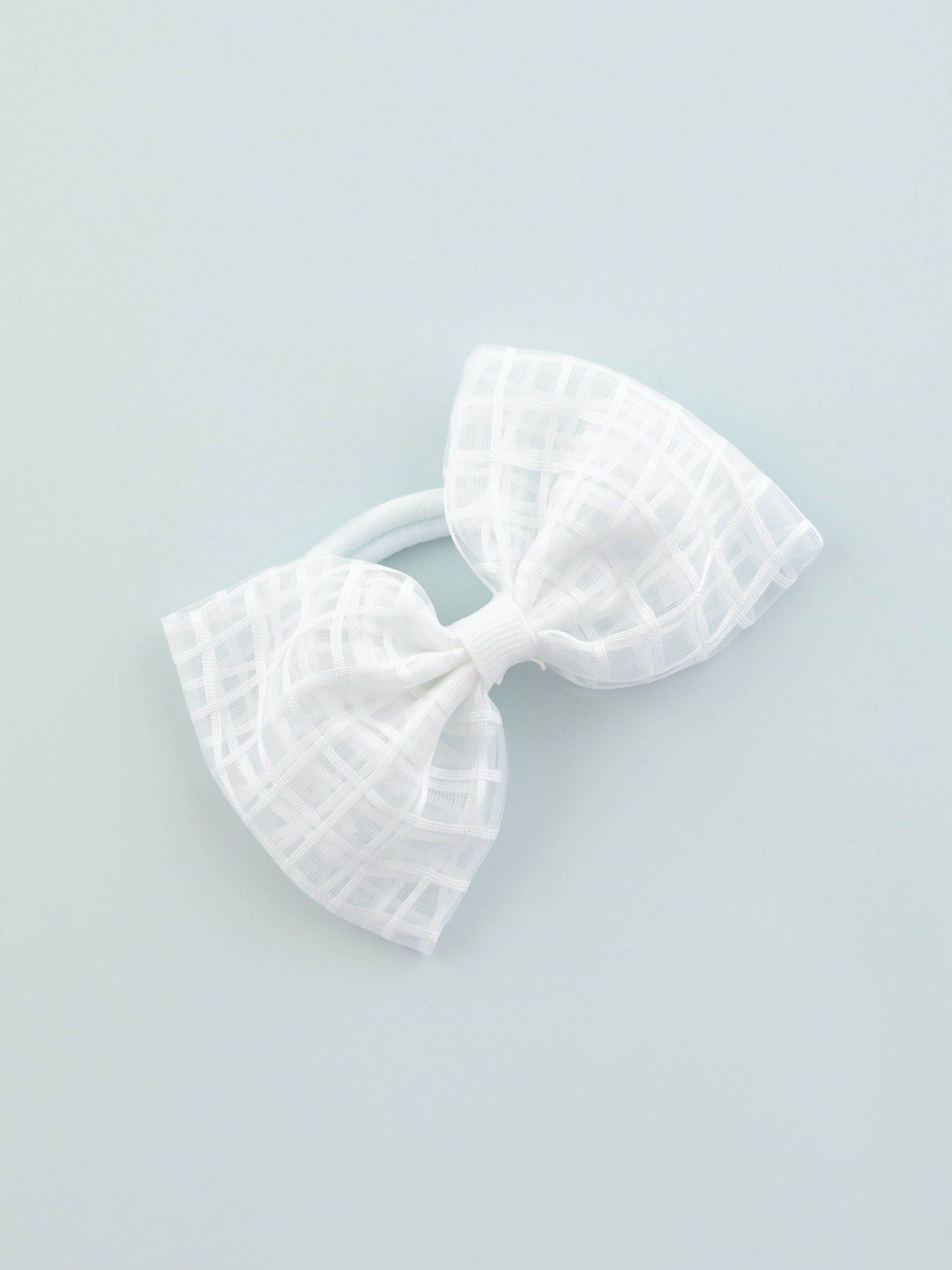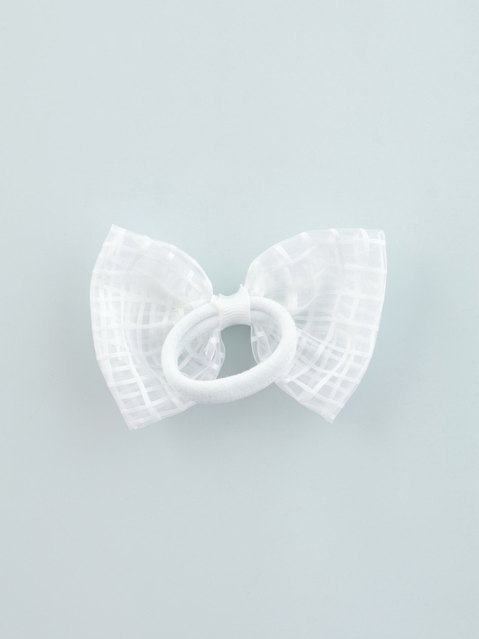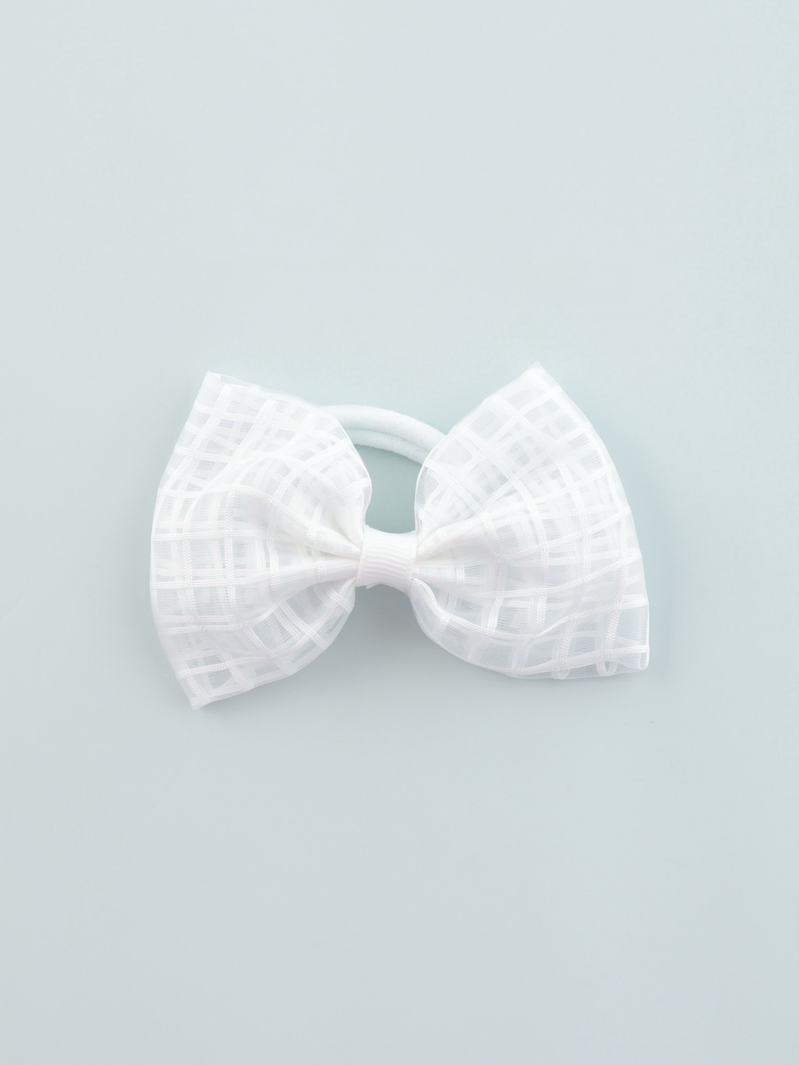 Бант для волос на резинке "Бантик", хрусталь клетка, 9 см, белый, 5 см., Китай