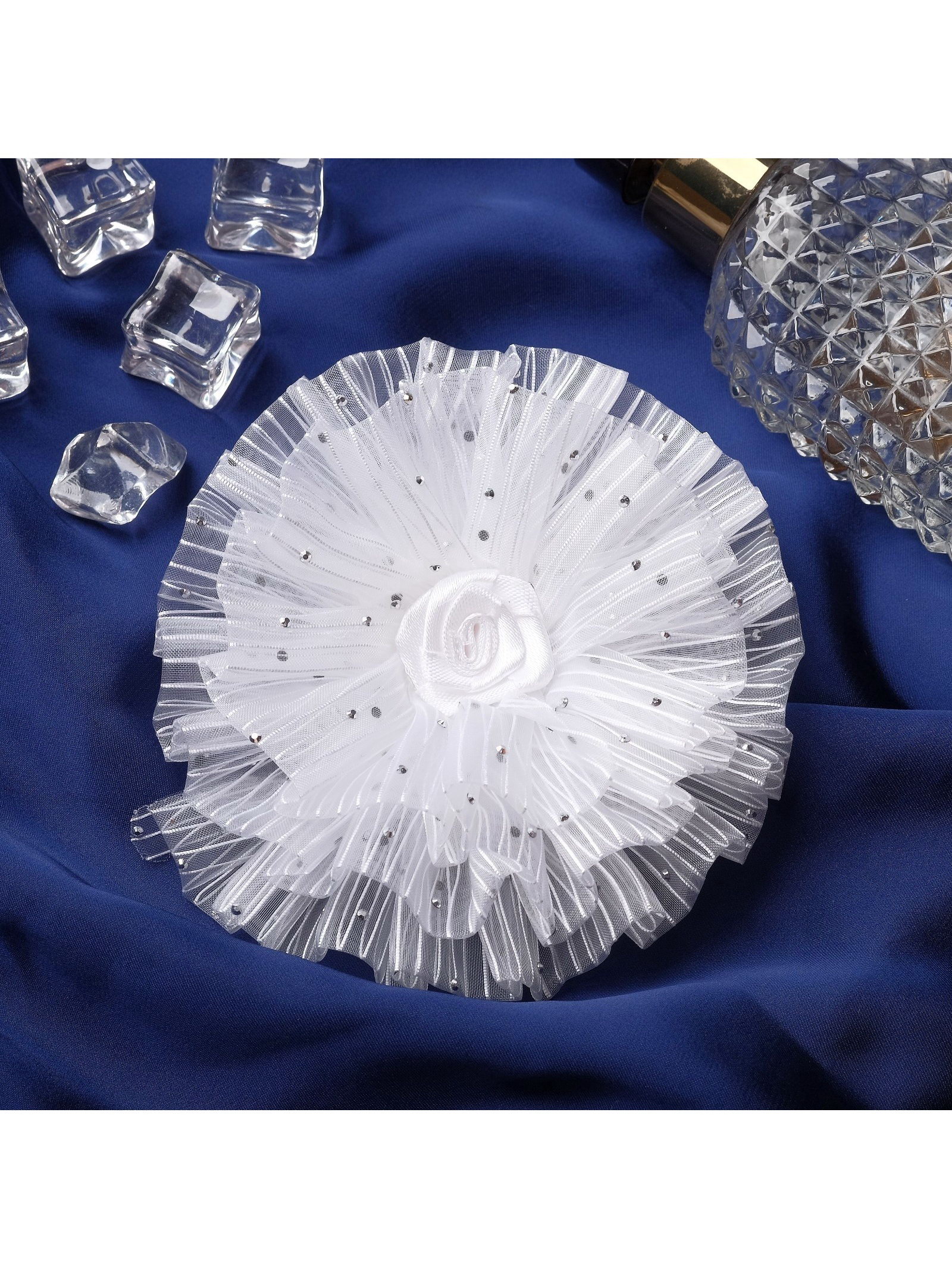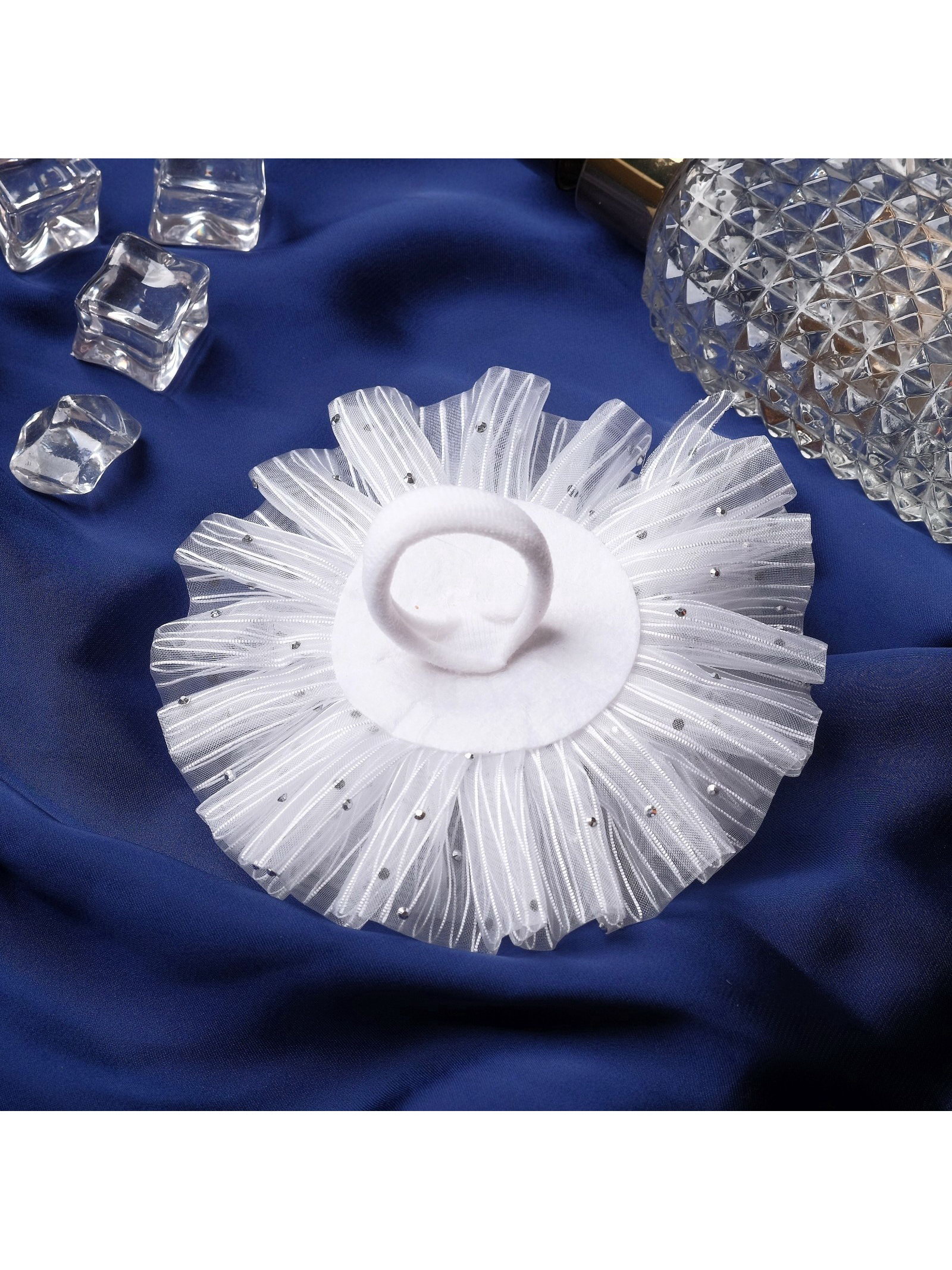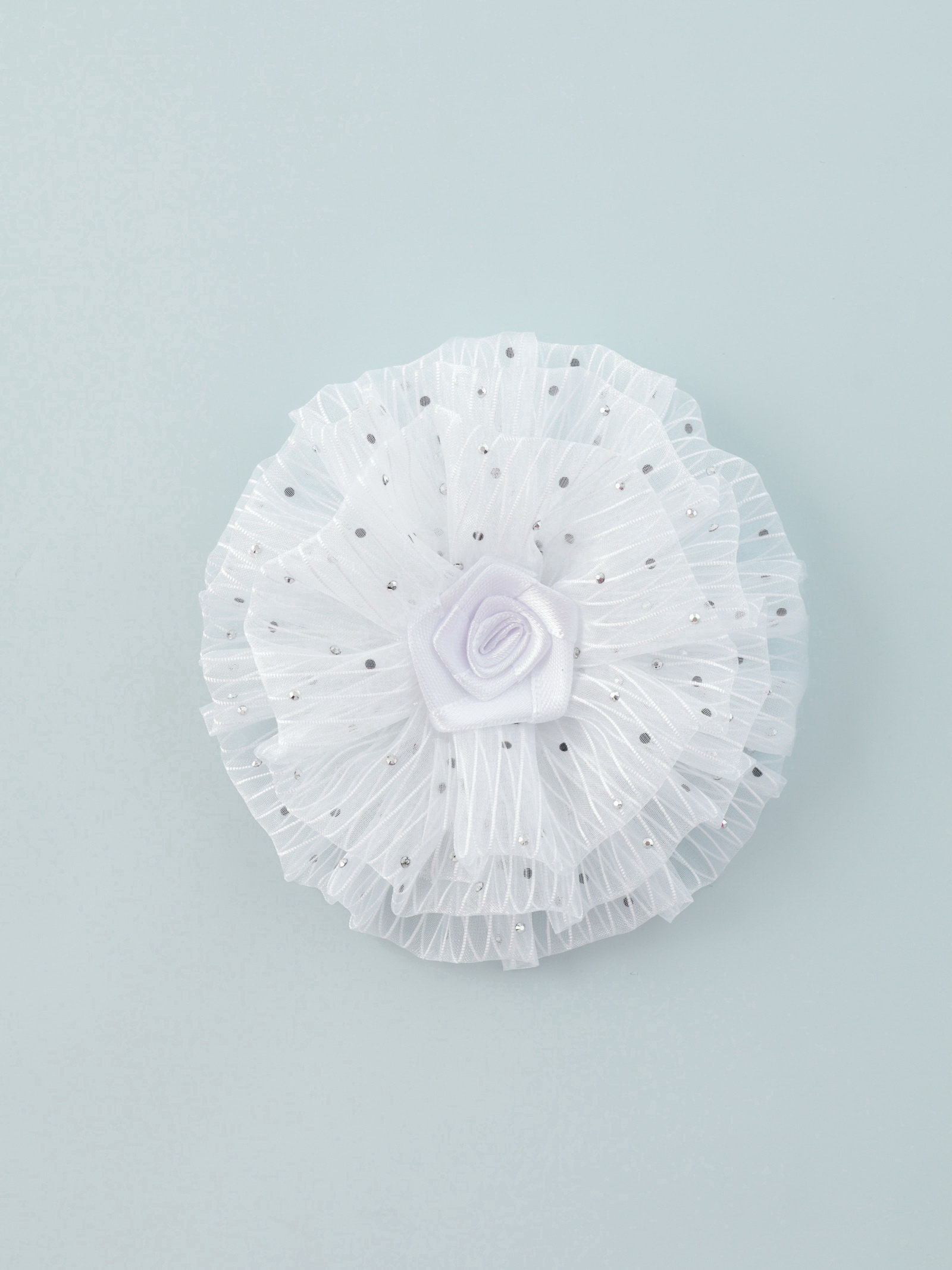 Бант для волос на резинке "Школьница", волнушка роза полоски, d=11 см, белый, 11 см., Китай