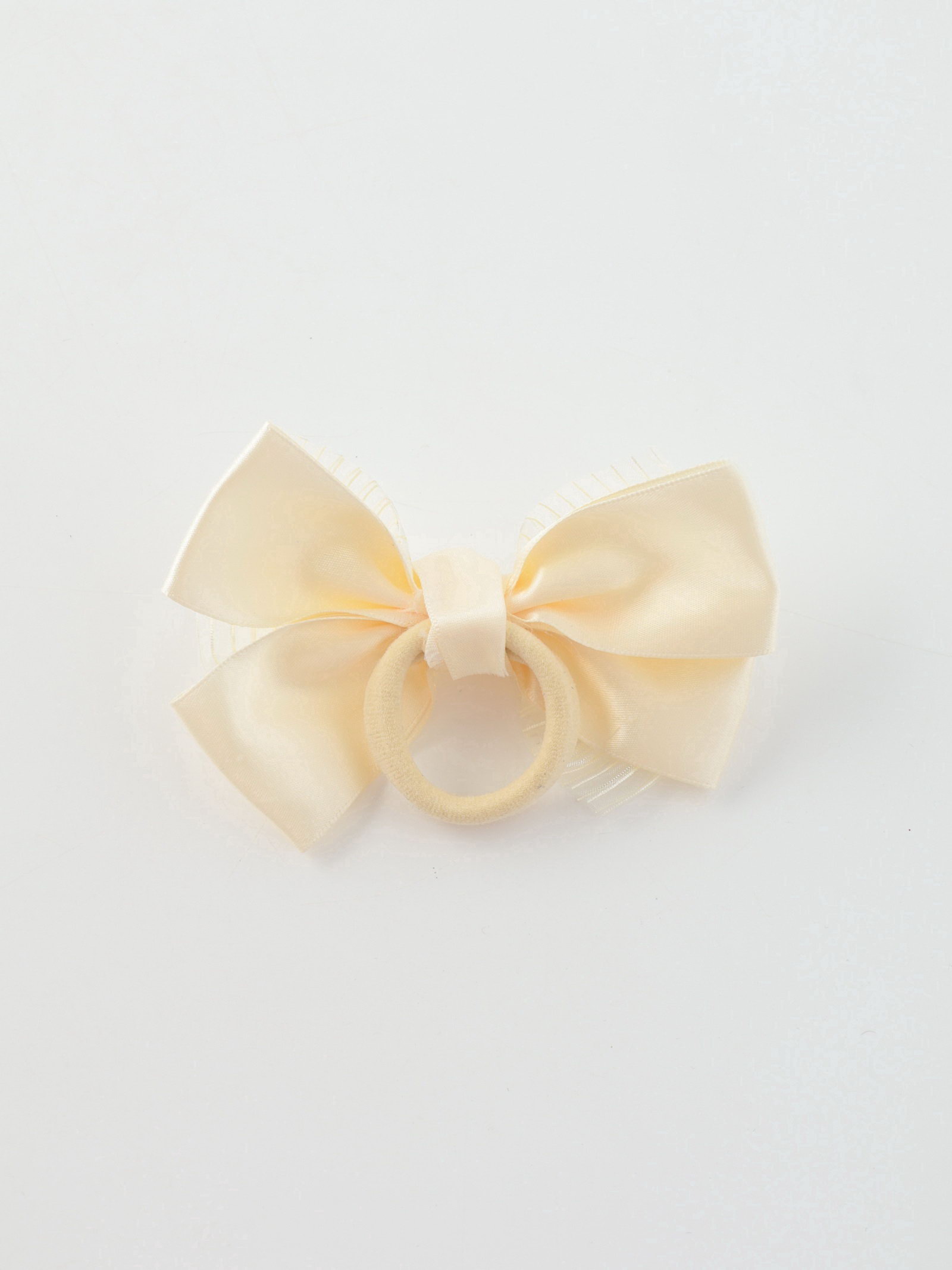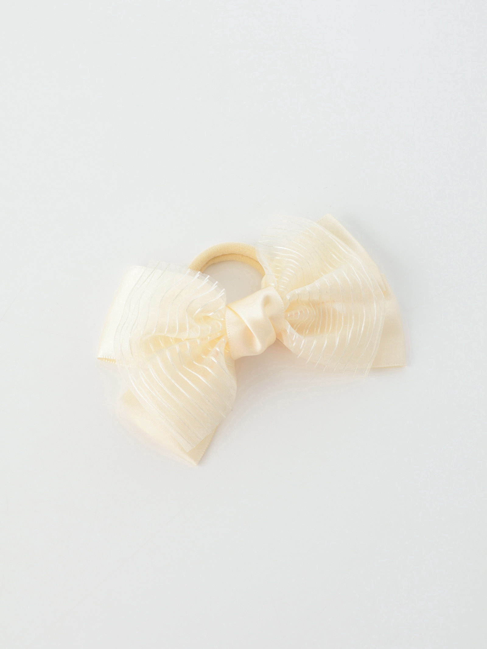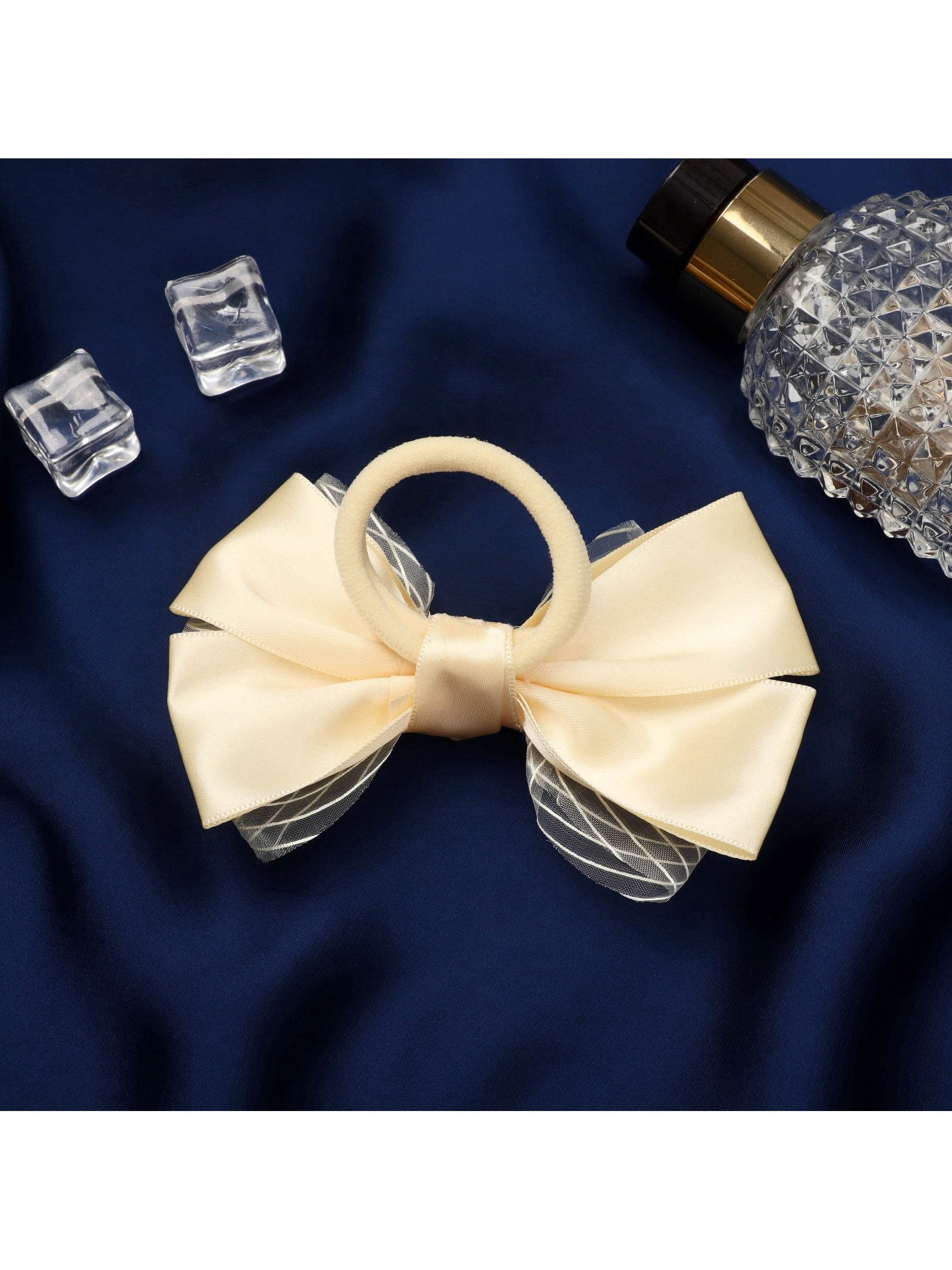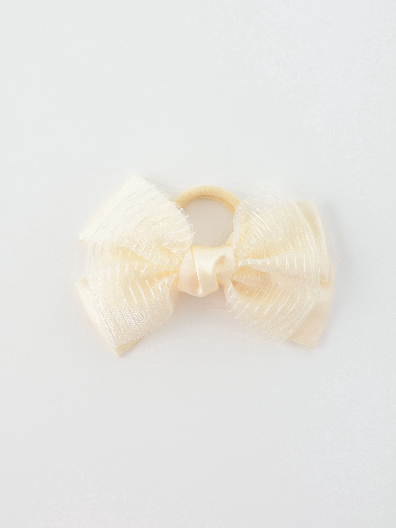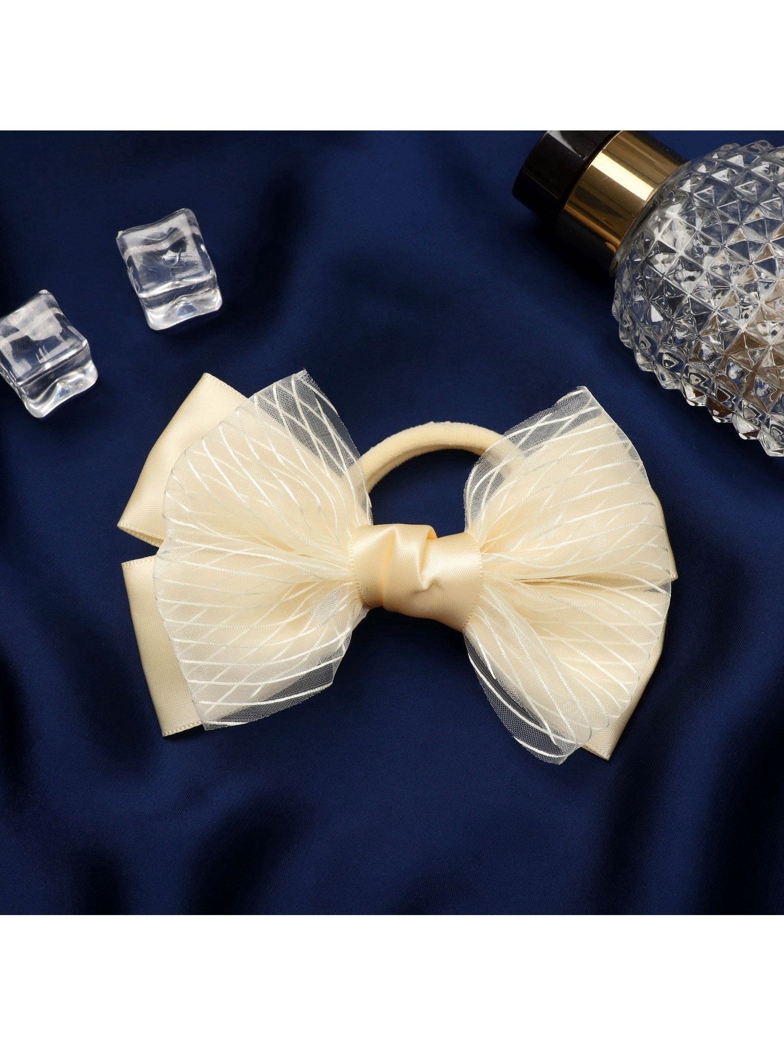 Бант для волос на резинке "Школьница", классика двойной полоски, 11x7 см, бежевый, 5х5х7 см., Китай