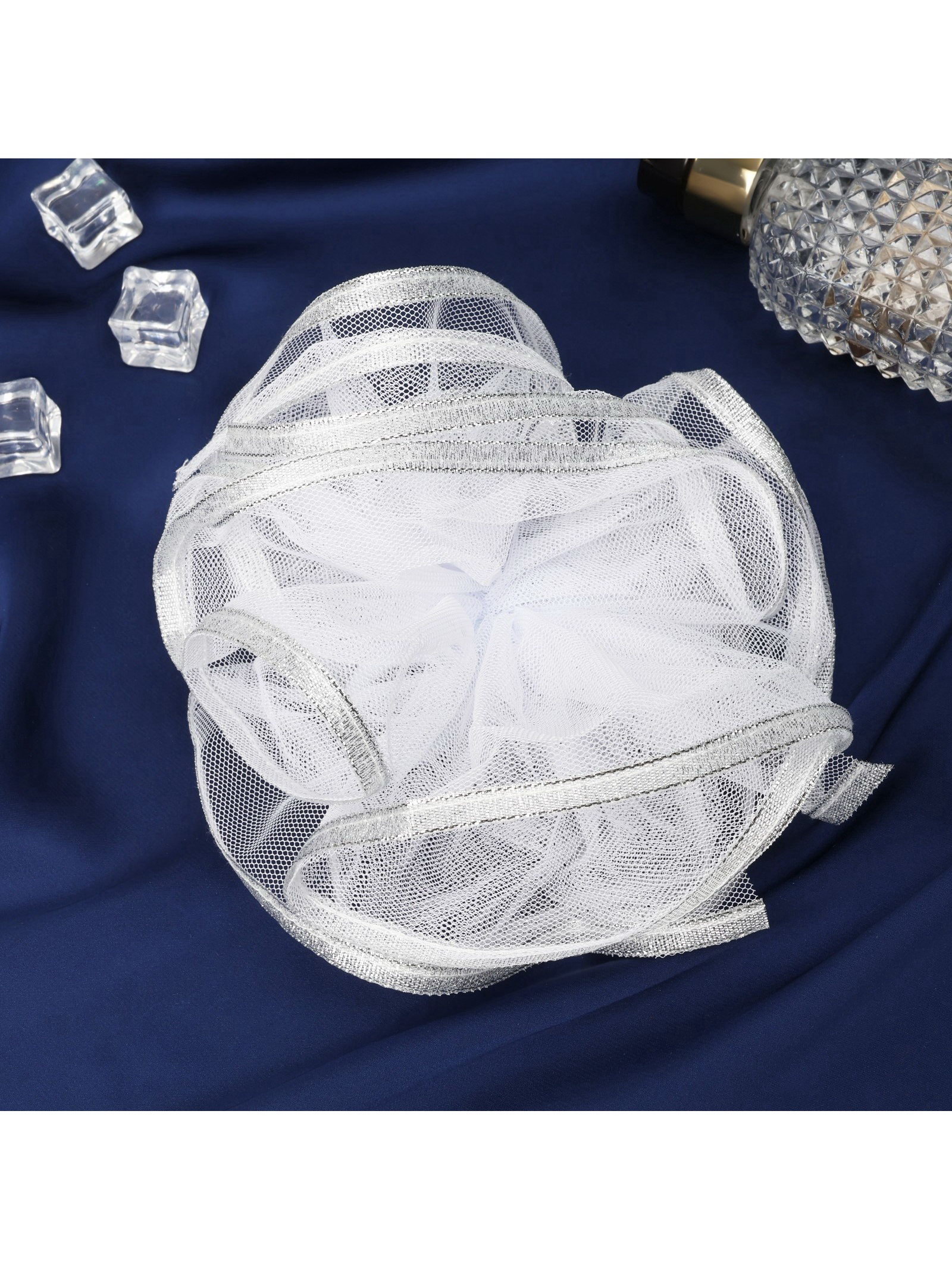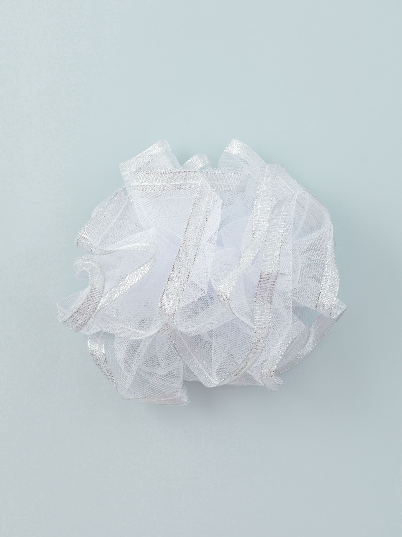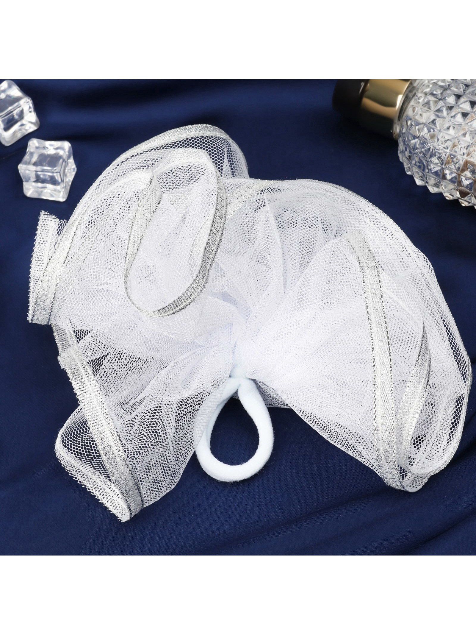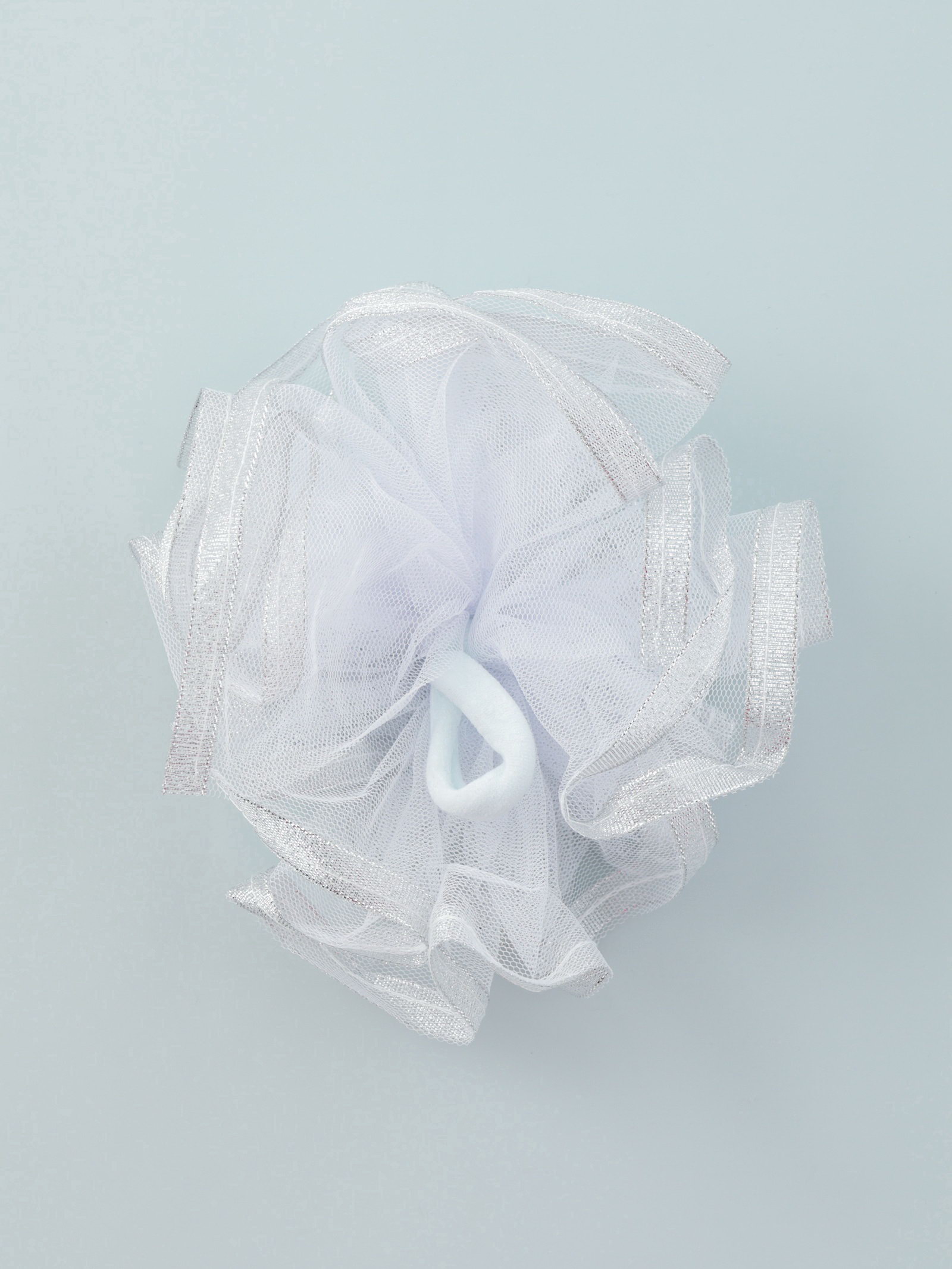 Бант для волос на резинке "Школьница", волна блеск, d=13 см, белый, 13 см., Китай