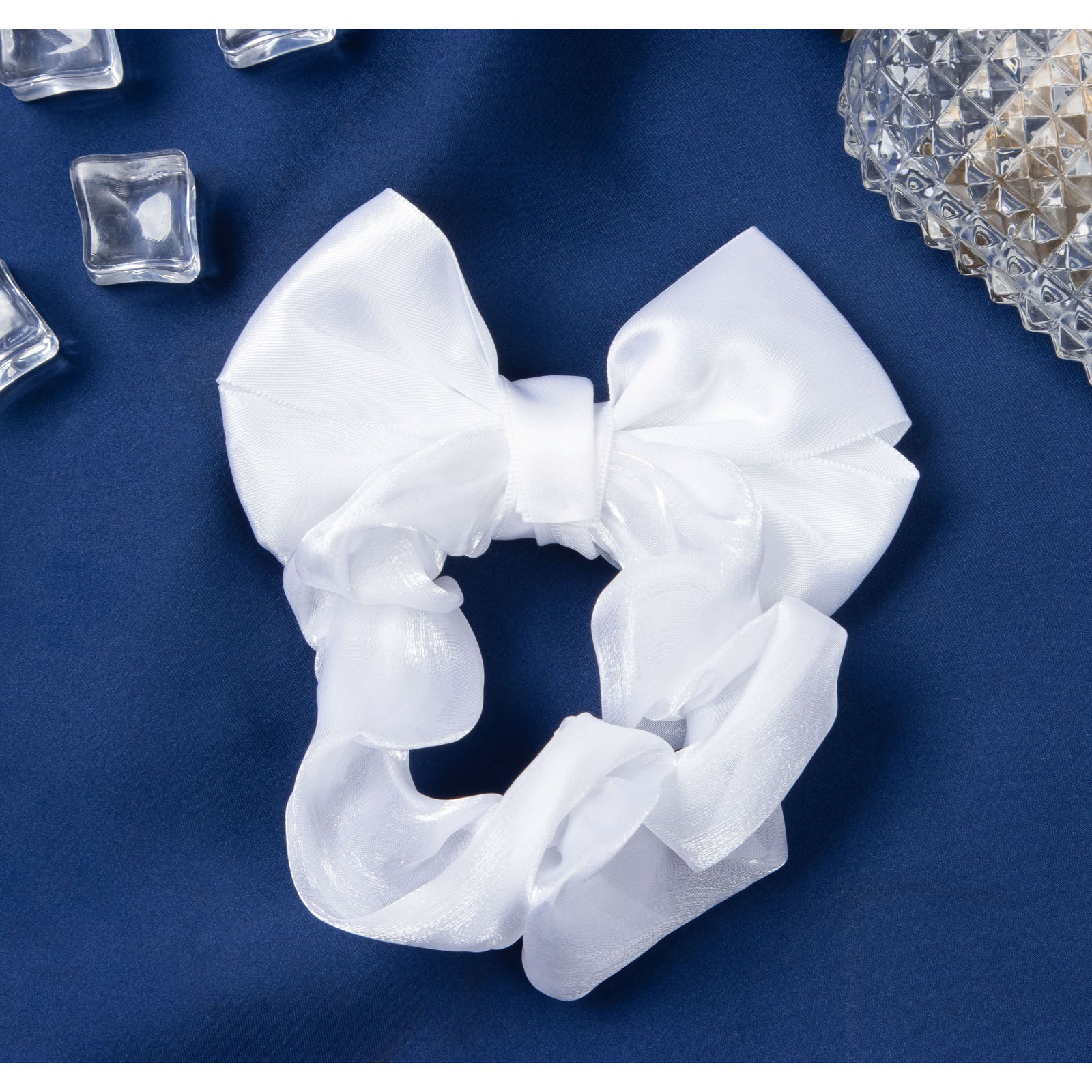 Резинка для волос "Школьница", орбита бант, d=10 см, белая, 10 см., Китай