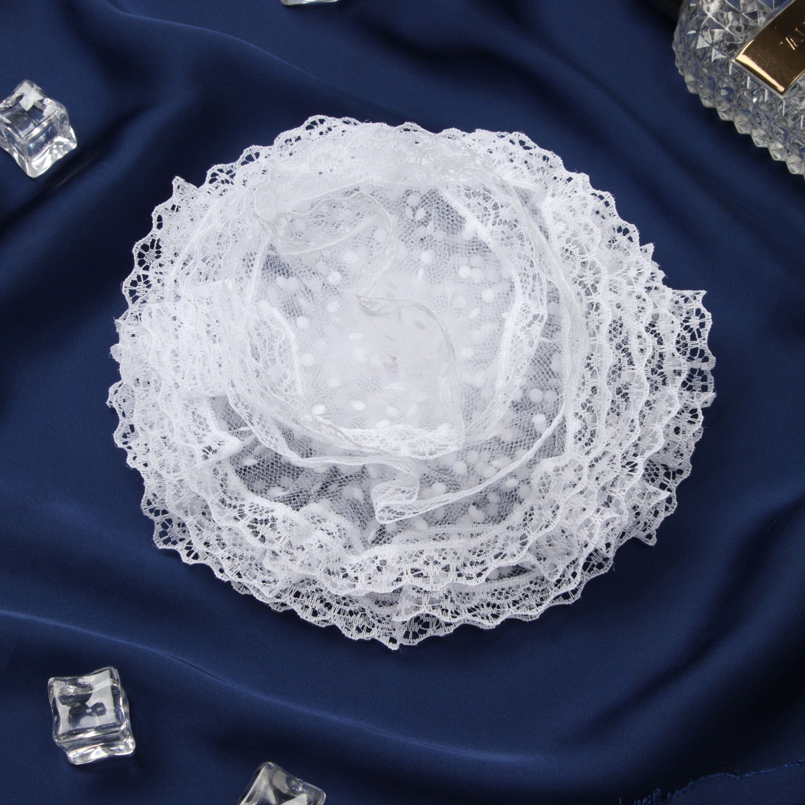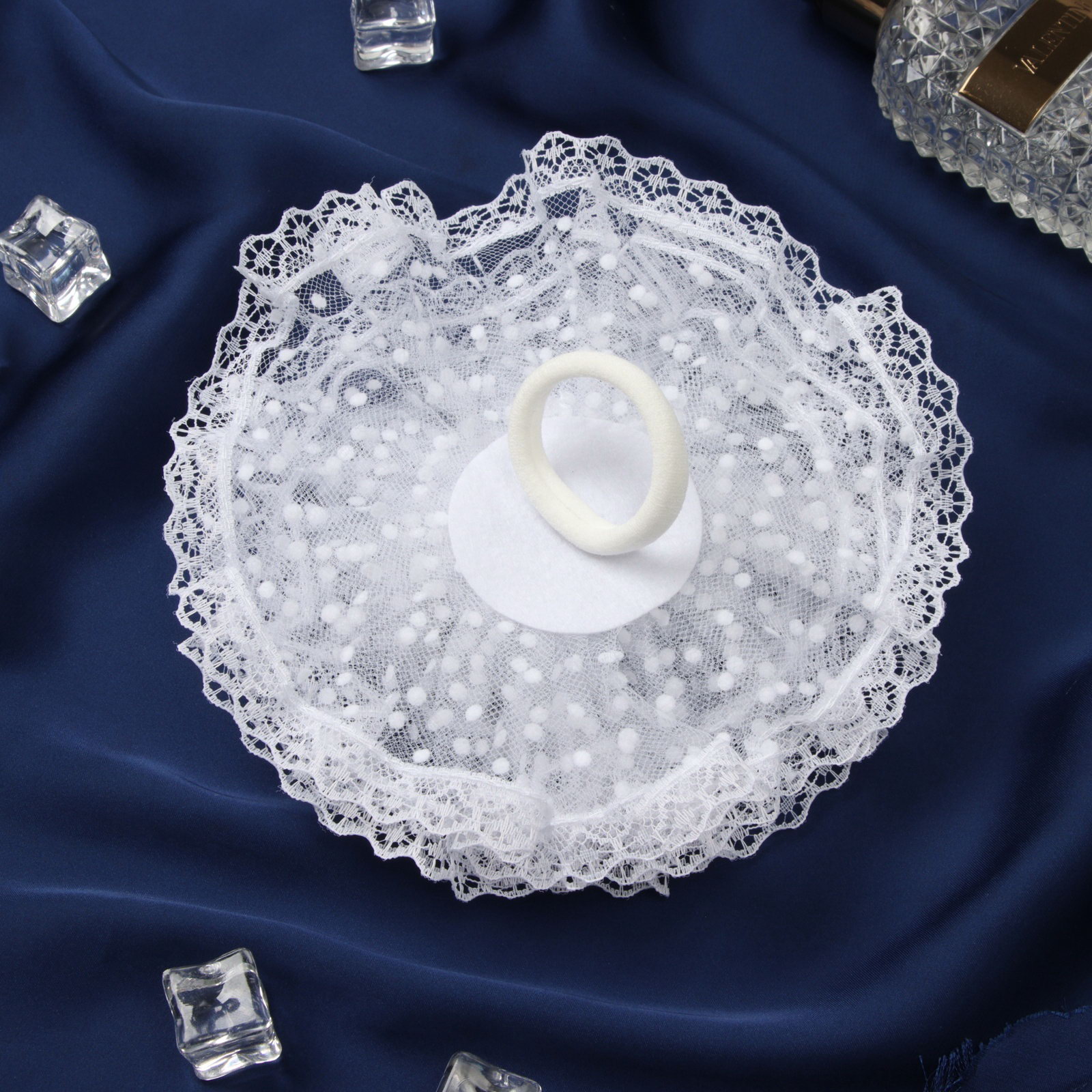 Бант для волос на резинке "Школьница", волна кружева горох, d=15 см, белый, 15 см., Китай