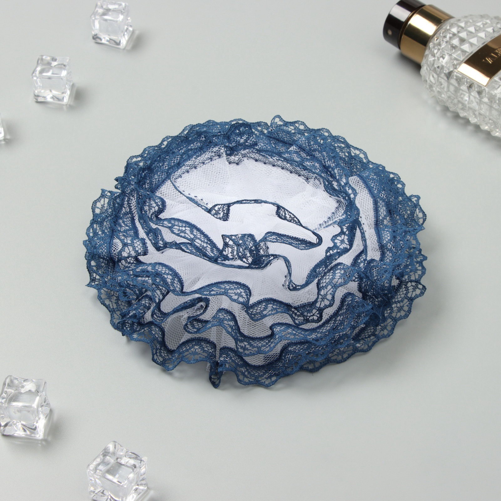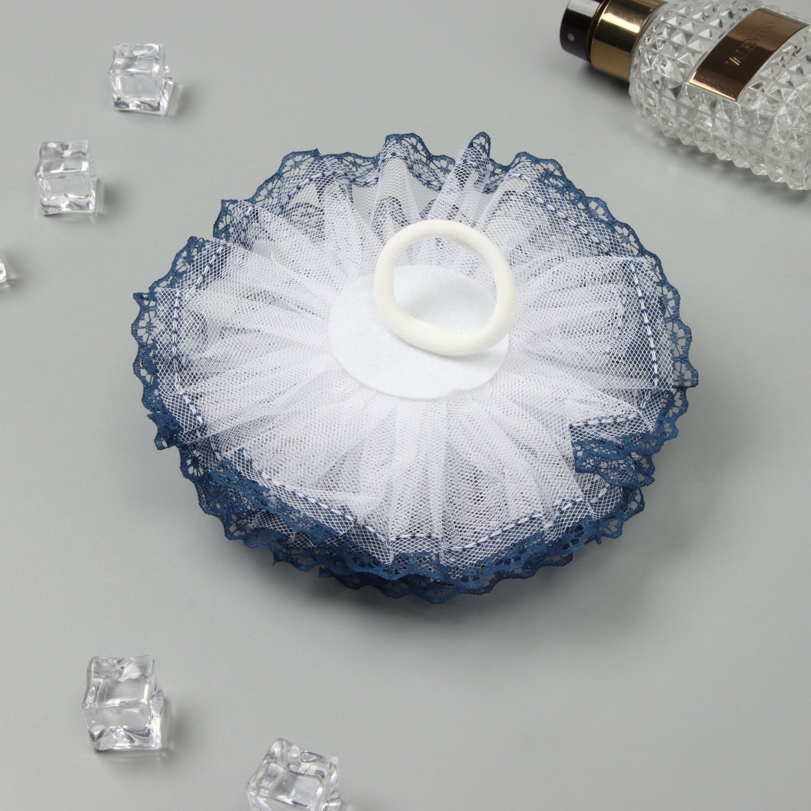 Бант для волос на резинке "Школьница", волна кружева контраст, d=15 см, сине-белый, 15 см., Китай