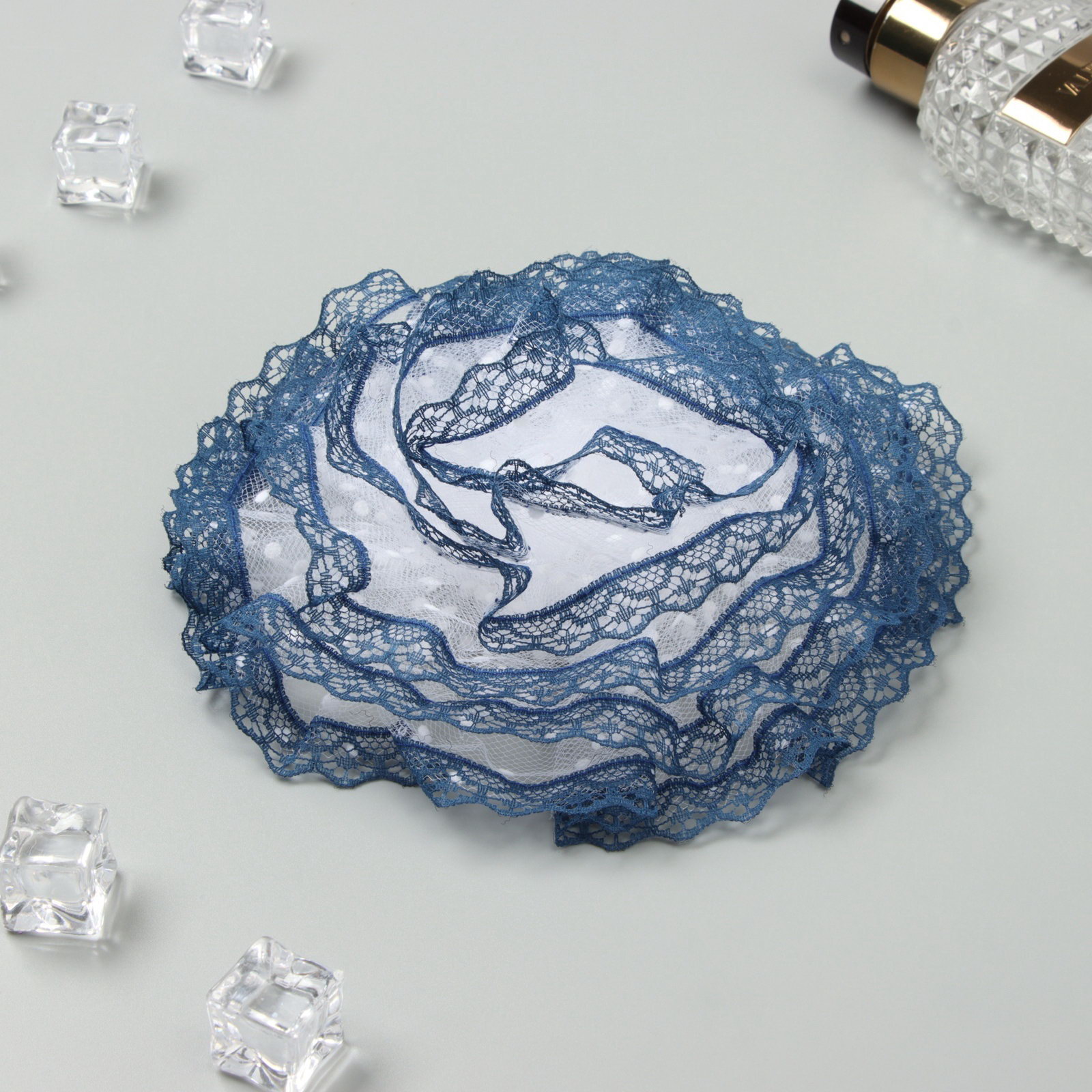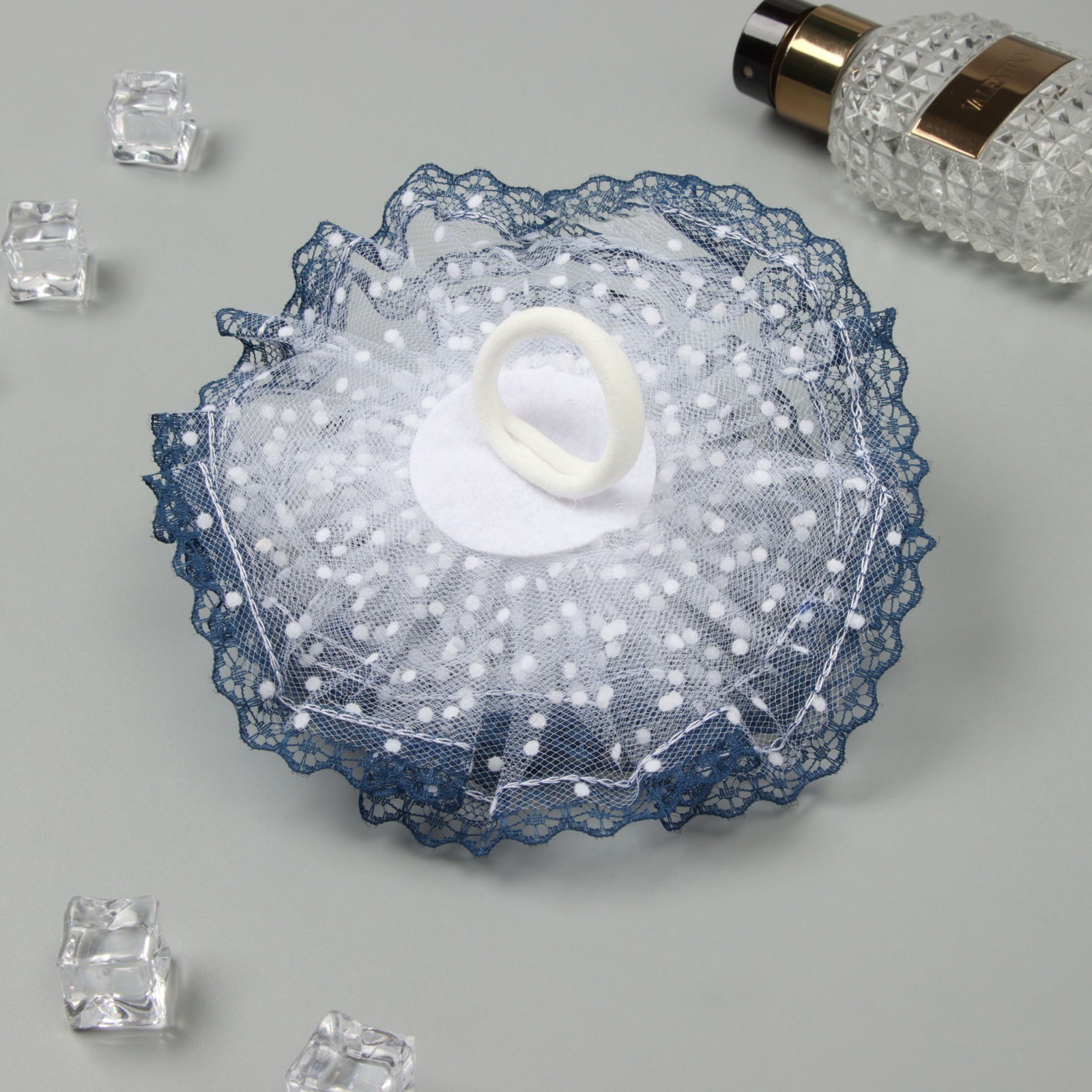 Бант для волос на резинке "Школьница", волна кружева контраст горох, d=15 см, сине-белый, 15 см., Китай