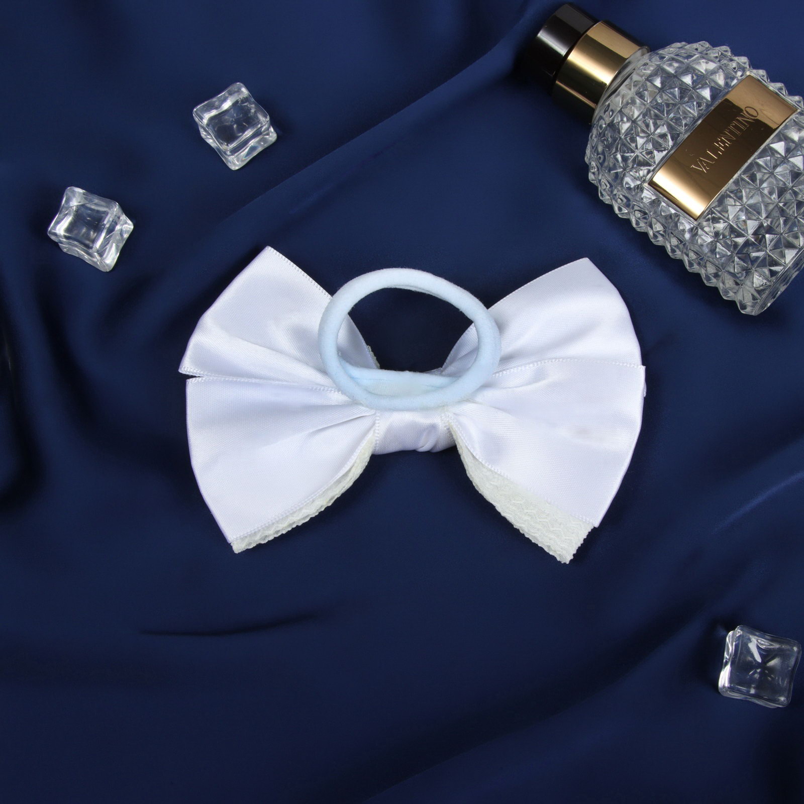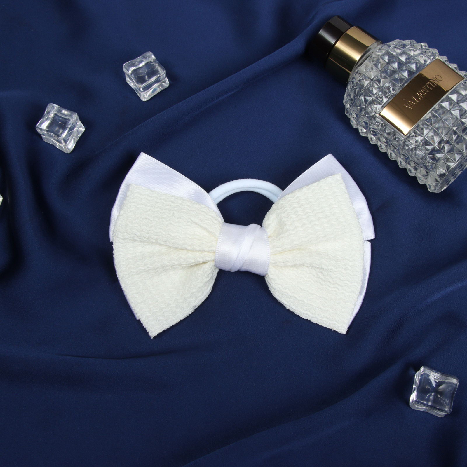 Бант для волос на резинке "Школьница стиль", узоры, 12 см, белый, 5 см., Китай