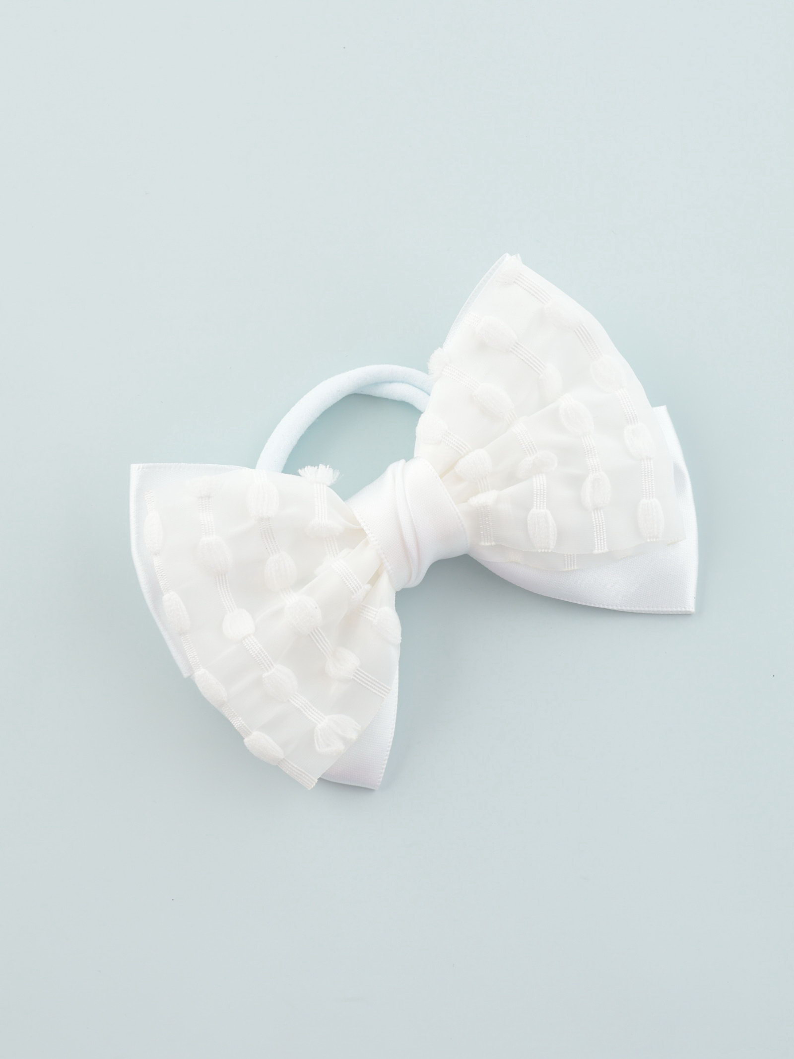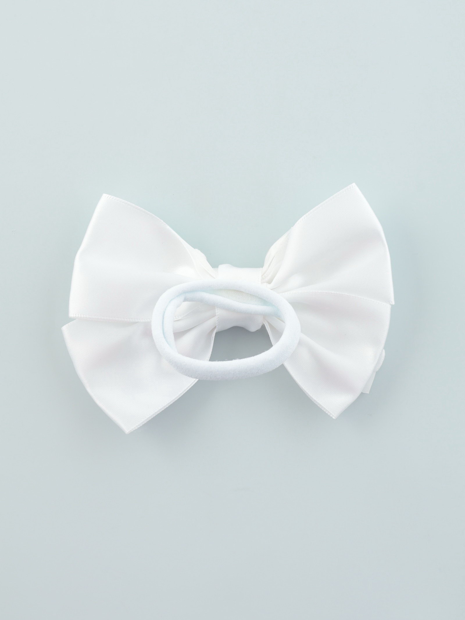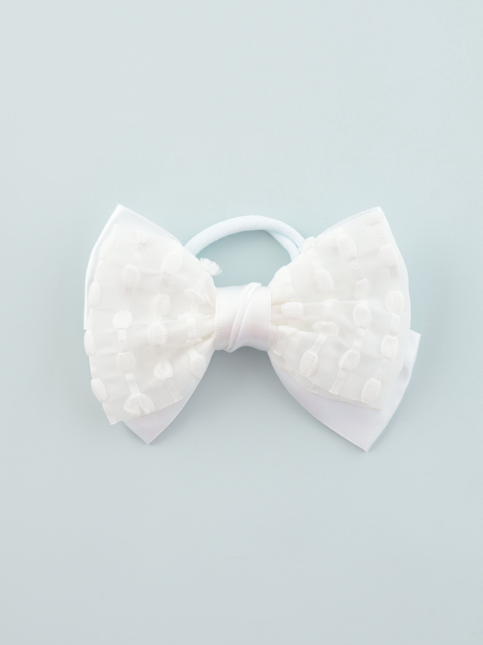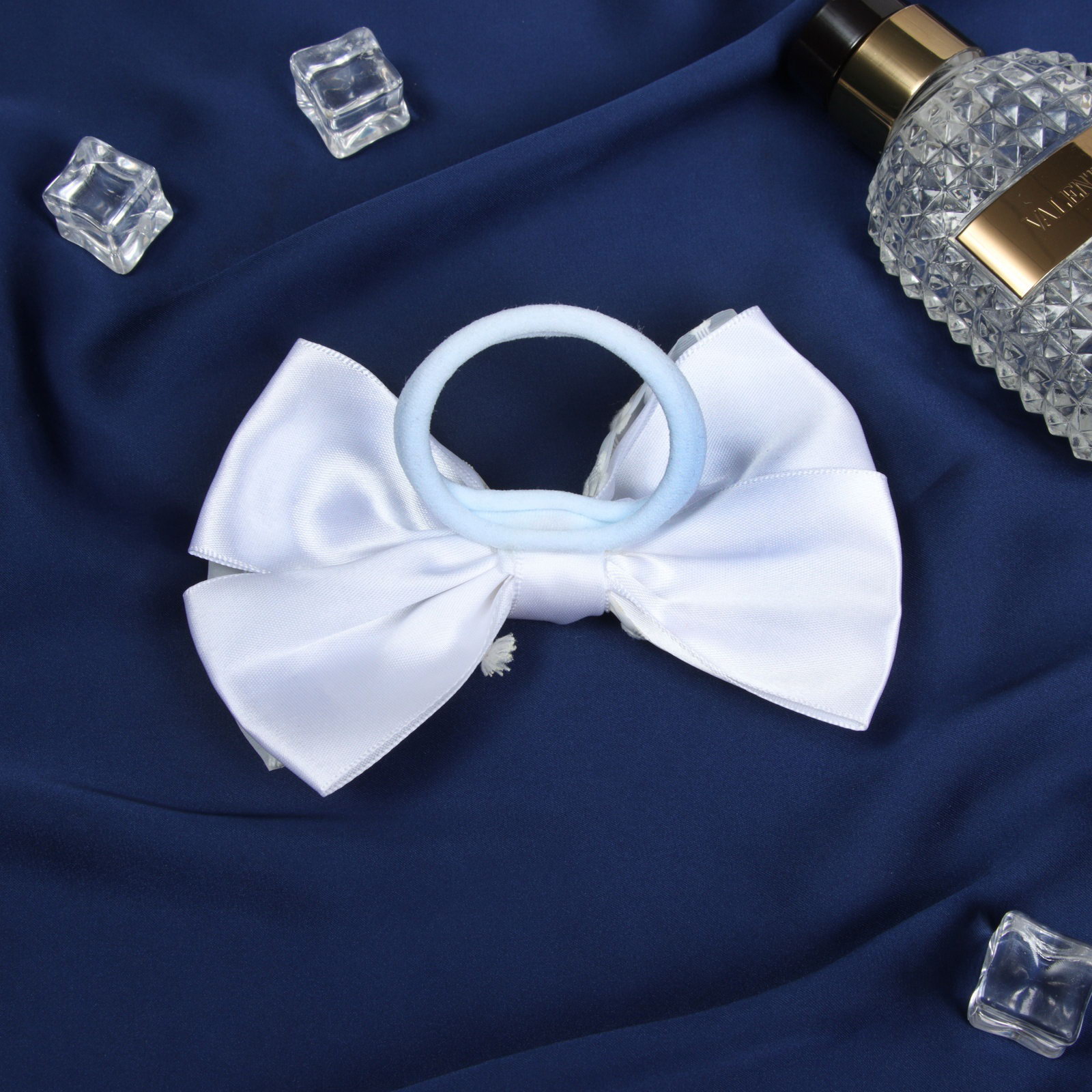 Бант для волос на резинке "Школьница. Стиль", классика полосы, 12 см, белый, 5 см., Китай
