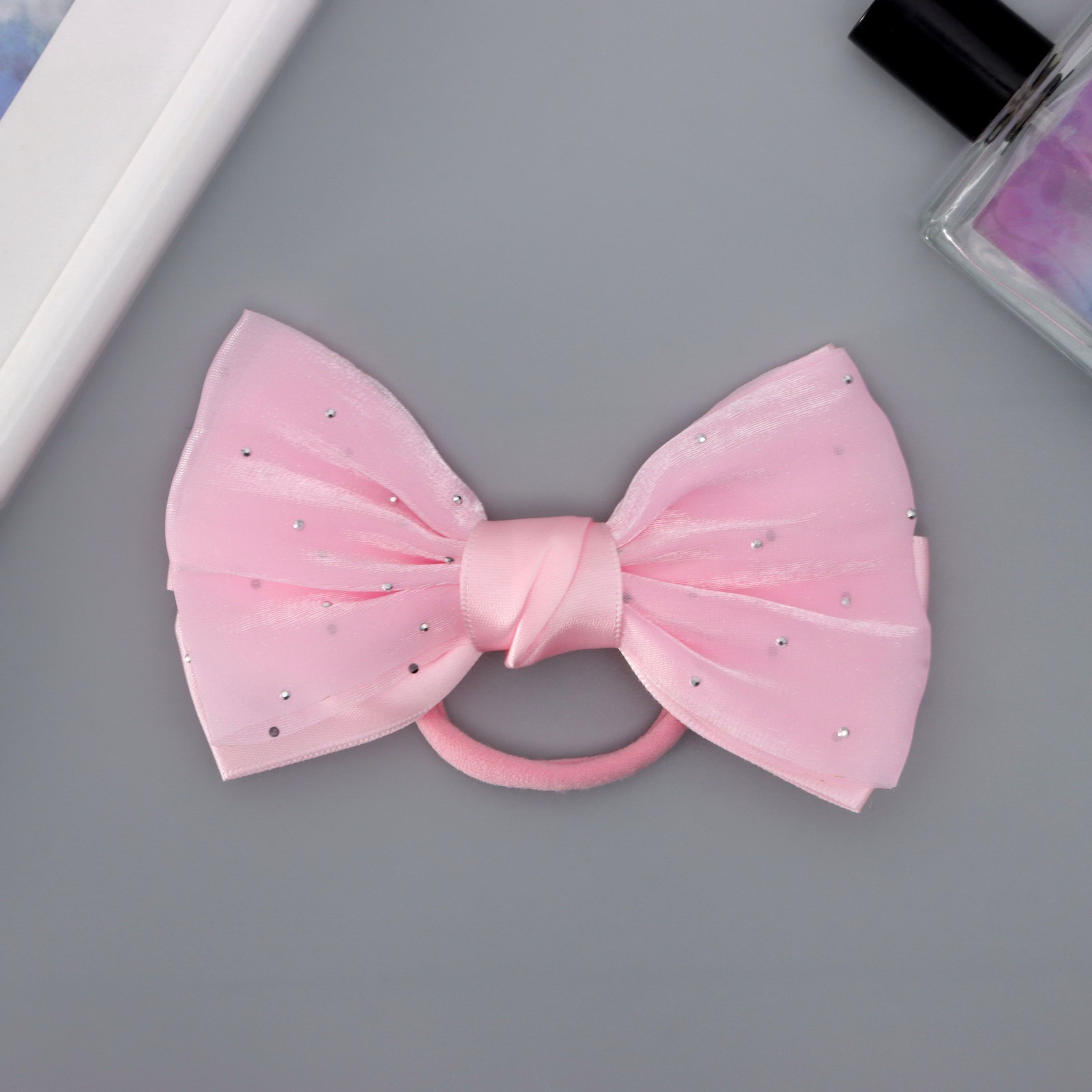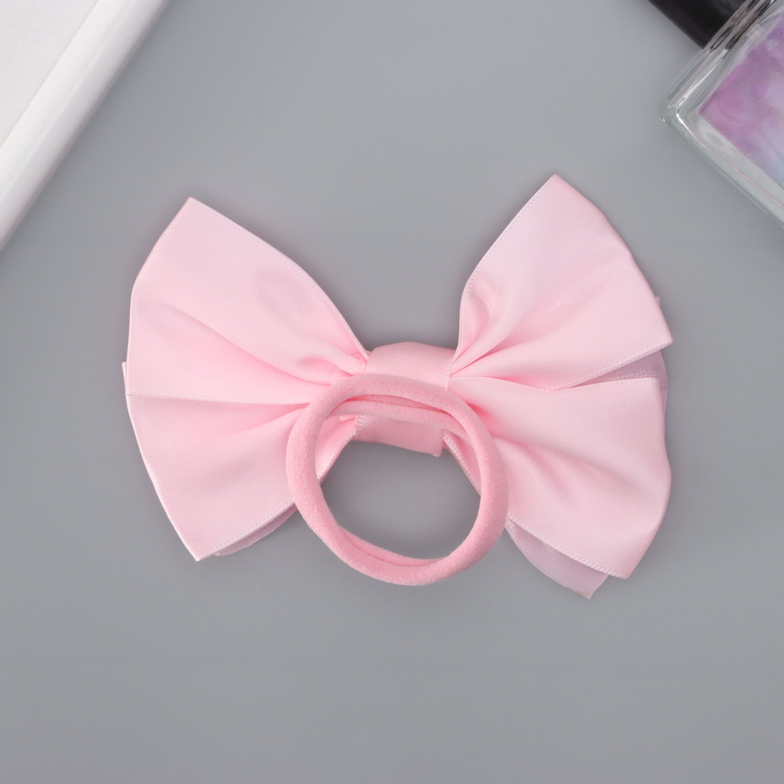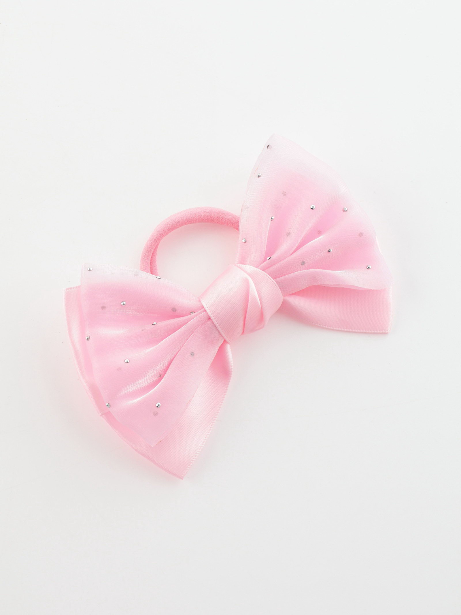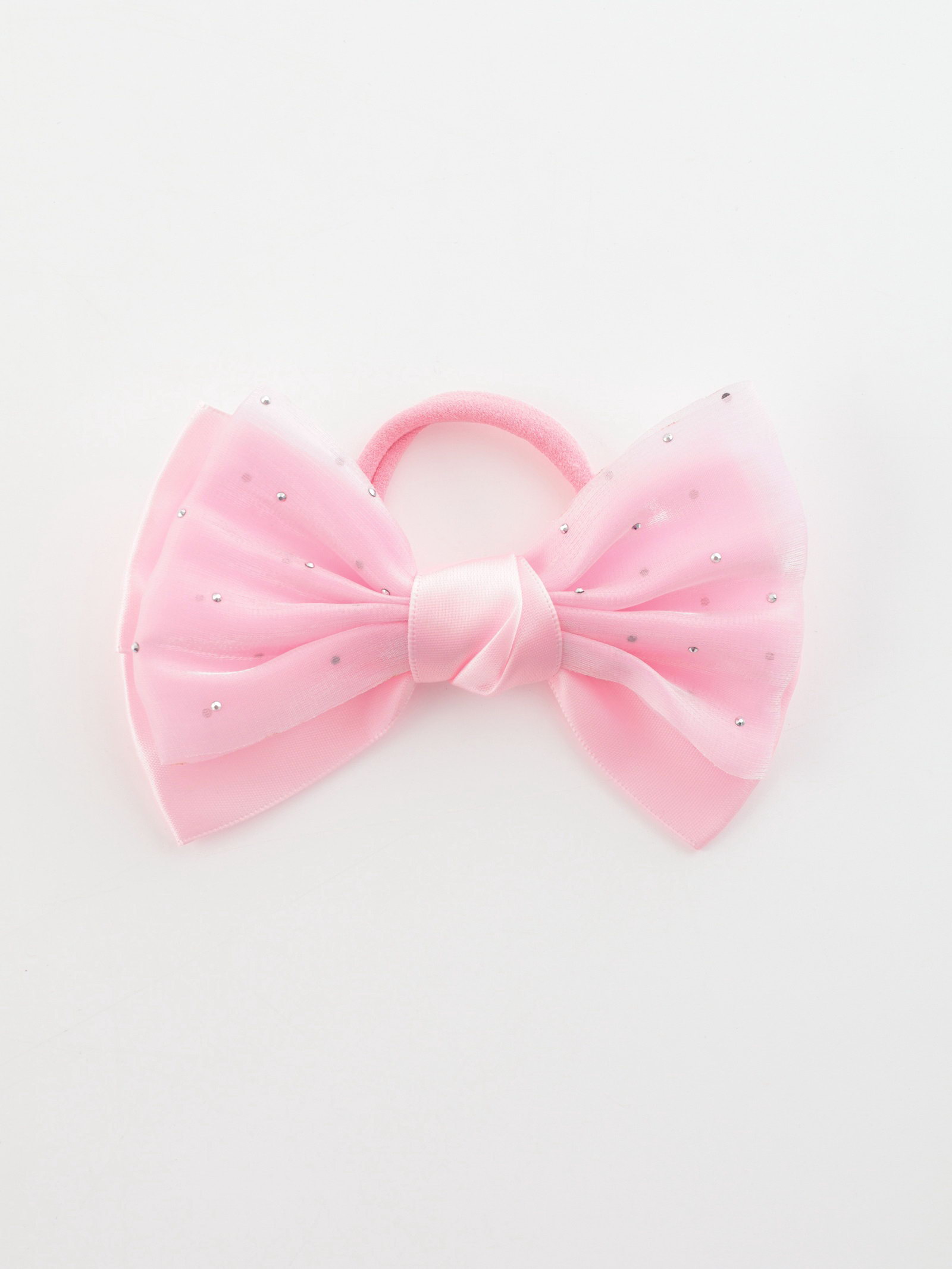 Бант для волос на резинке "Школьница. Стиль", блеск, 11 см, розовый, 5 см., Китай