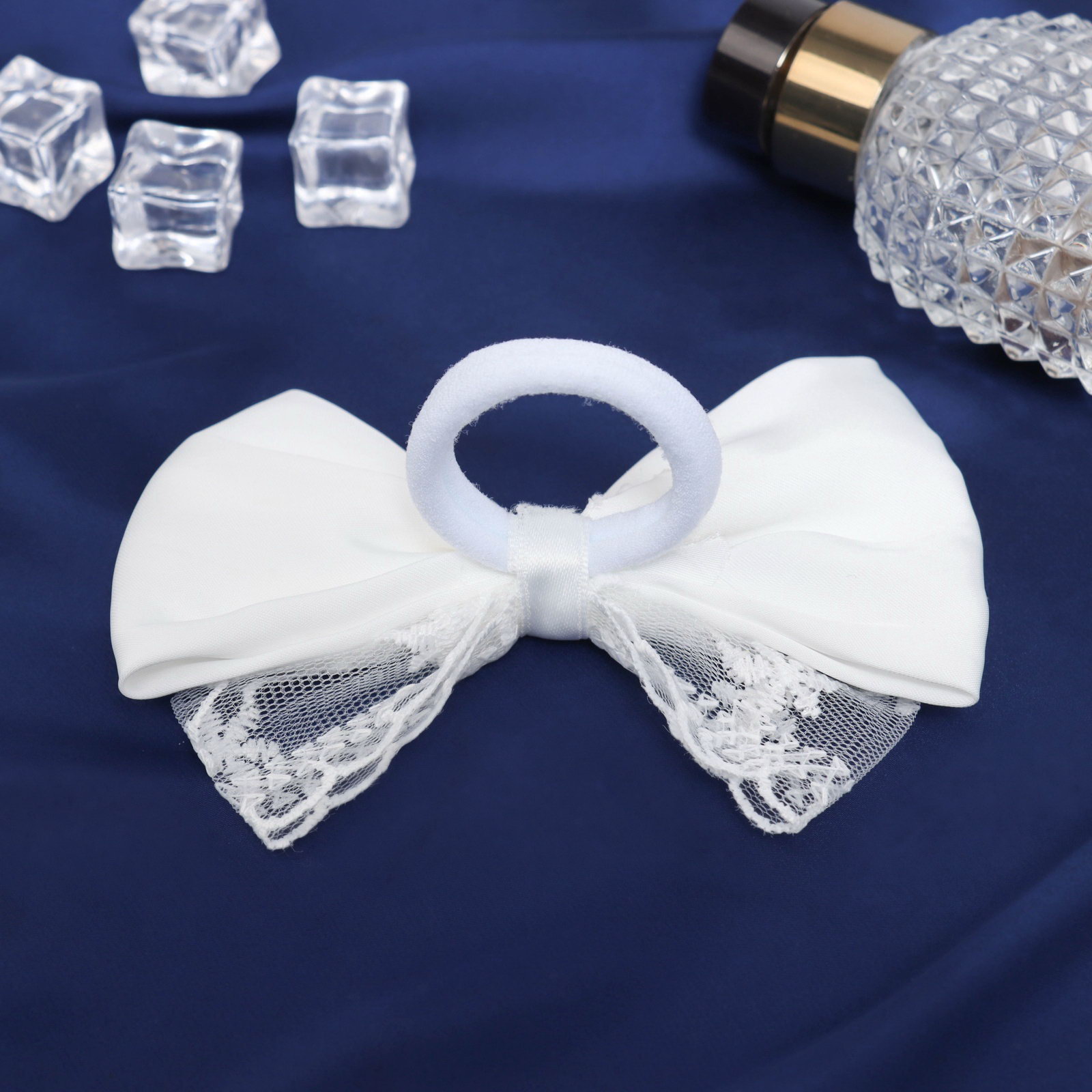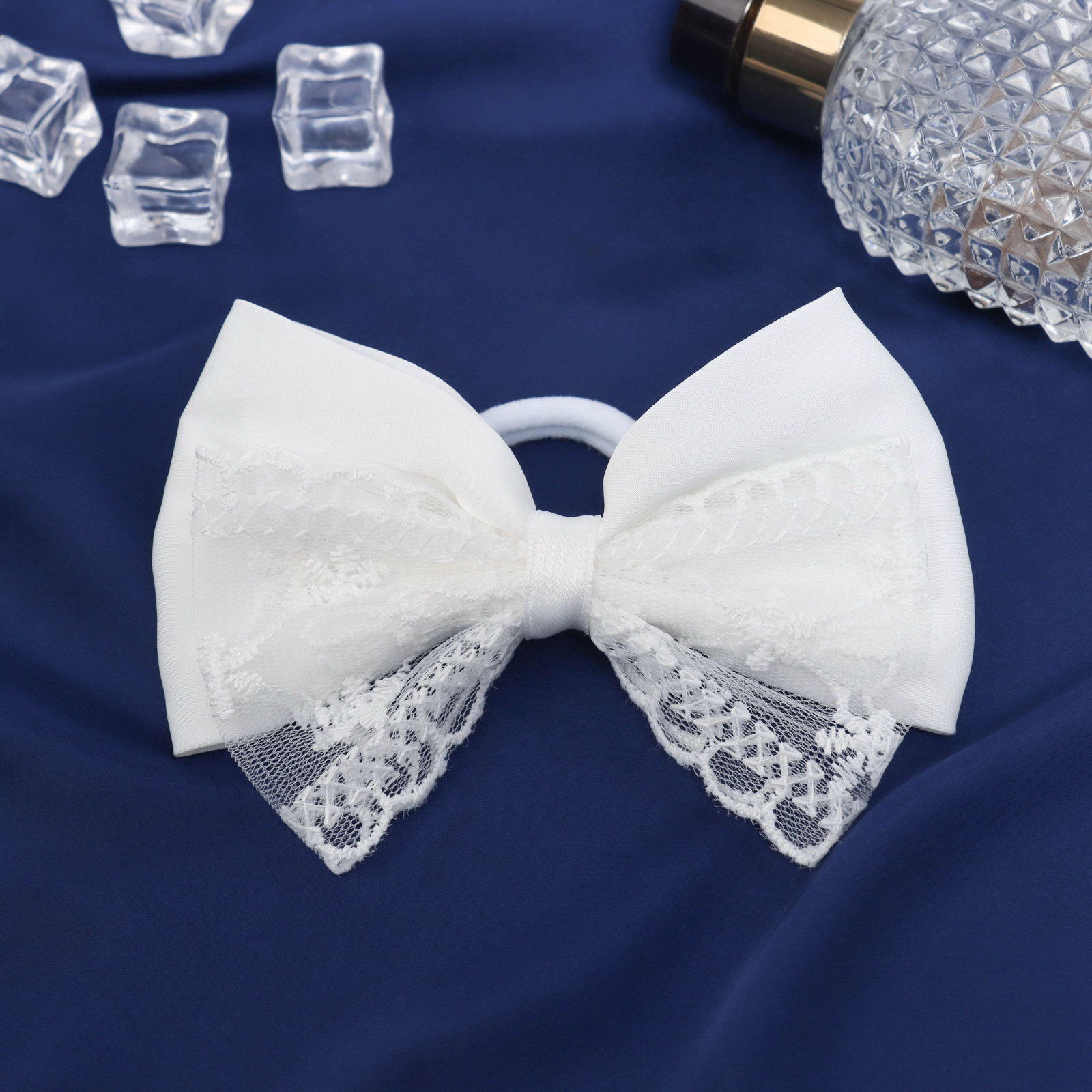 Бант для волос на резинке "Школьница", воздушное кружево, 12 см, белый, 5 см., Китай