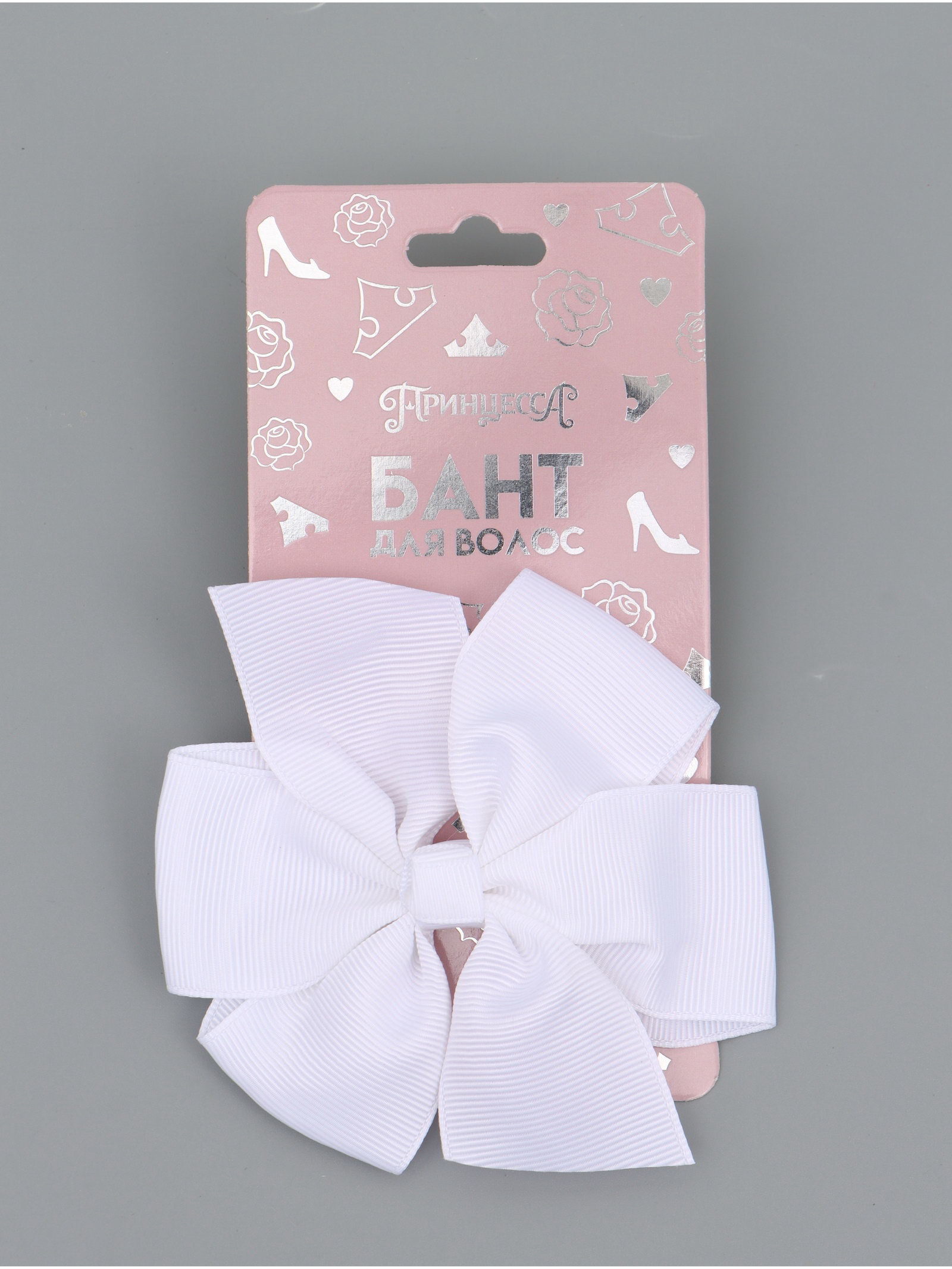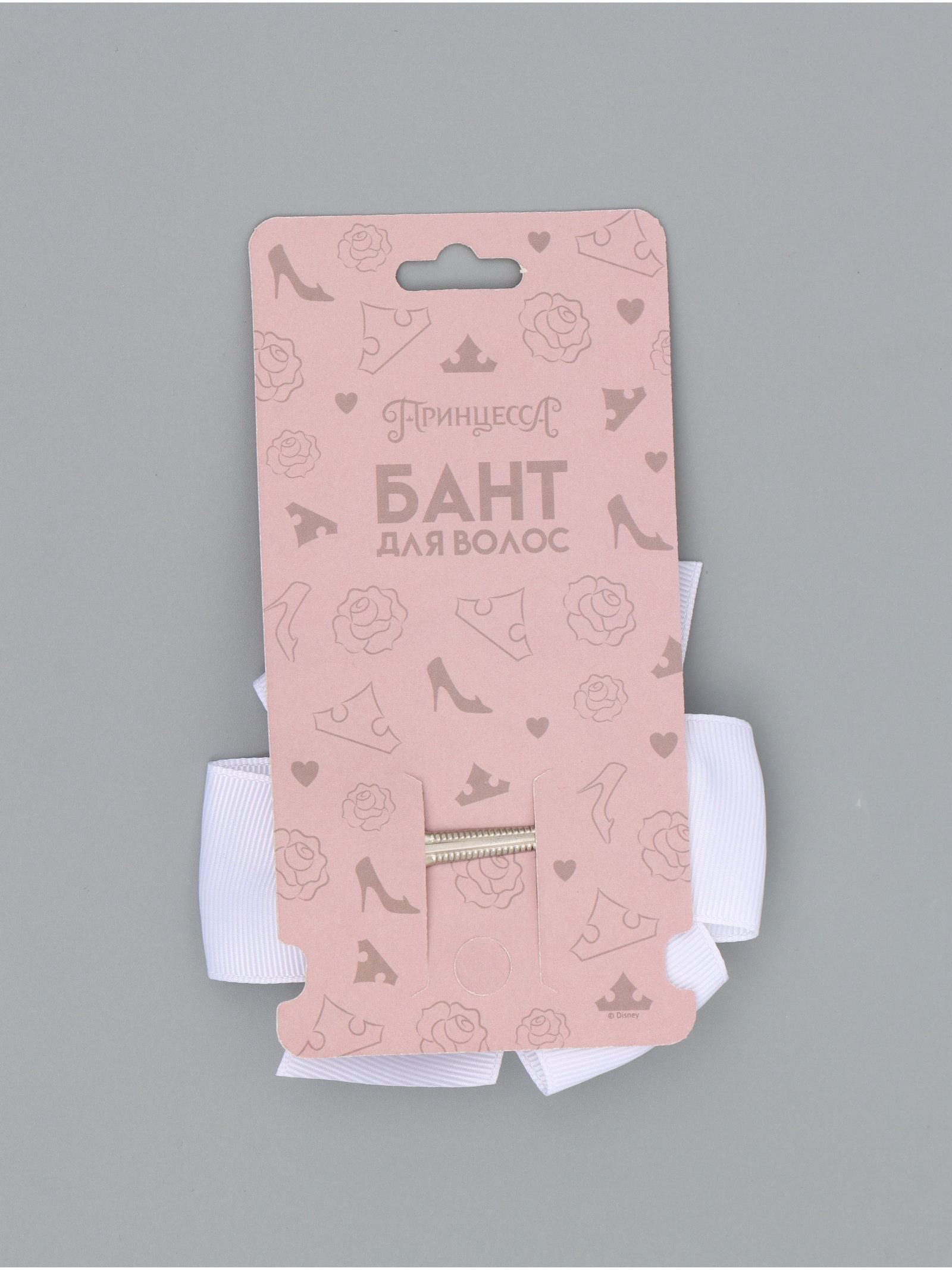 Бант для волос на заколке белый, Принцессы Дисней, 7.5x15x2 см., Disney, Китай