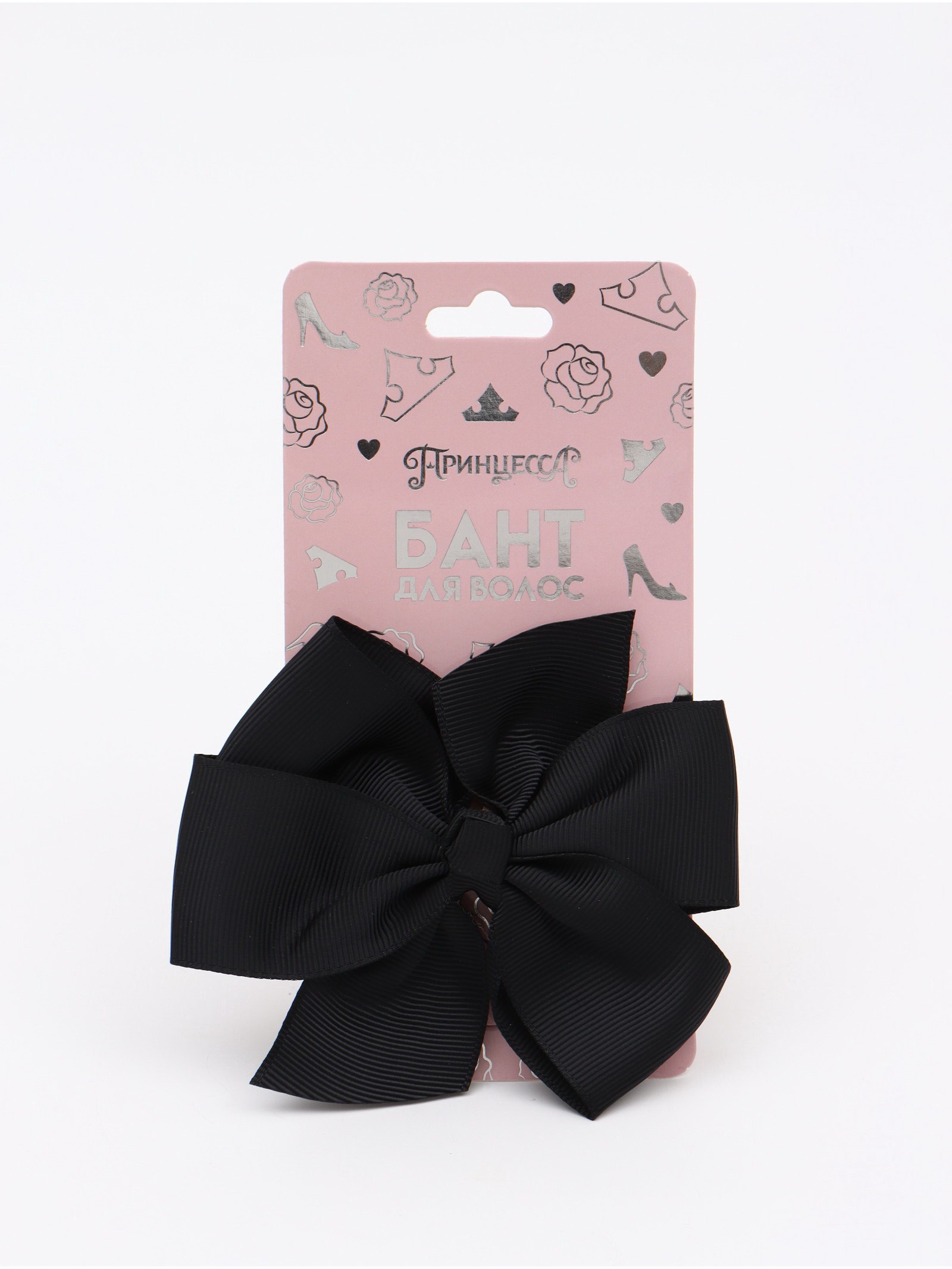 Бант для волос на заколке чёрный, Принцессы Дисней, 7.5x15x2 см., Disney, Китай