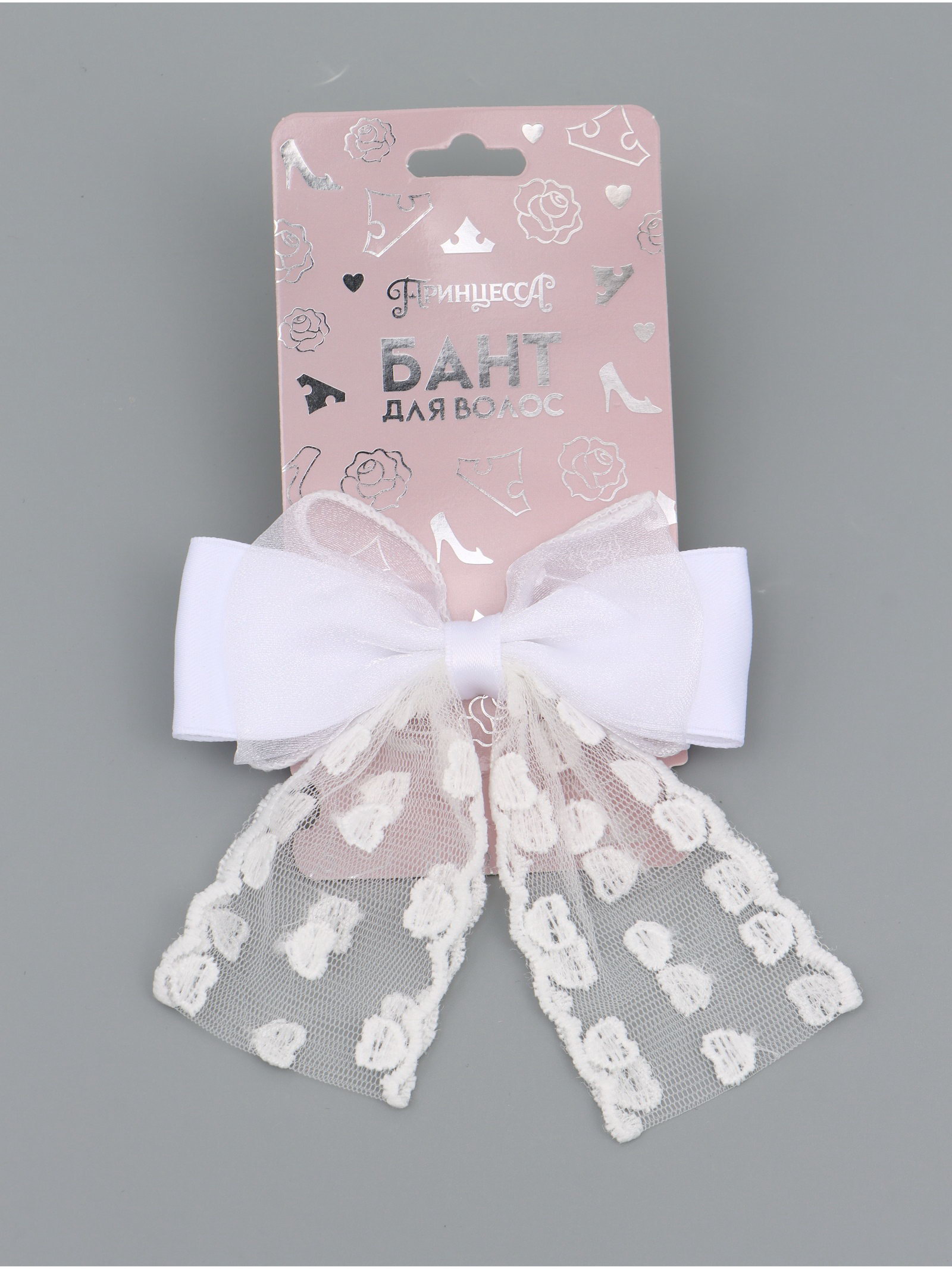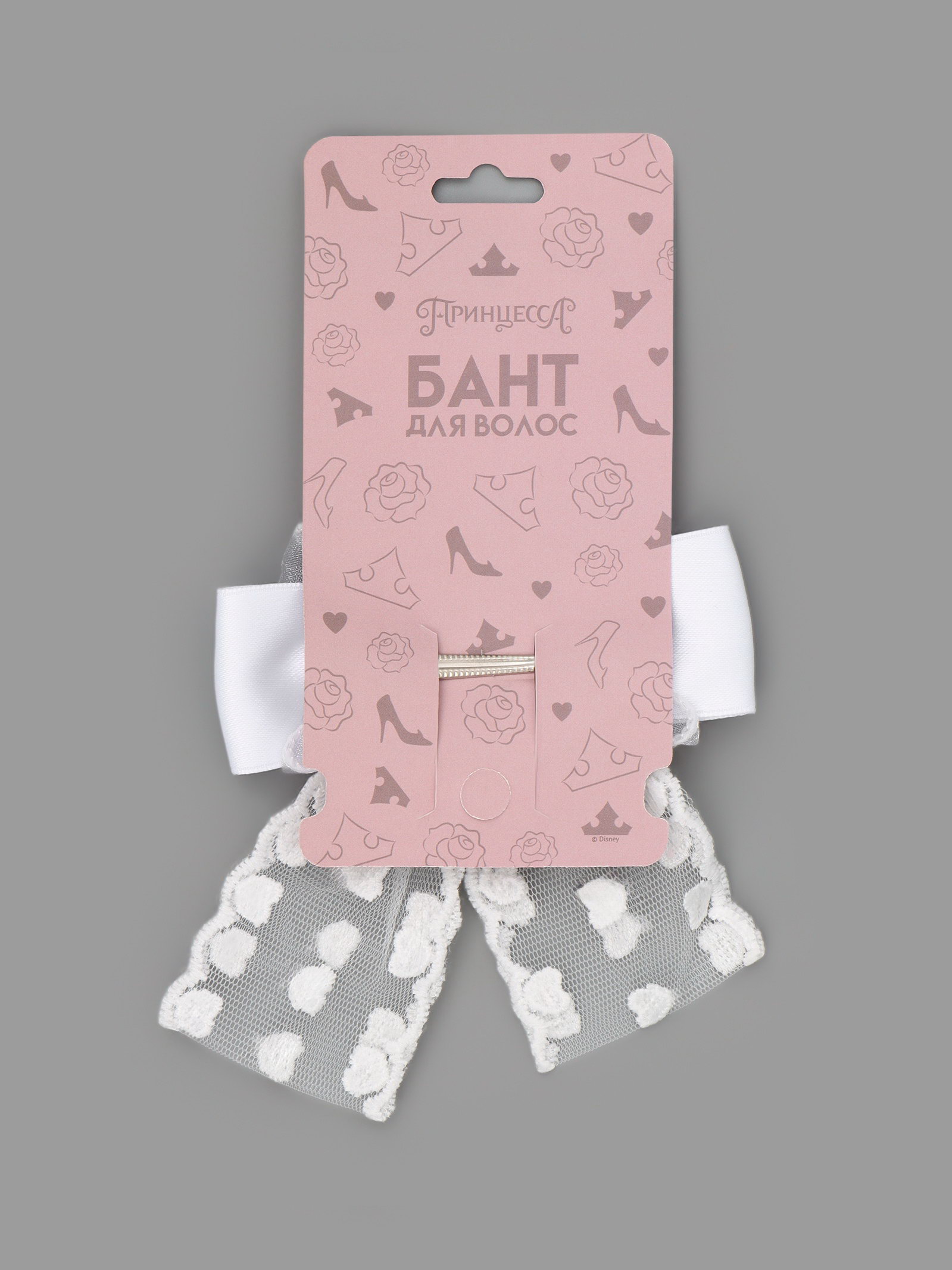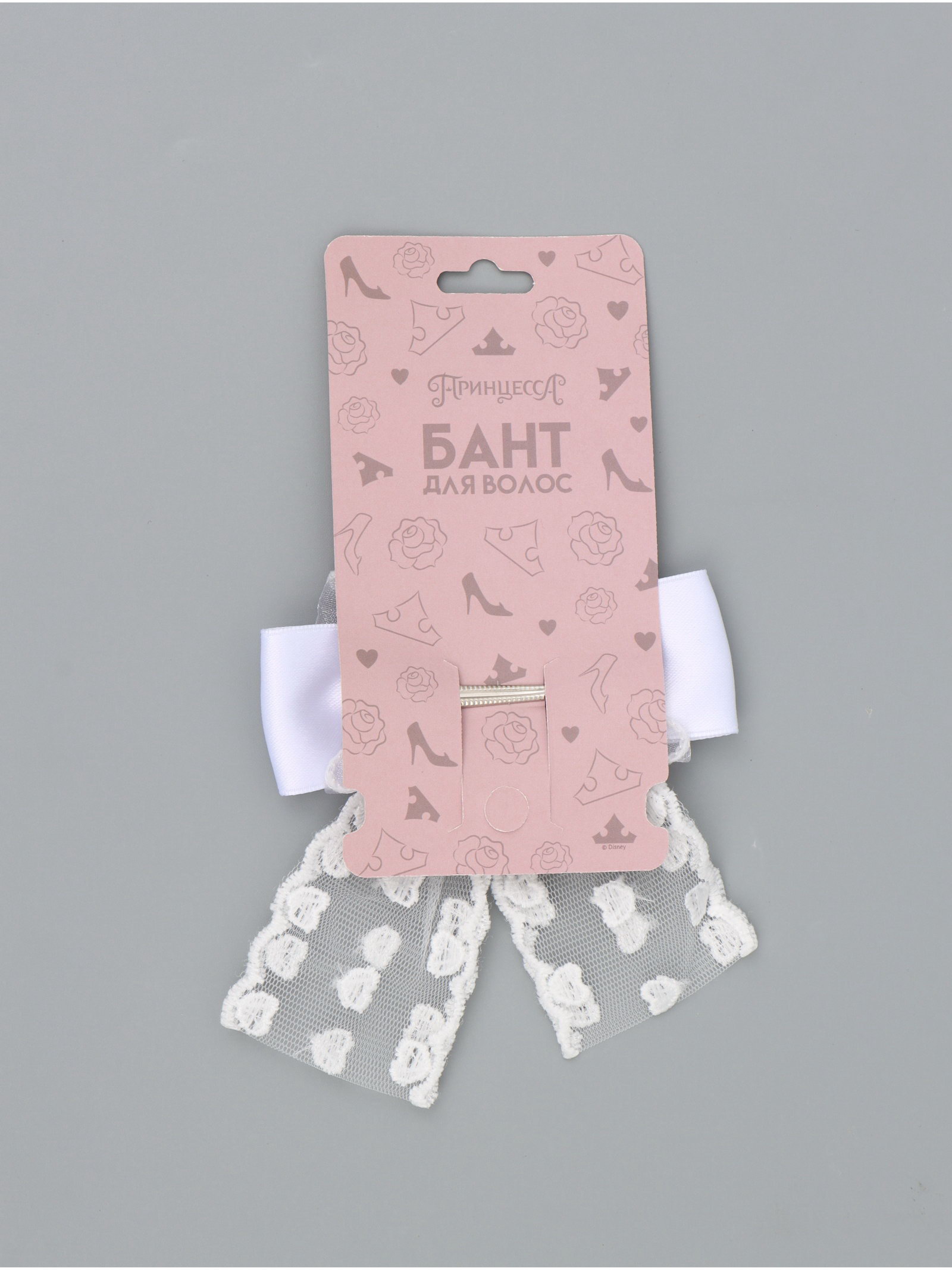 Бант для волос на заколке с лентами "Сердечки", белый, Принцессы Дисней, 7.5x15x2 см., Disney, Китай
