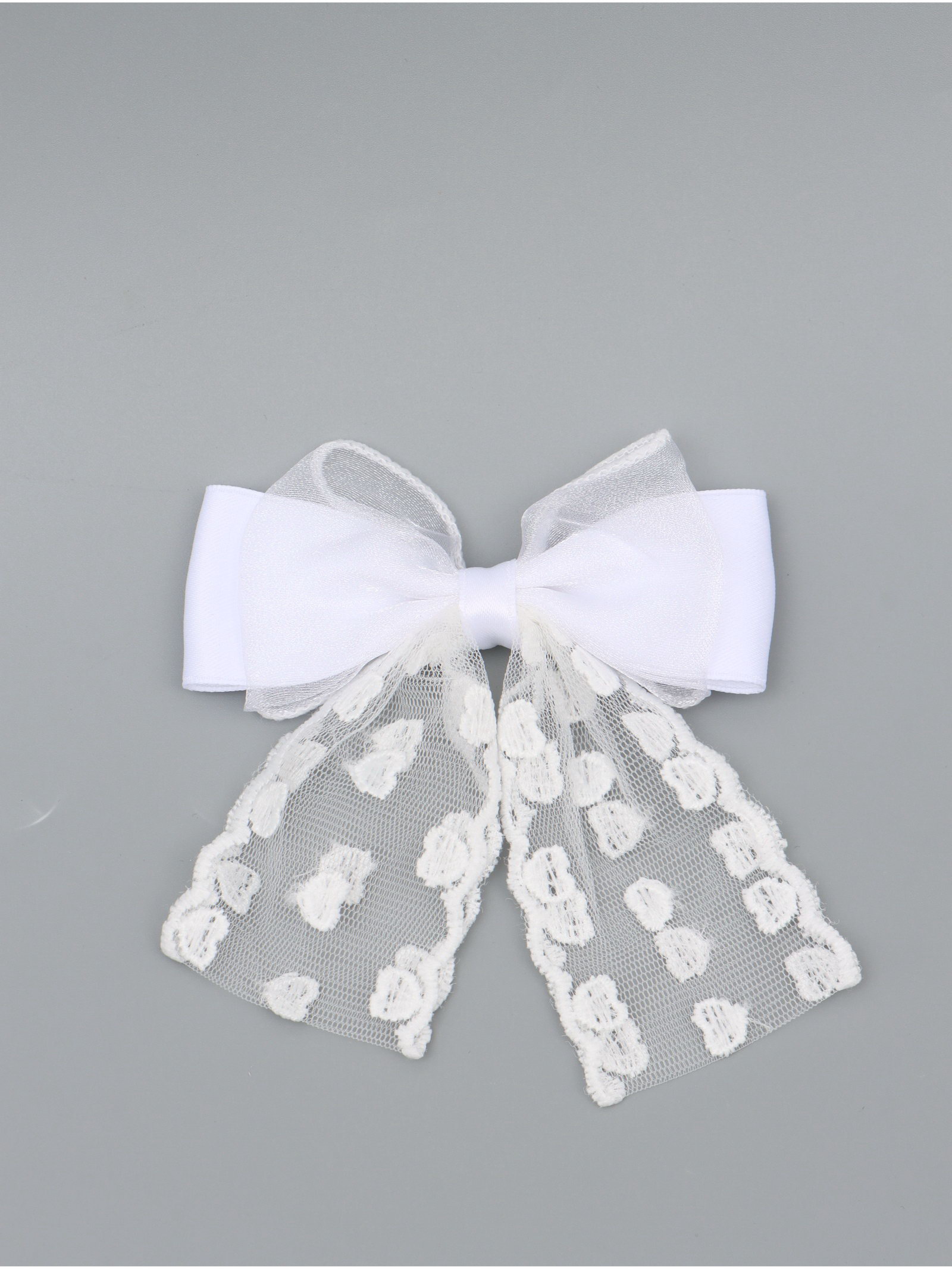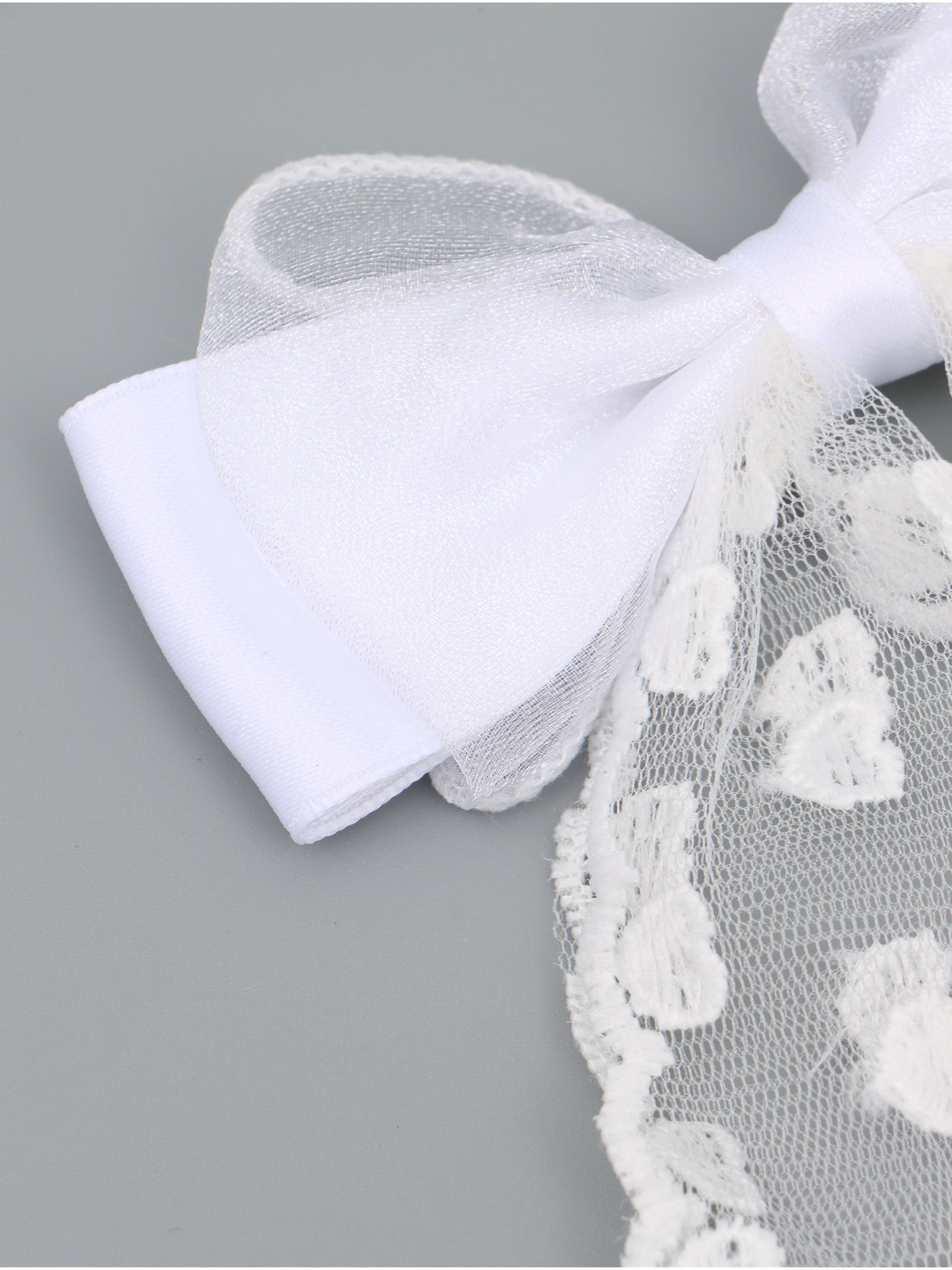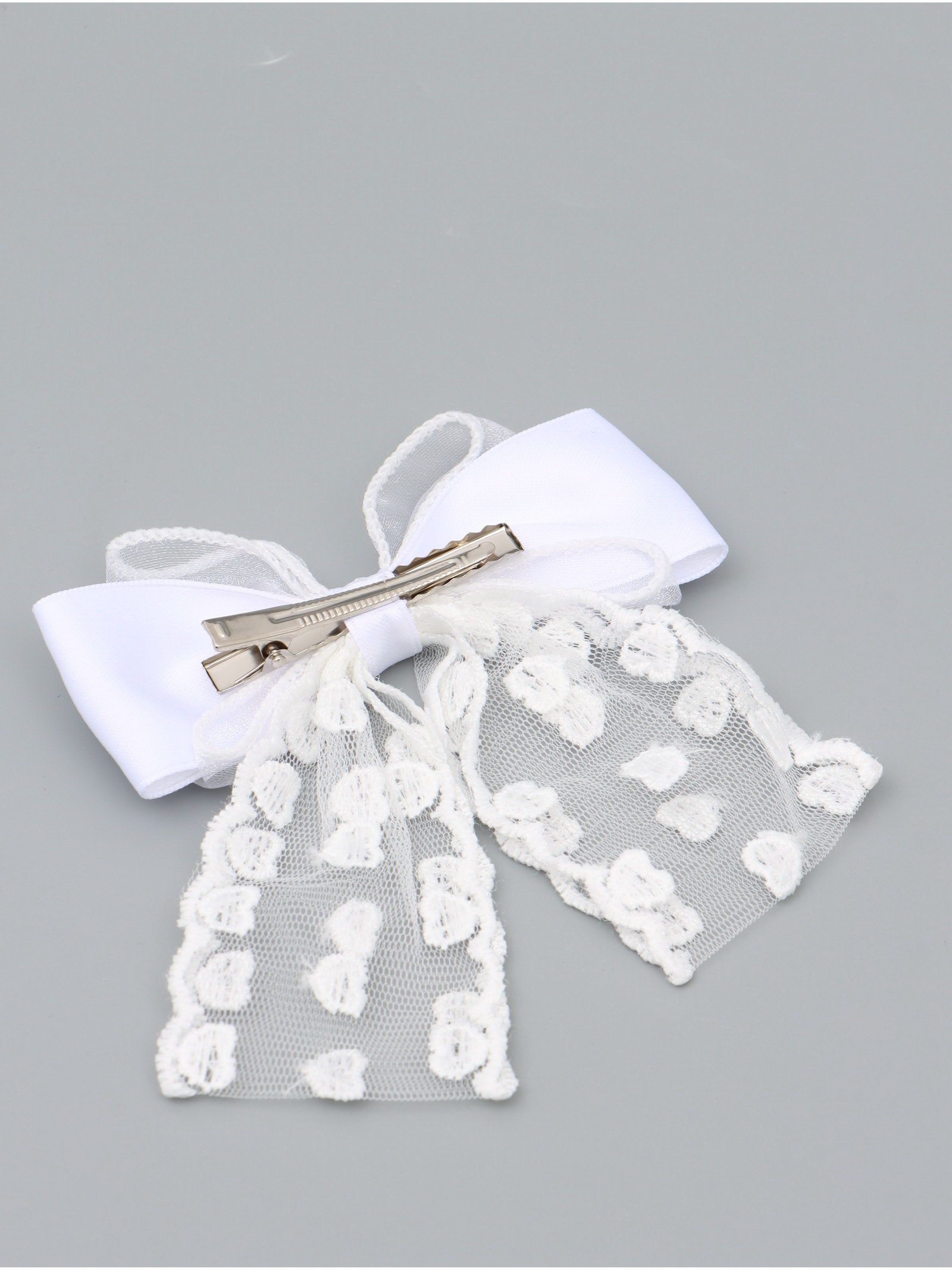 Бант для волос на заколке с лентами "Сердечки", белый, Принцессы Дисней, 7.5x15x2 см., Disney, Китай