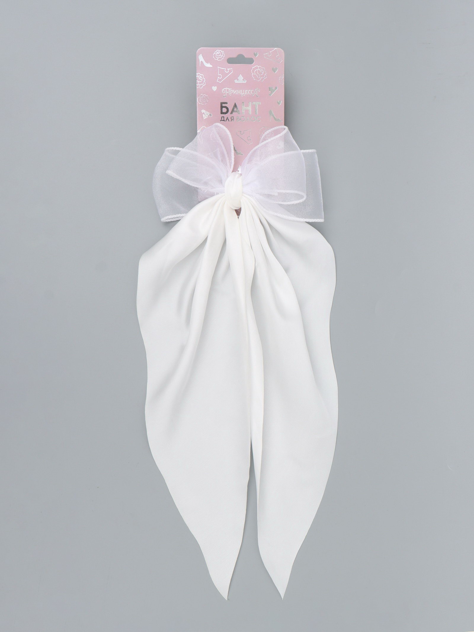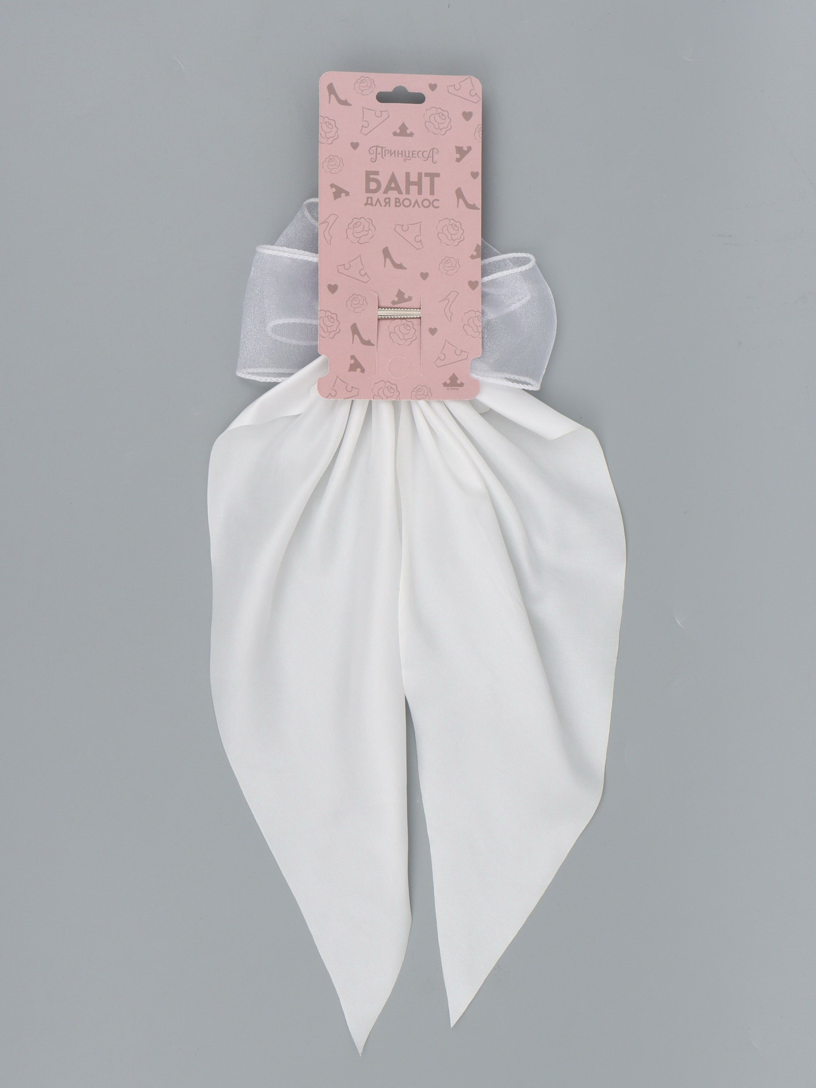 Бант для волос на заколке с лентами, белый, Принцессы Дисней, 7.5x15x2 см., Disney, Китай