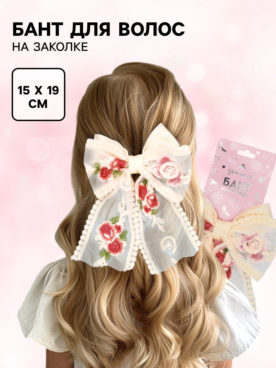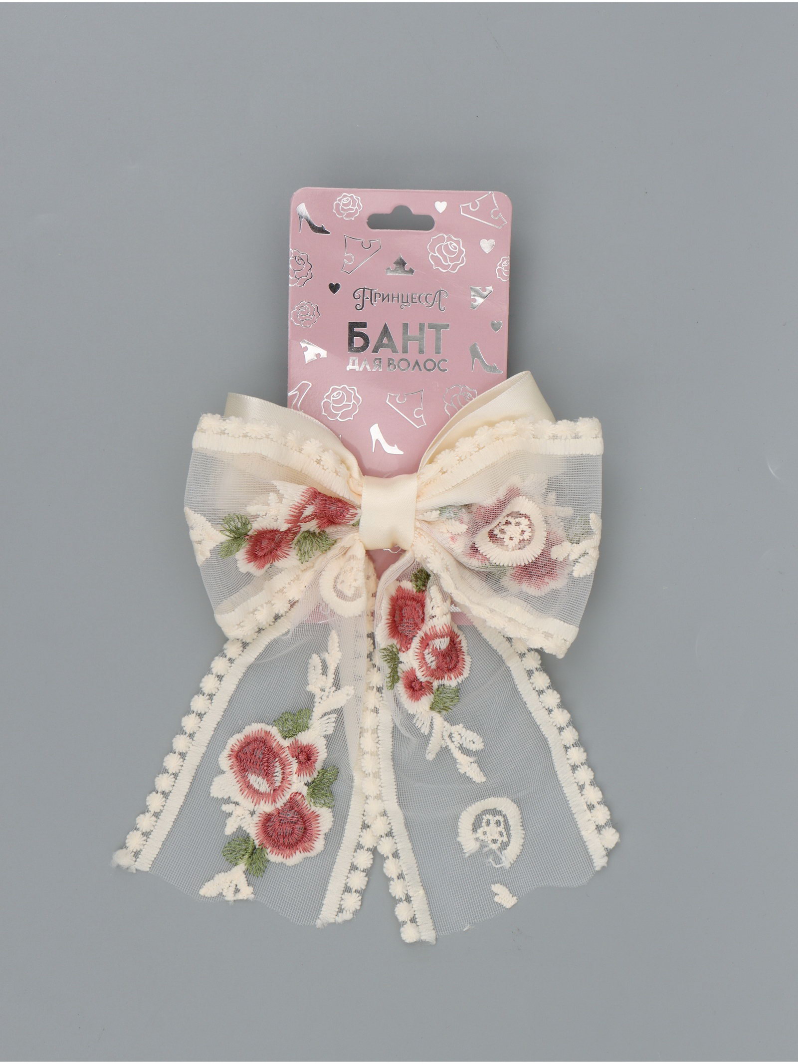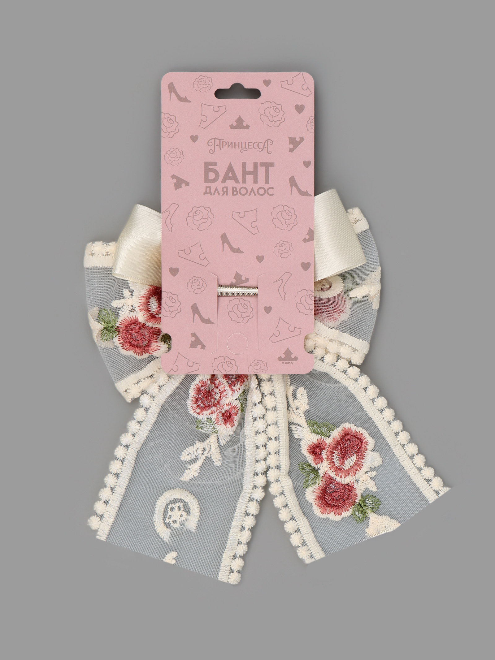 Бант для волос на заколке с вышивкой "Цветы", Принцессы Дисней, 7.5x15x2 см., Disney, Китай