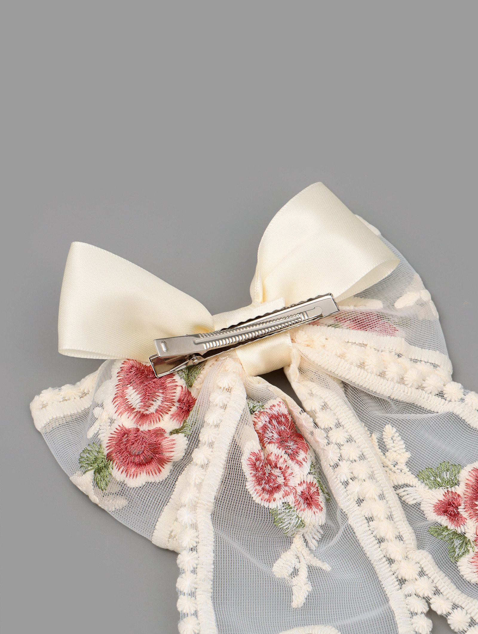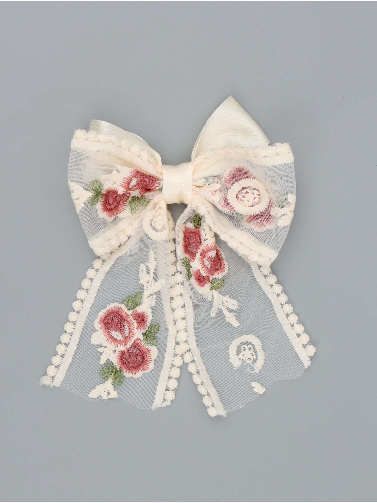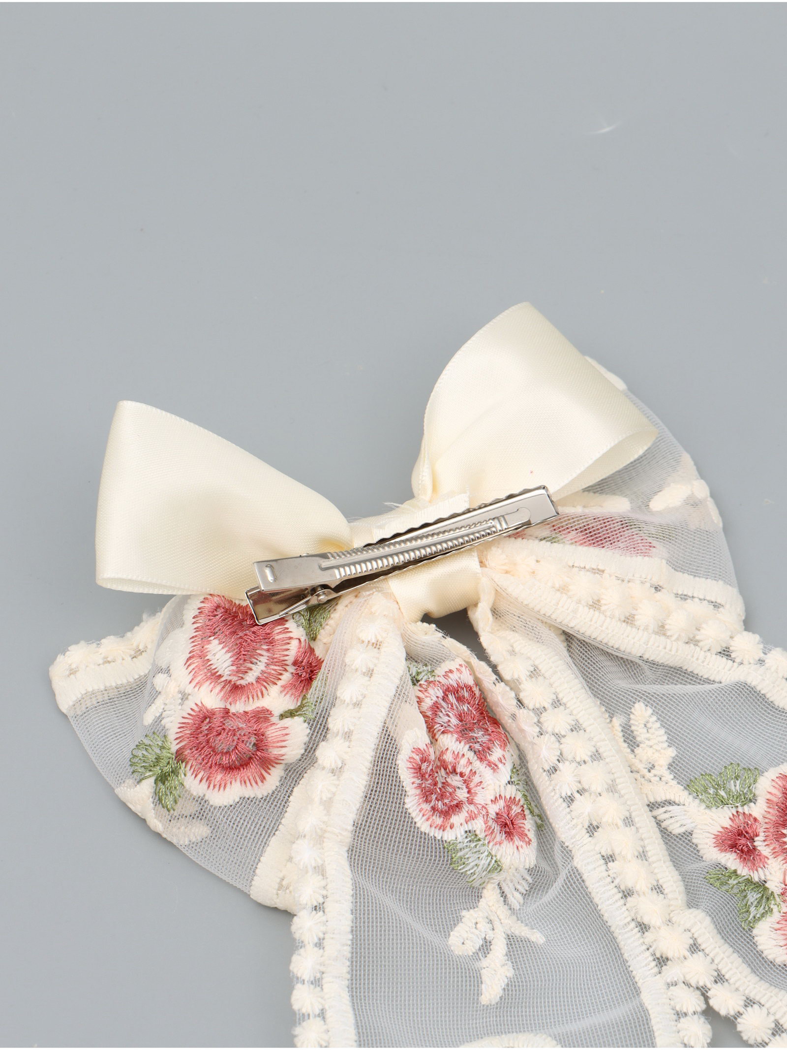Бант для волос на заколке с вышивкой "Цветы", Принцессы Дисней, 7.5x15x2 см., Disney, Китай