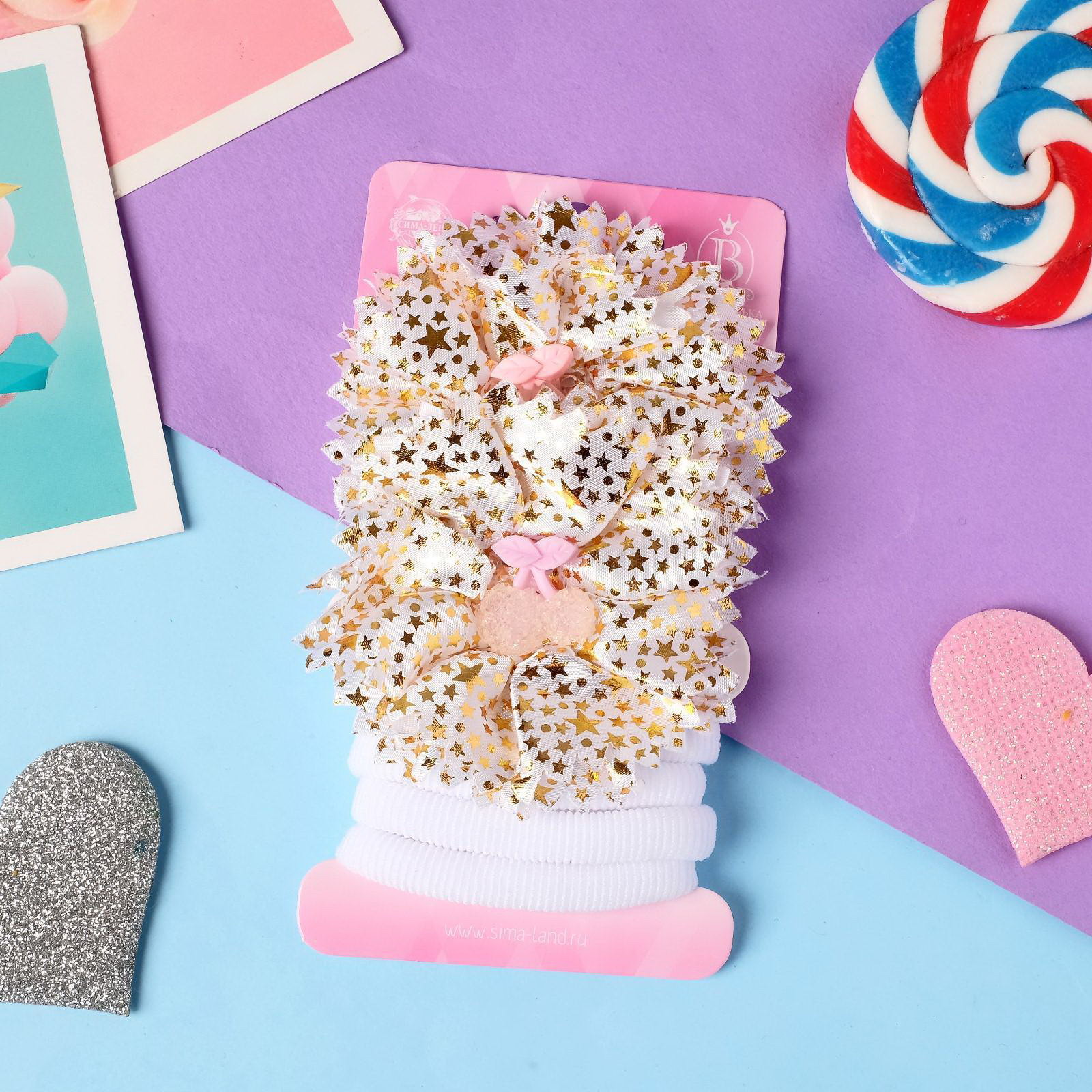 Набор для волос "Алексия", 4 резинки, 2 зажима, вишенки звёздочки, 6x6 см, бело-золотой, 6x6 см., Выбражулька, Китай