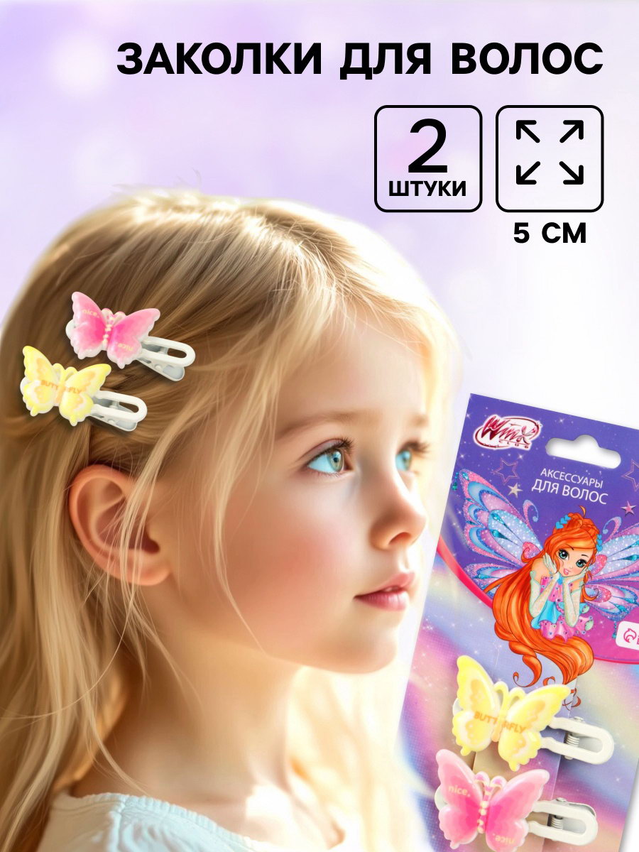 Заколка для волос "Бабочки" 2 шт., Винкс, 7x15x1 см., WINX, Китай