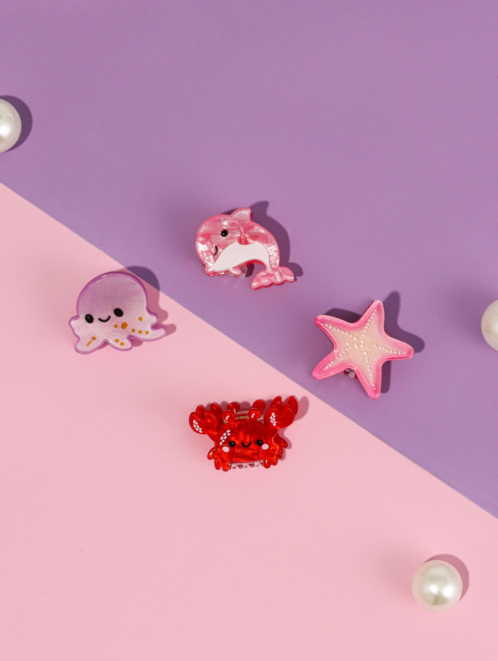 Крабики для волос "Океан", набор 4 шт., весельчаки, 3.5 см, 3.5 см., Выбражулька, Китай