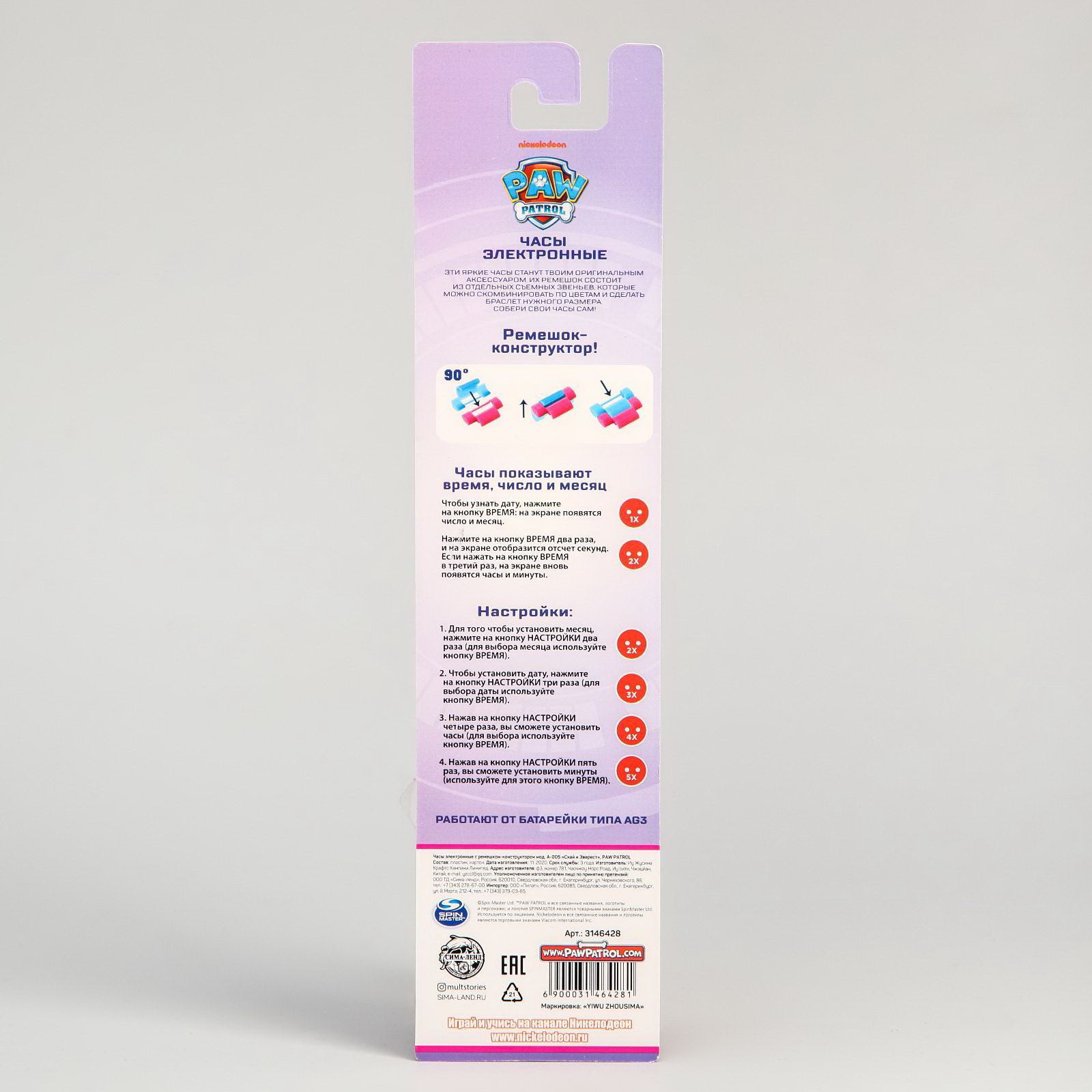 Часы наручные лего, с ремешком-конструктором, 6x25x1.5 см., Paw Patrol, Китай