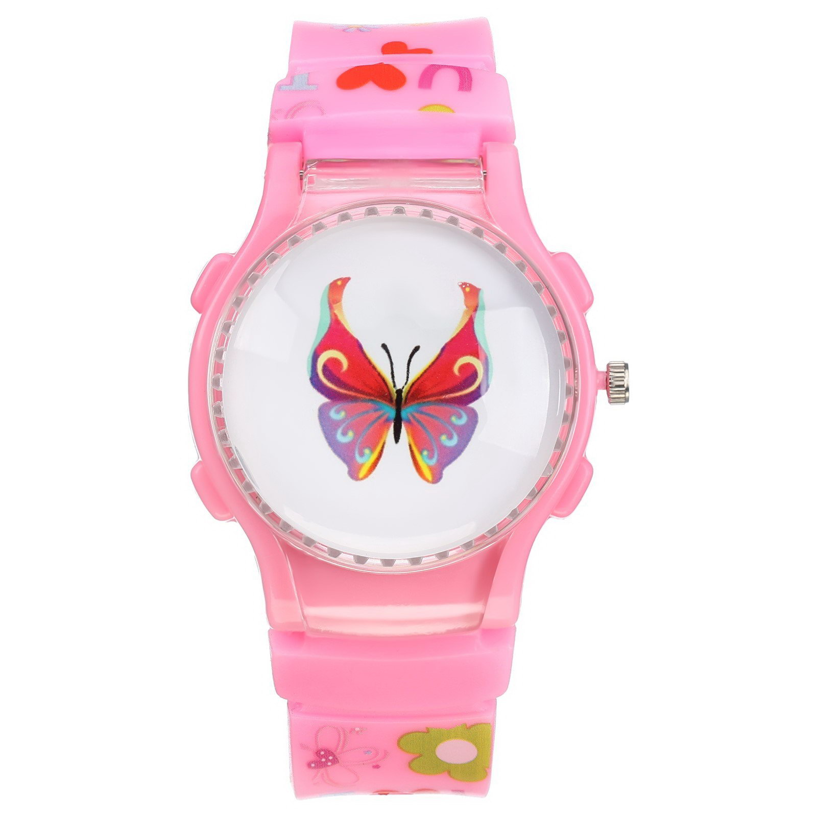 Часы наручные детские, "Бабочки", d-3.5 см, ремешок силикон l-21.5 см, 25 см., Китай