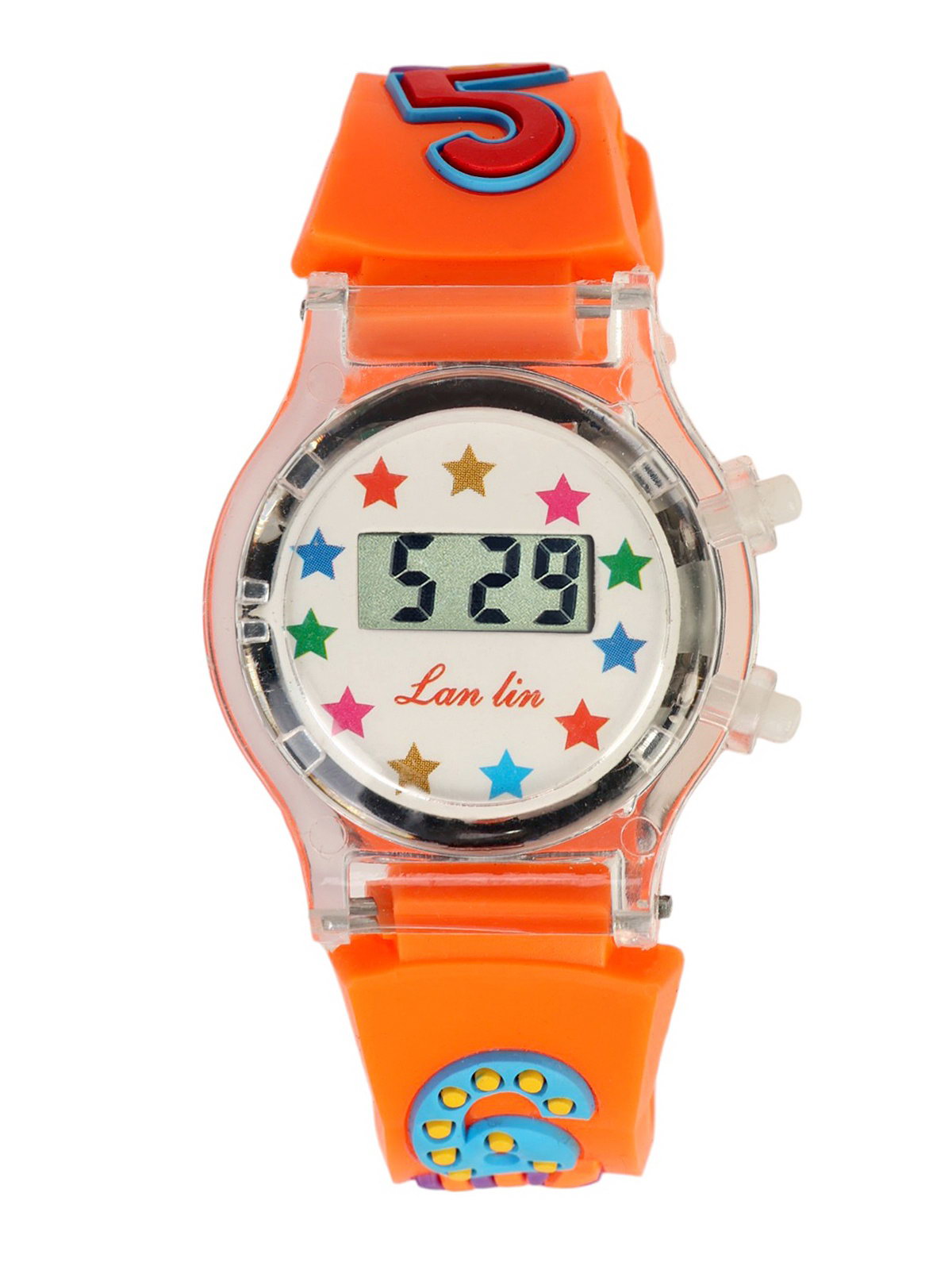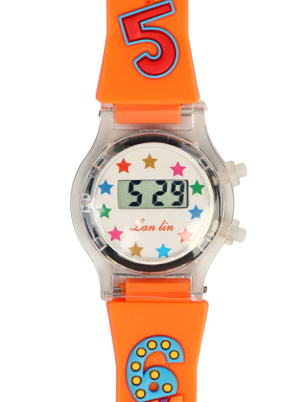 Часы наручные электронные детские "Цифры", 3x3 см, длина 20 см, оранжевые, Китай