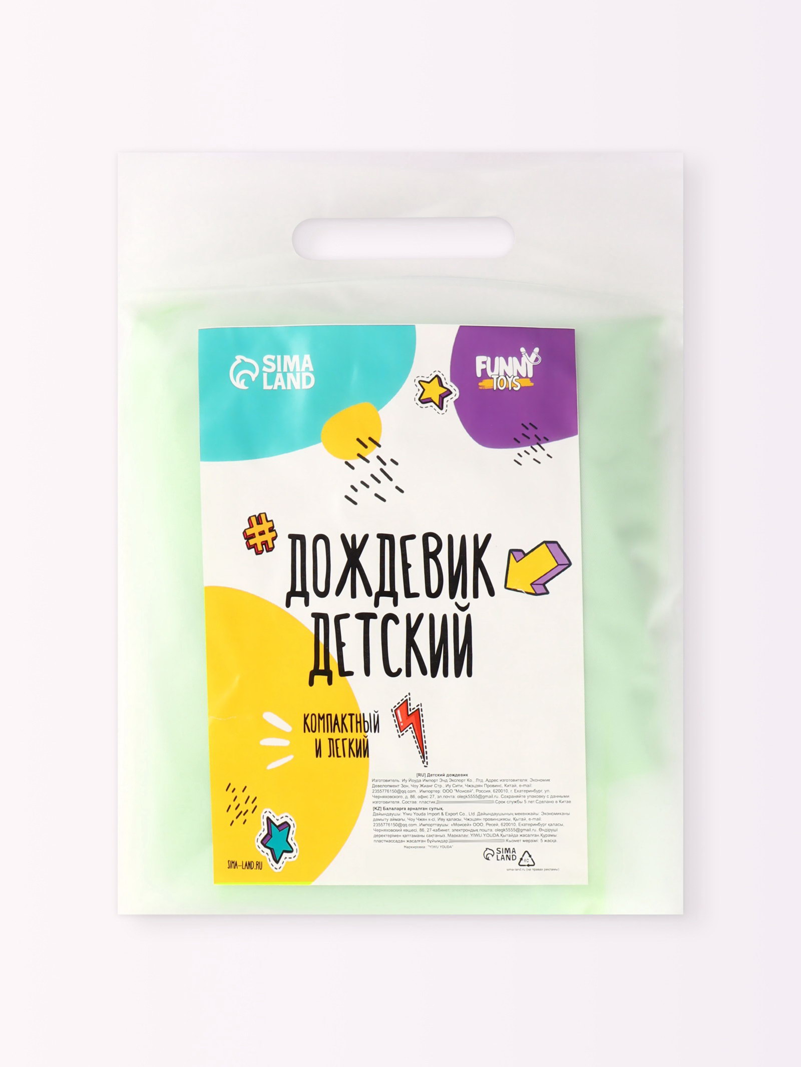 Дождевик детский "Гуляем под дождём", р-р L, зелёный, 21x31x4 см., ONLYTOP, Китай