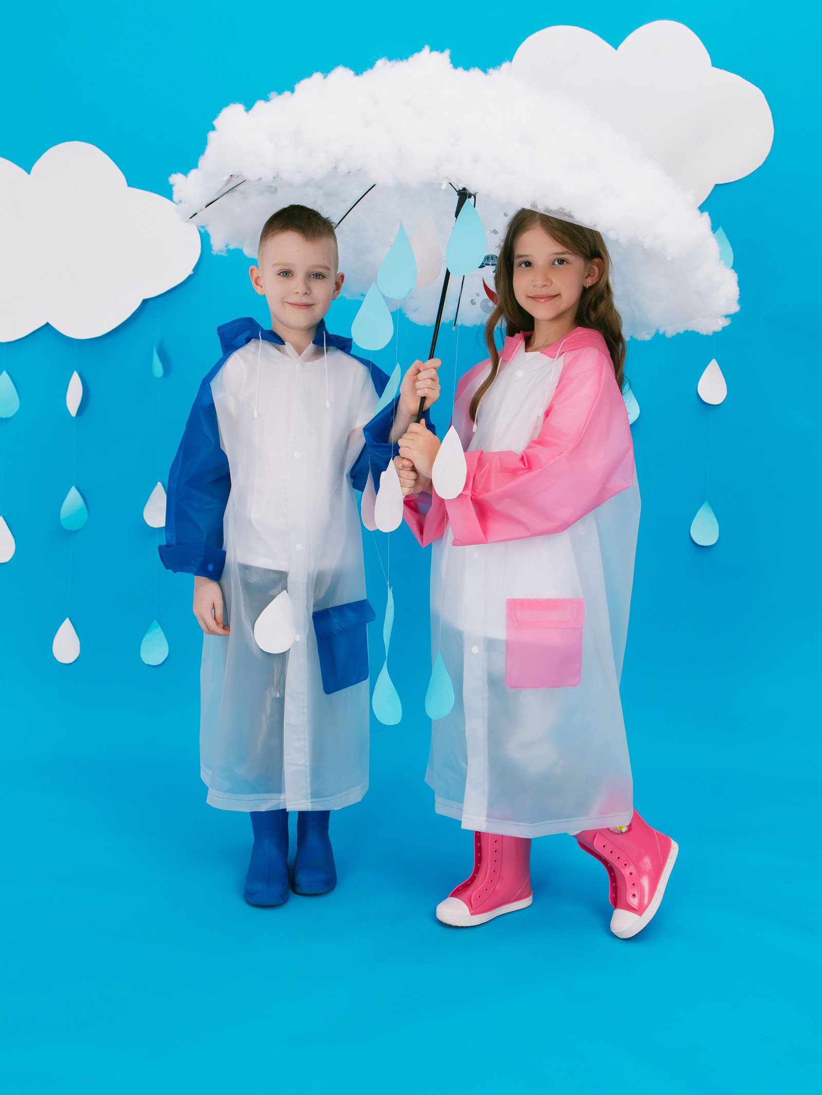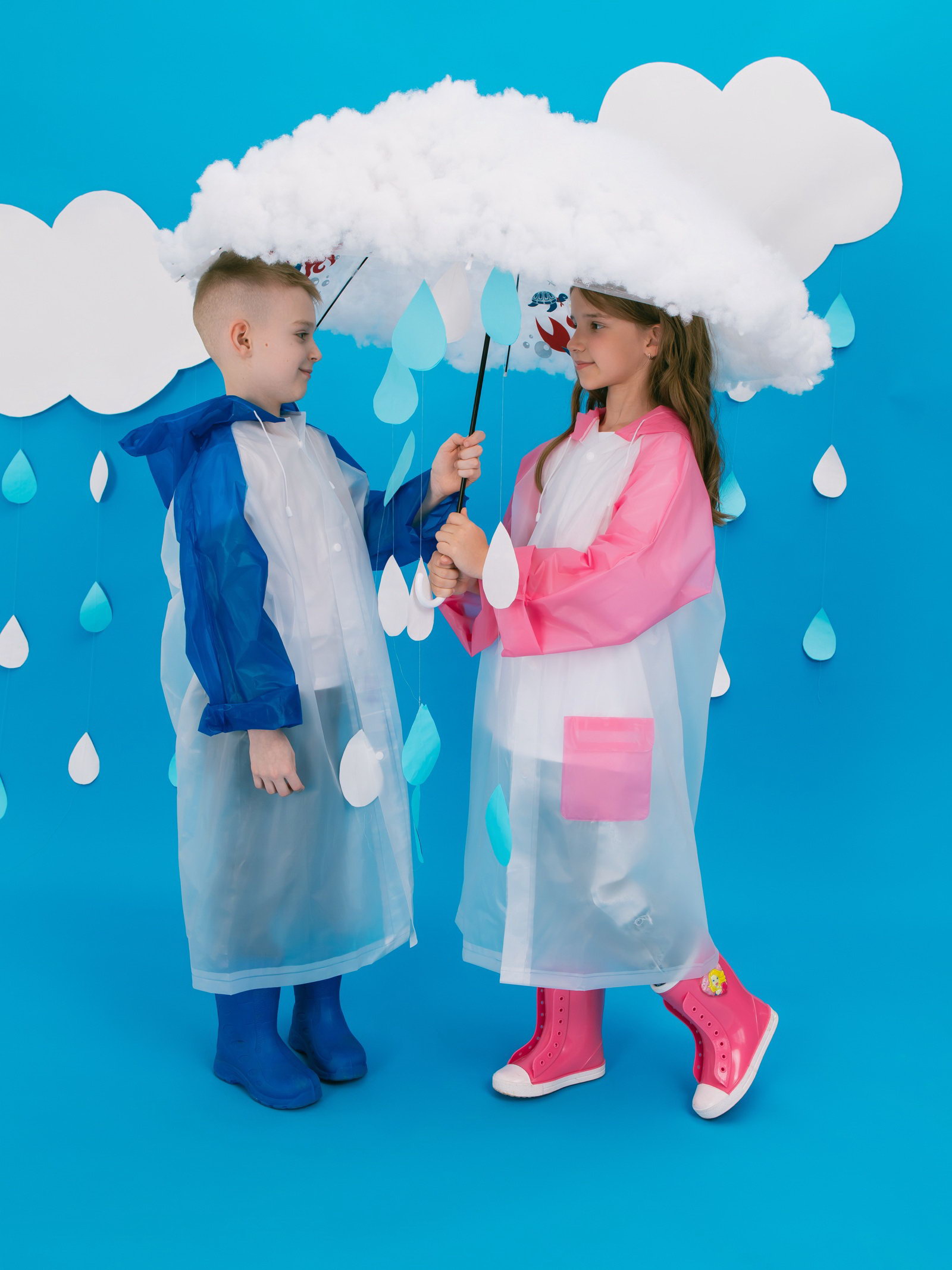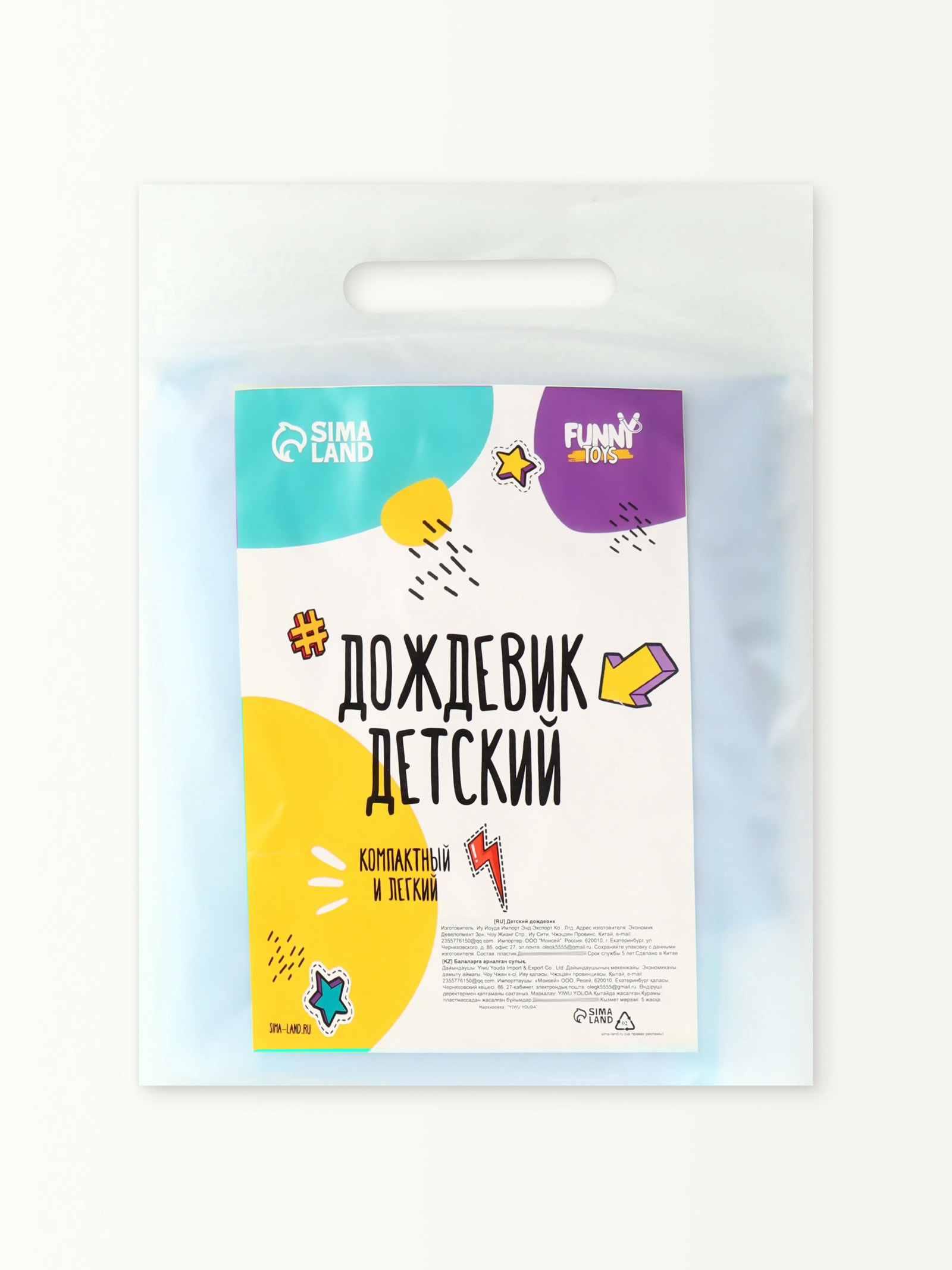 Дождевик детский "Гуляем под дождём", р-р L, голубой, 48x70x80 см., Китай