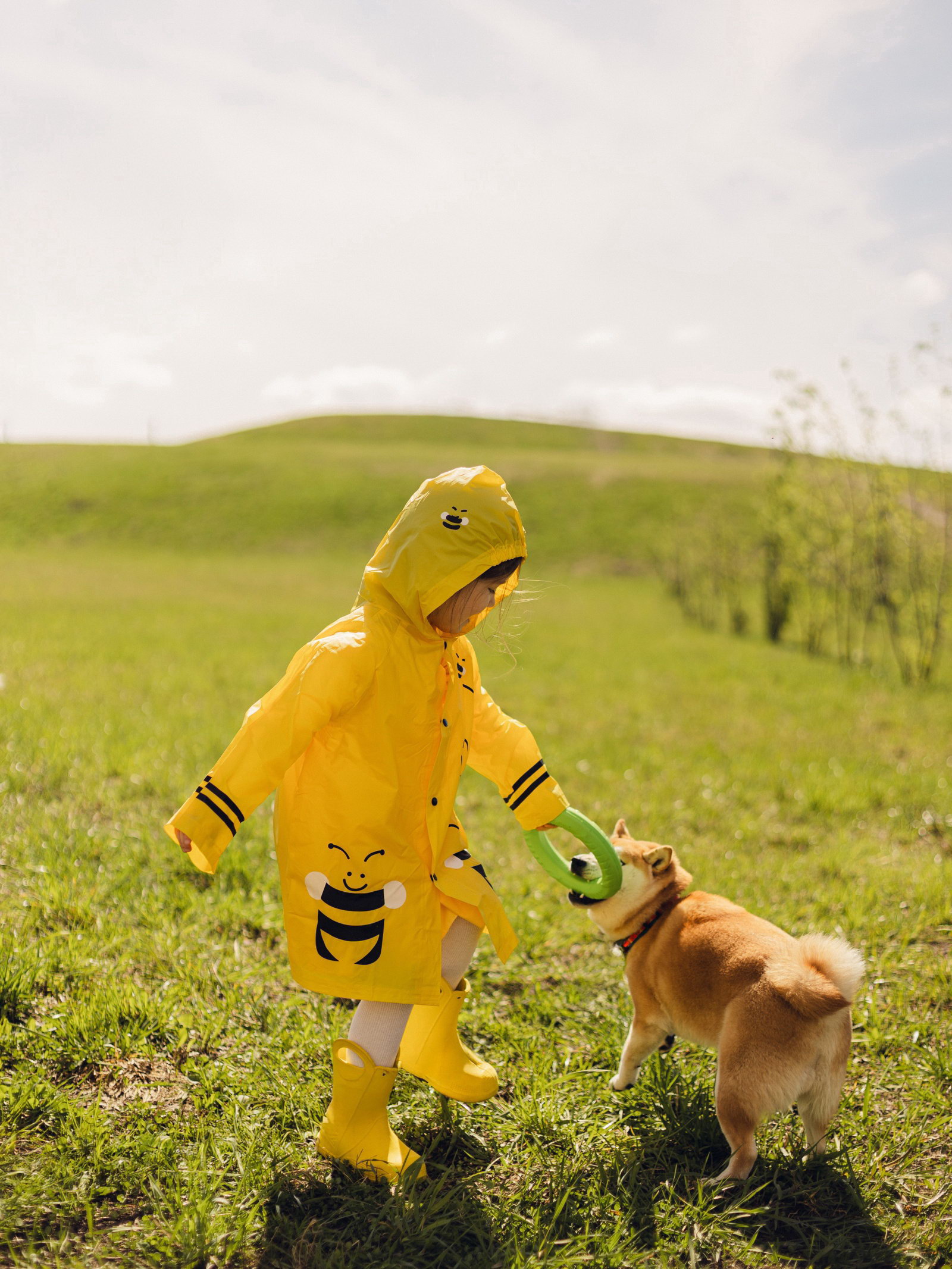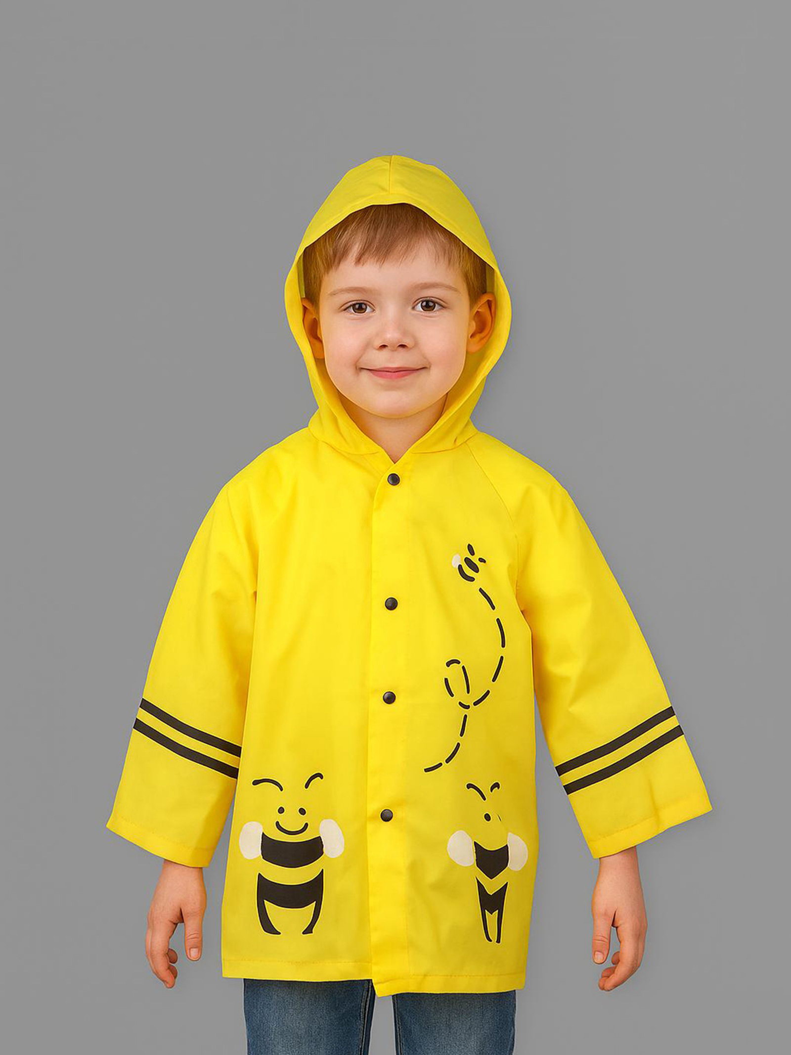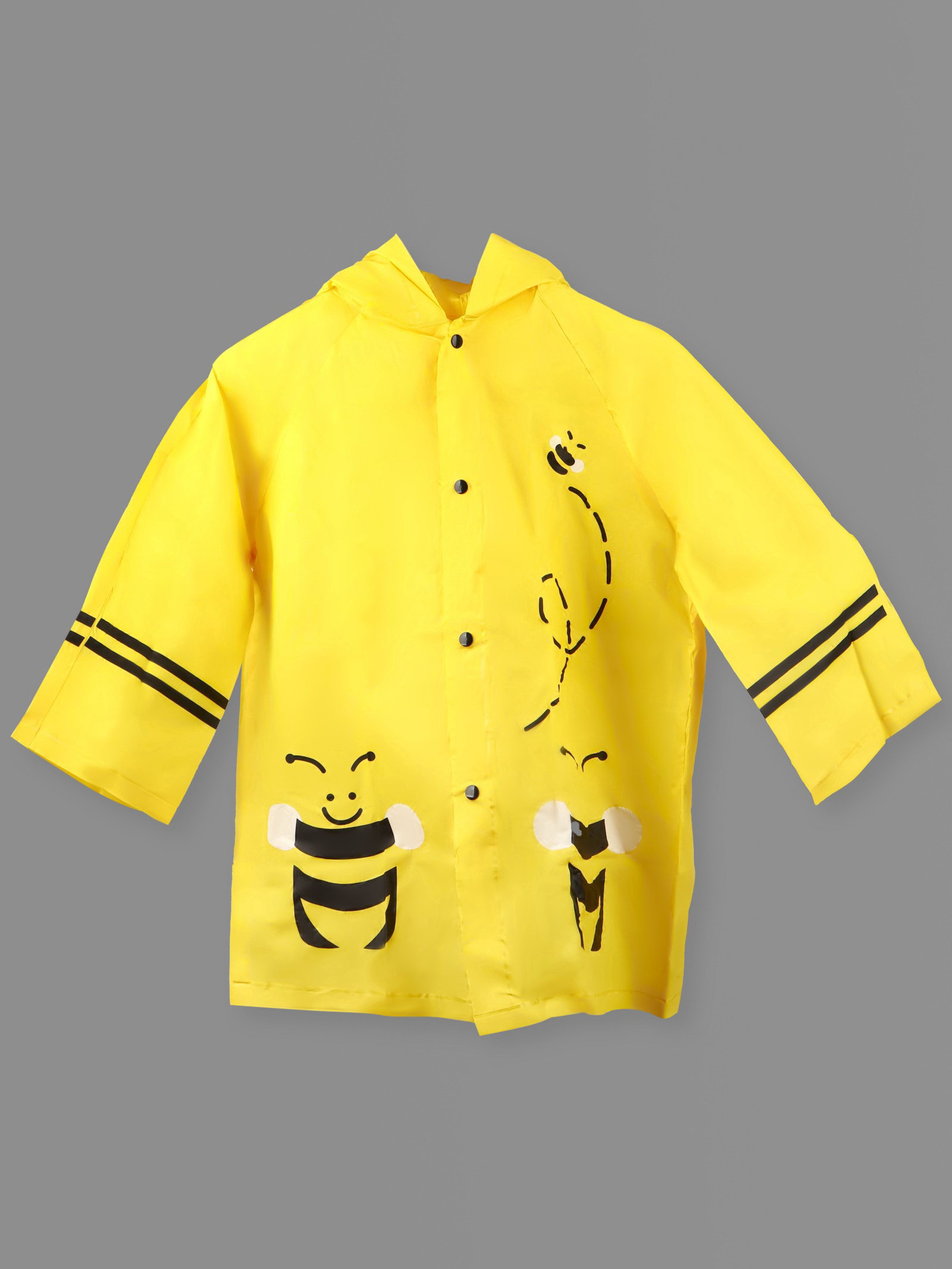 Дождевик детский "Пчёлки" на кнопках с капюшоном, размер L, рост 110-120 см, жёлтый, 51x1x68 см., Китай