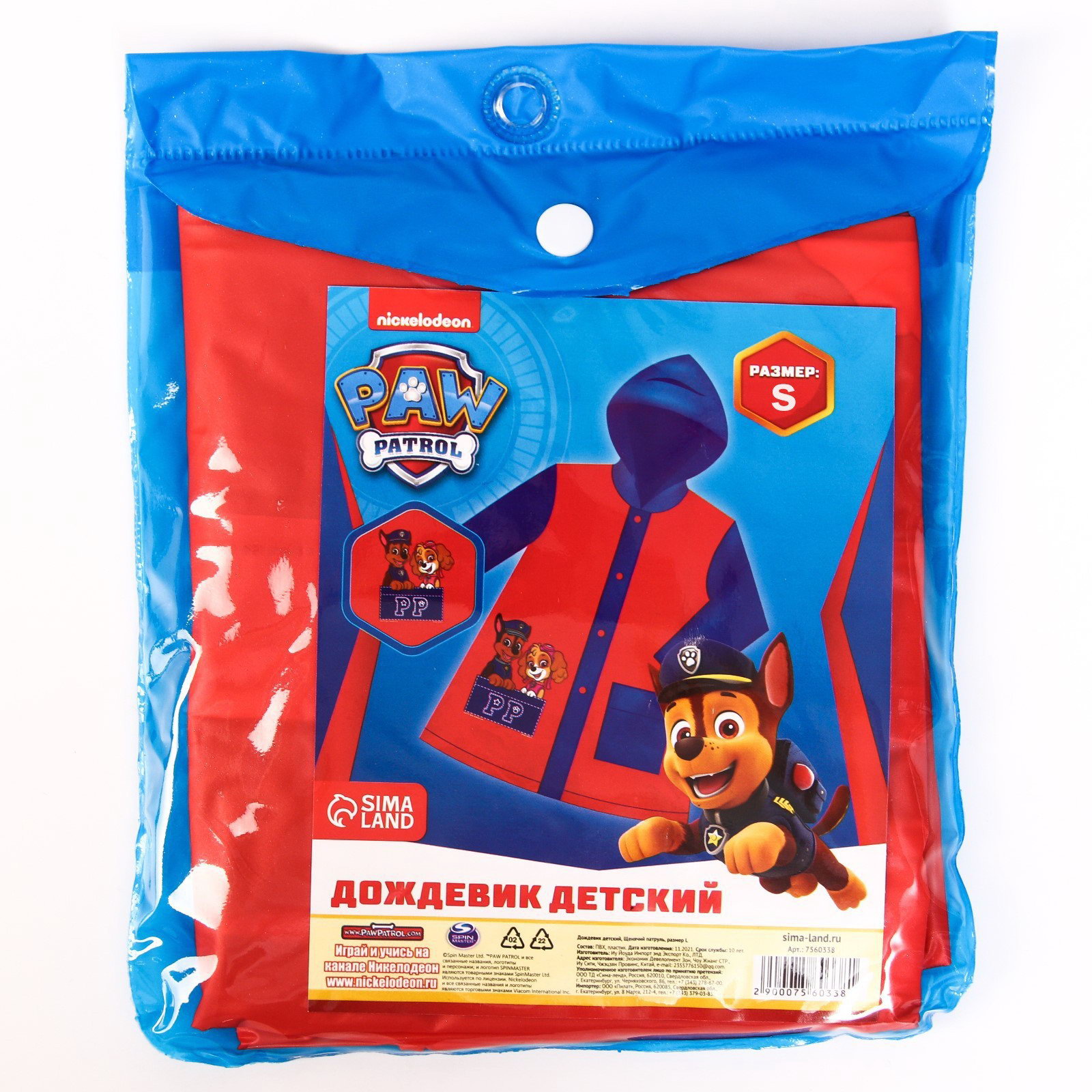 Дождевик детский, размер S, 92-98 см, Щенячий патруль, 45x57x0.5 см., Paw Patrol, Китай