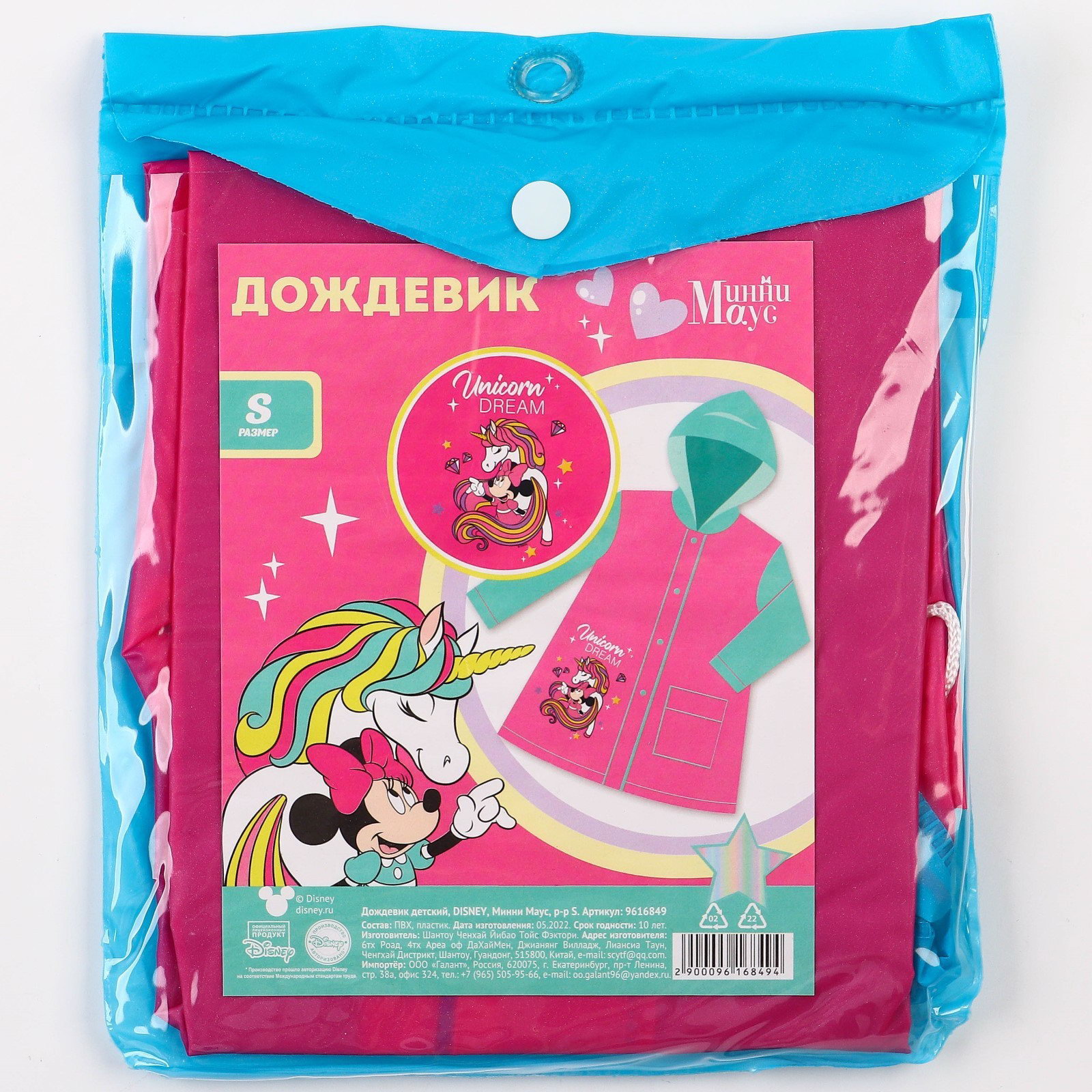 Дождевик детский, размер S, 92-98 см, Минни Маус, 45x57x1 см., Disney, Китай