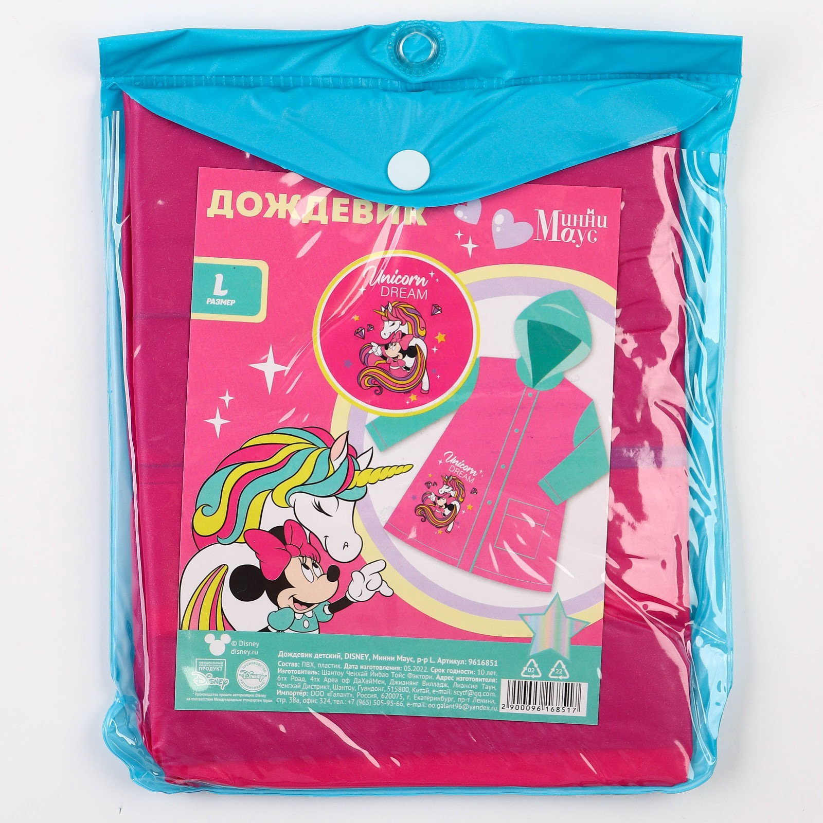 Дождевик детский, размер L, 110-120 см, Минни Маус, 49x68x1 см., Disney, Китай