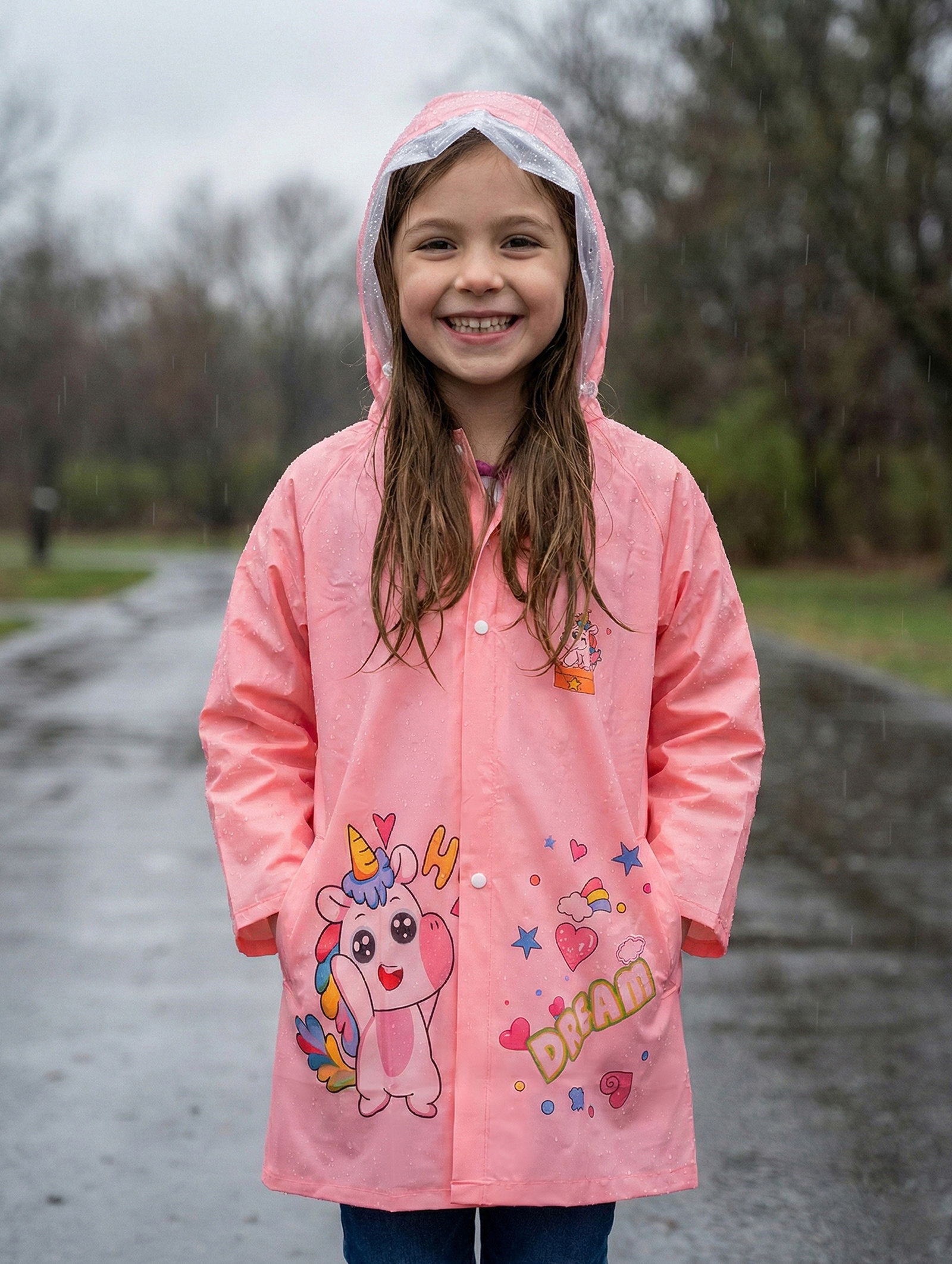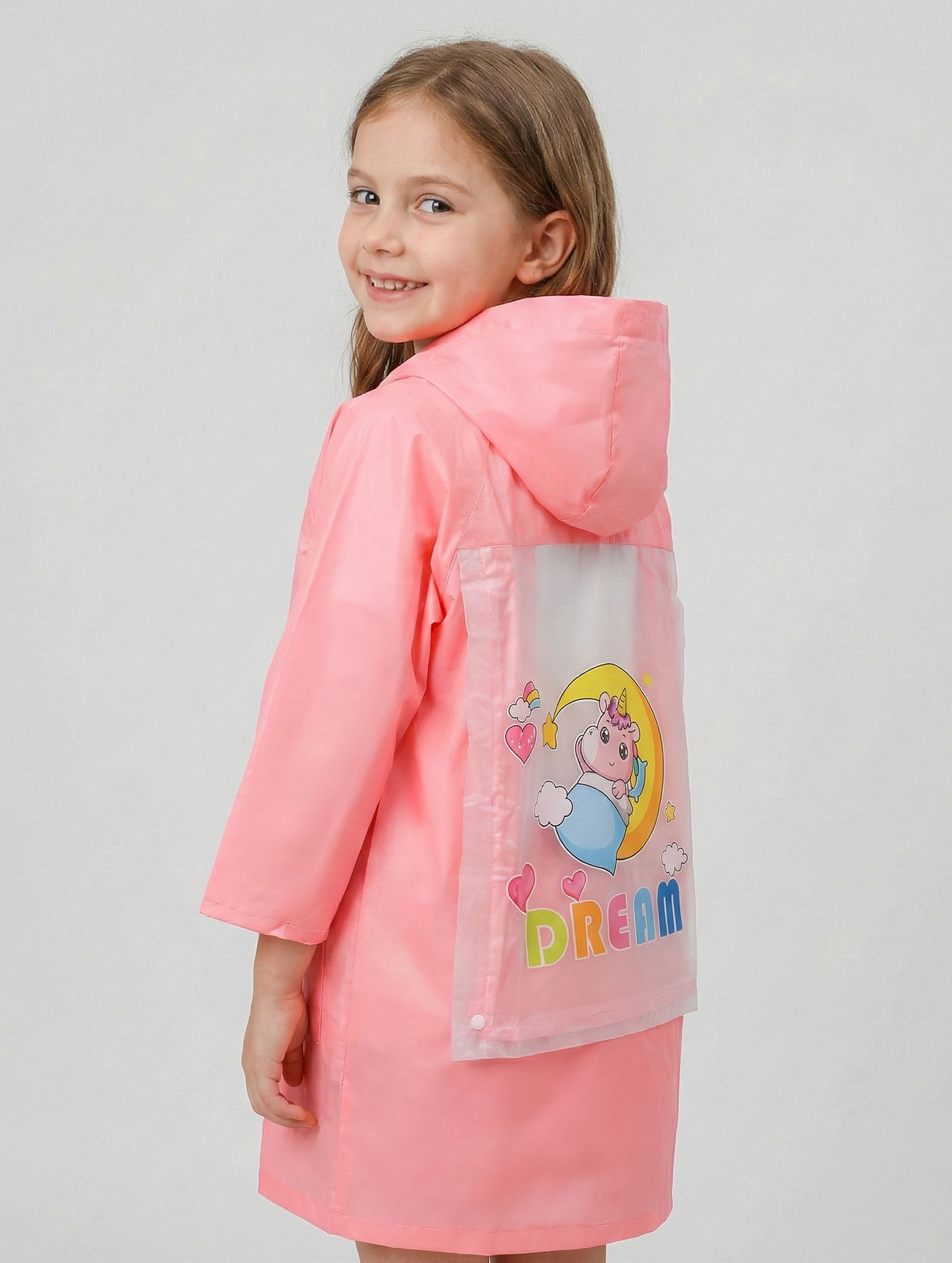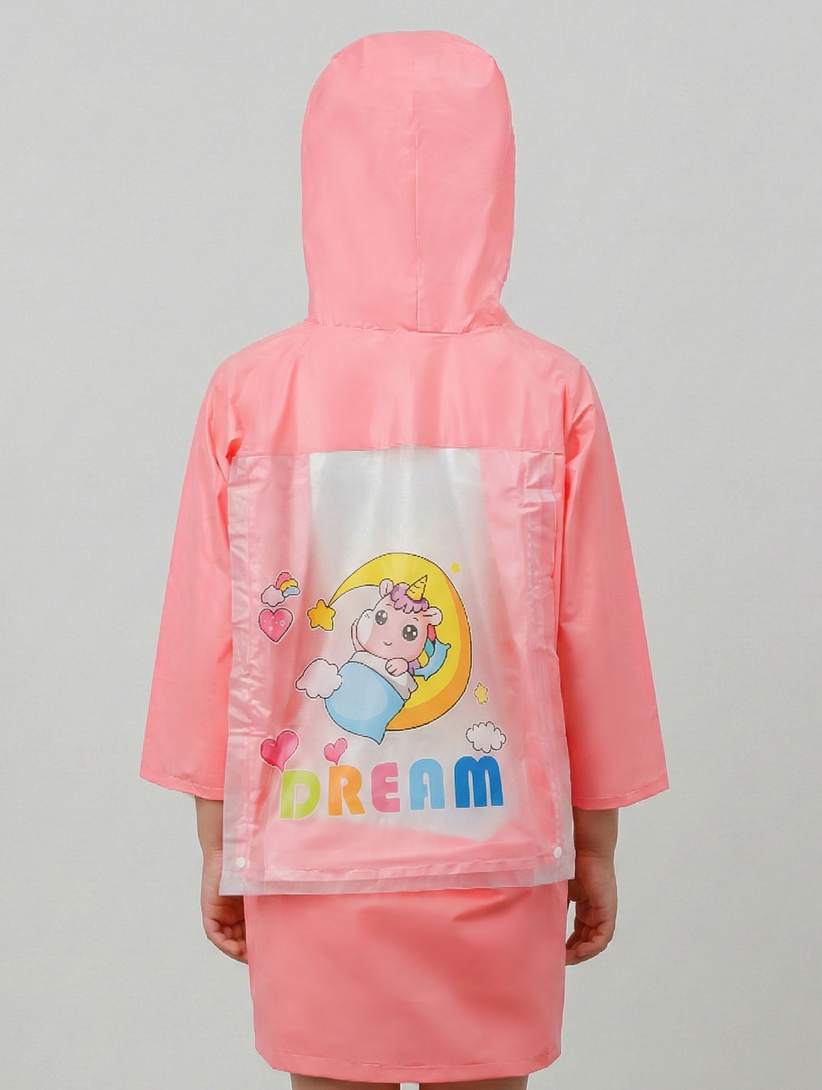 Дождевик детский, розовый единорог, рост 120-130 накл ОТ, 23x28x3 см., ONLYTOP, Китай
