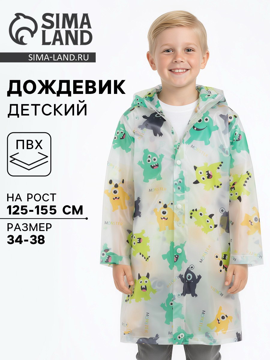 Дождевик детский "Монстрики", рост 125-155 см, 18x20x1.5 см., Funny toys, Китай