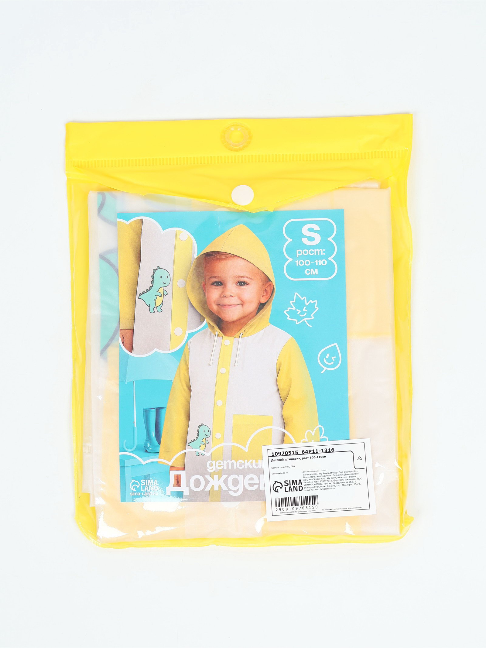 Цвет: Жёлтый, Прозрачный Размер упаковки: 19 x 21 x 1 см. tnved: 3926200000 Рисунок: Да Для кого: Для мальчика Вид застёжки: Кнопка Рост, см: [100,110] Вид: Плащ Двусторонний: Нет Возраст: Детский | ||