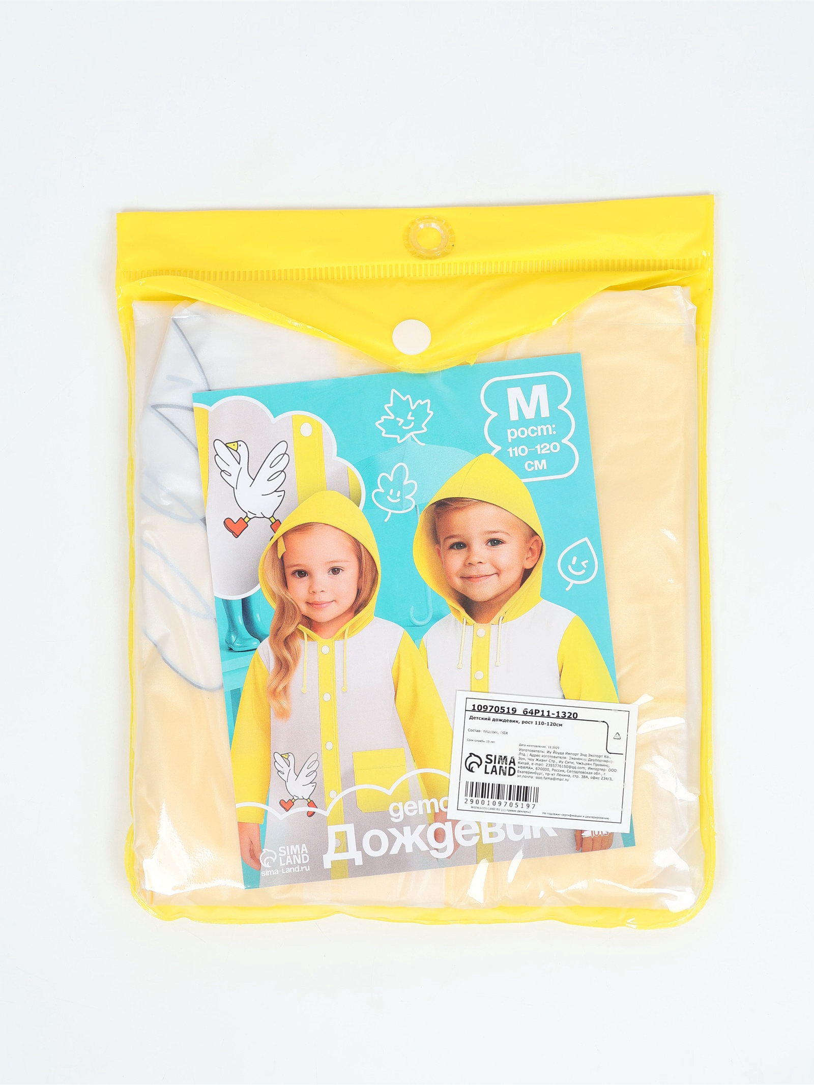 Дождевик детский "Гусь", размер M, рост 110-120 см, 21x31 см., Funny toys, Китай