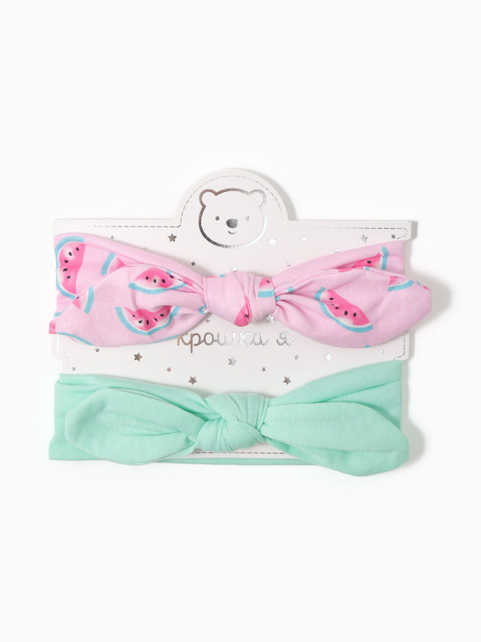 Повязки на голову для девочки "Крошка Я. Арбузик", 2 шт., размер 46-48, розовая, бирюзовая, 5x15.5 см., Крошка Я, Китай