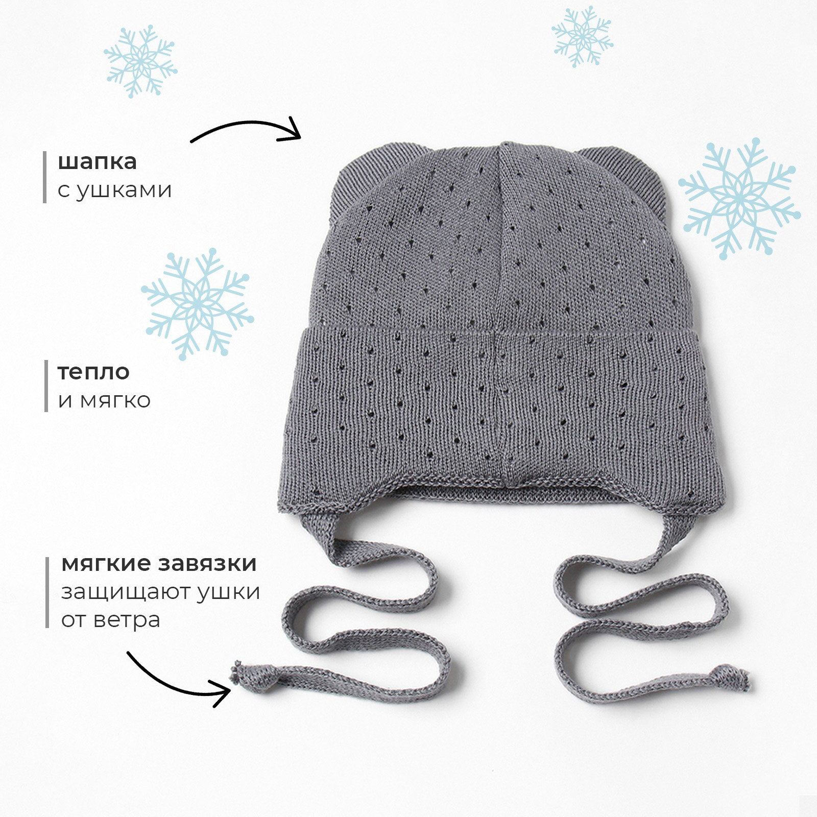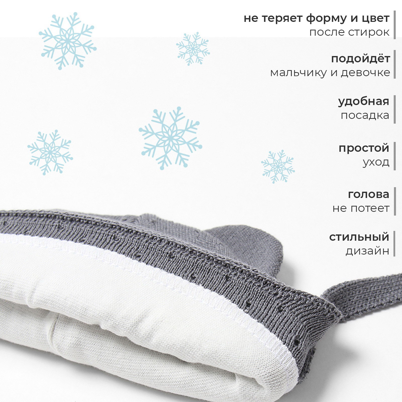 Сезон: Демисезон, Зима Для кого: Для девочки, Для мальчика Состав ткани: Акрил, Хлопок Размер упаковки: 17 x 1.5 x 18 см. Размер, см: 42-44 Цвет: Серый Ткань: Вязаное полотно Возраст: 3-6 мес Возраст: 3-6 мес tnved: 6505009000 Честный знак: Да Температурное ограничение: Нет | ||