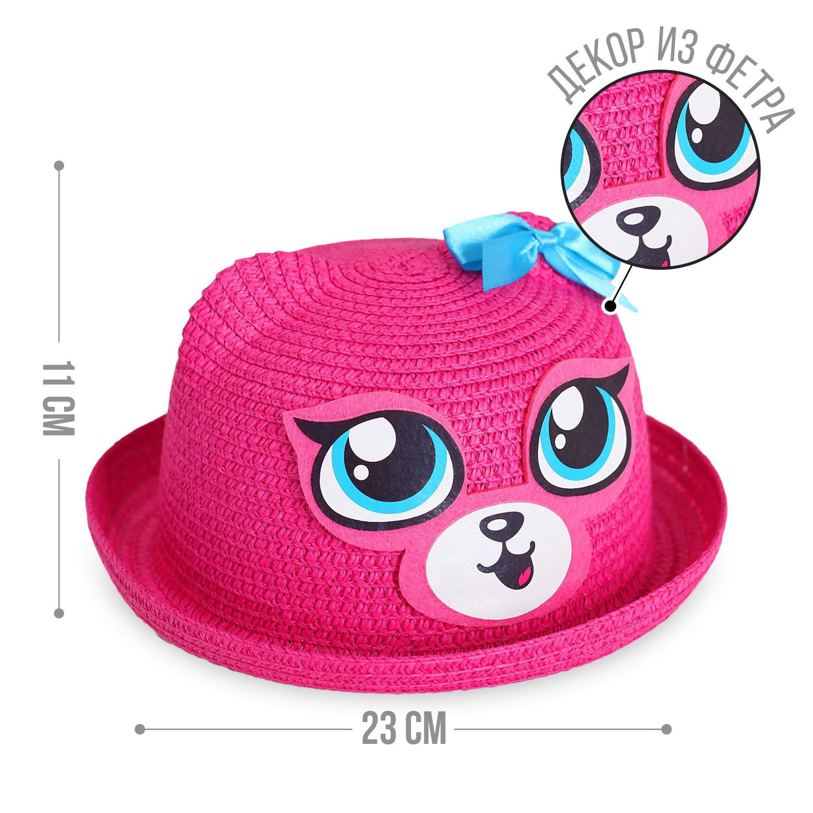 Шляпа детская соломенная для девочки "Котёнок", р-р 52-54, 2-6 лет, 18x22x13 см., Overhat kids, Китай