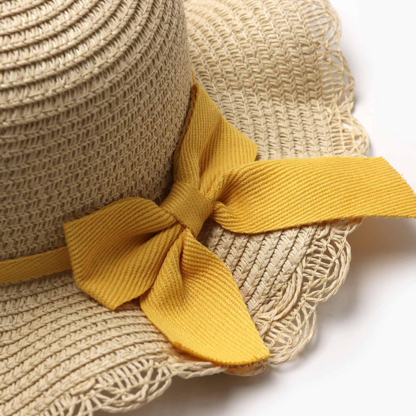 Шляпа для девочки с бантом размер 52, светло-коричневая, 25x25x15 см., MINAKU, Китай